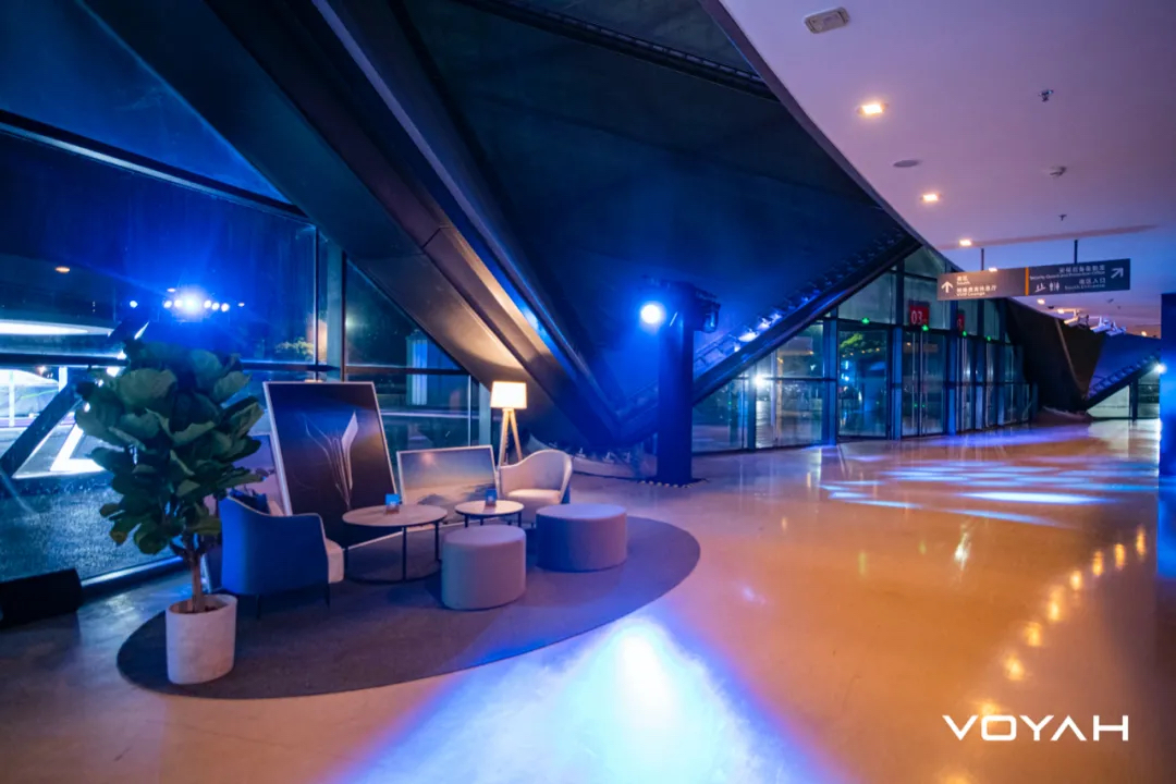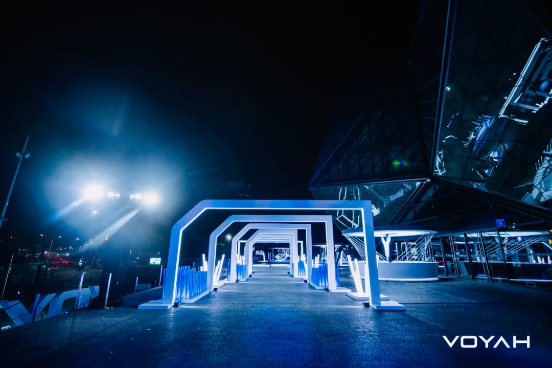 LED的大量运用,灯光走廊、灯带、灯柱等等不同形式的呈现,让夜色里的发布会外场充满了沉浸式的氛围感。该亮的地方亮,该黑场的地方黑场。这是很聪明的做法,也能带来很好的体验。吧台竟然备有热的姜茶,让特殊时期的女孩纸倍感亲切。