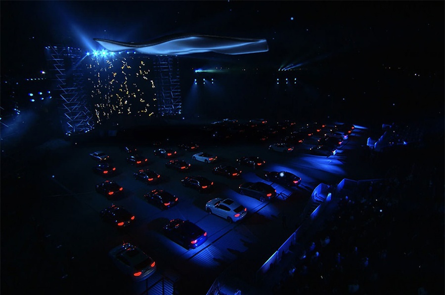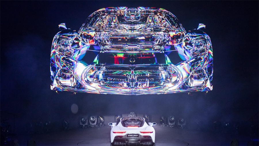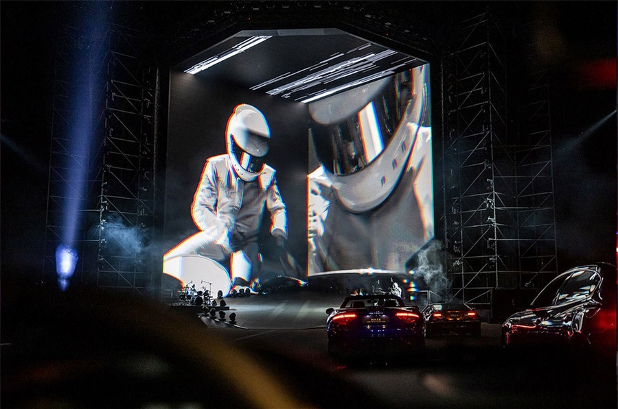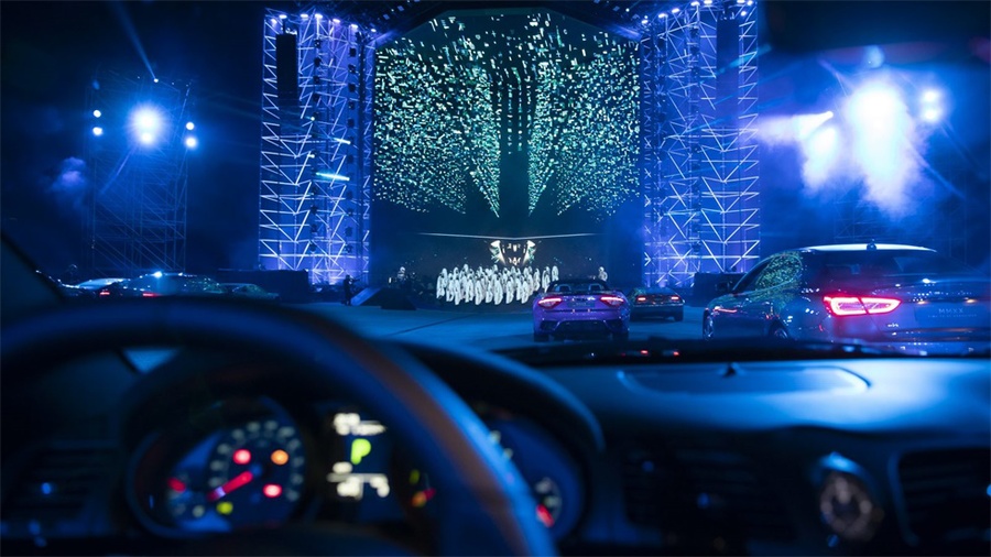 在舞台上一系列的变形图像与服装、音乐和尖端技术相融合,增强了真实和现场表演。快节奏、激烈、电影化,创造一个连续的特别时刻来引导在场和现场直播的观众通向为玛莎拉蒂品牌打造全新、现代的愿景,为这个终极时刻所做的准备,正是这场世界级新超级跑车的首发式。