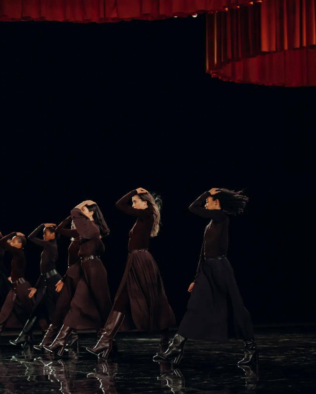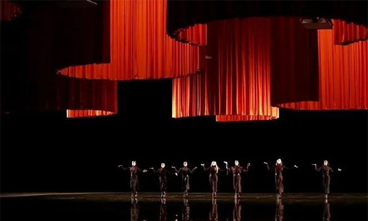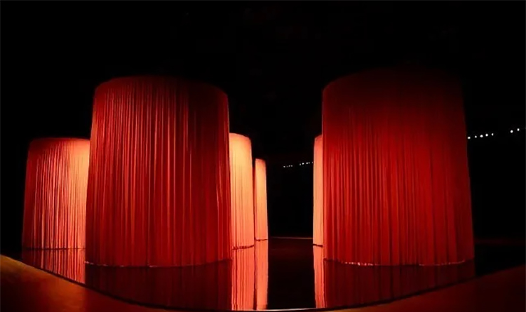 舞台之上,舞者在盛大而又神秘的橘色帷幕中穿梭,伴随着戏剧性的开场音乐,踏起韵律的步伐。在这里爱马仕橙色礼盒化身为“积木”,它用不同的方式将它们呈现在观众眼前,可以化身为移动的墙壁,以及巧妙转换的隔断,百变莫测、难以捉摸。这和礼盒的定义也不谋而合,它是一种制造惊喜的方式。