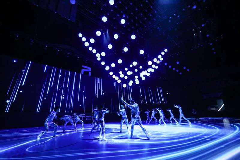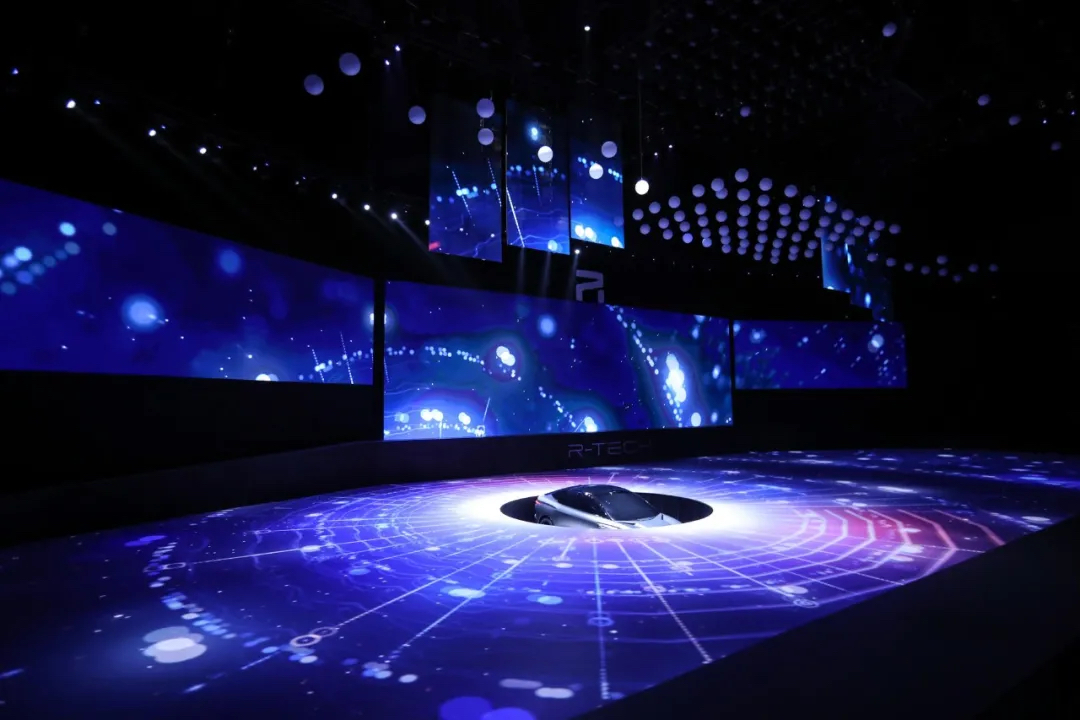 步入内场,科技感十足的舞台、炫酷的灯光舞美,R汽车家族新成员ES33在炫酷舞蹈中惊艳亮相,本次发布会内场采用的常规的三块长条屏+可升降六块竖条屏+数控升降球+可升降圆形舞台,硬件设备较高配置,同时更高能的现场全息投影结合了可升降的圆形舞台,将新车发布与亮相极尽精彩的展现在所有人的眼前,也让整场大会圆满成功。