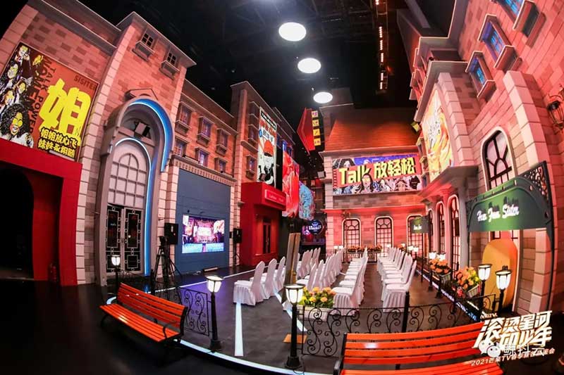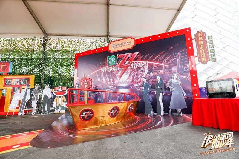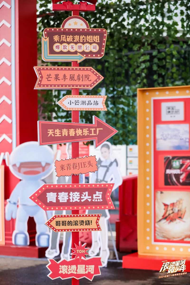 青春是一场撕裂的漫天轻狂,是一场无声的爆裂现场,ta以鲜衣怒马的勇往之志燃烧着青春驰骋的潦烈。本次春季新芒品鉴会,芒果TV秉持着一贯的视觉风格,以扁平化的展陈设计呈现出立体的青春立意,以一场发生在“烫人街”的故事为起点,塑造了一个抢眼夺目的复古粤式微观场景,解读着新旧时代新浪潮后的风华正茂;现场更以不同的主题分区分门别类地解答着芒果TV未来即将上线的新品之作,无论是从色彩的氛围渲染,还是新奇的网感文案,都不断地冲刷着来宾的视觉与记忆感官。