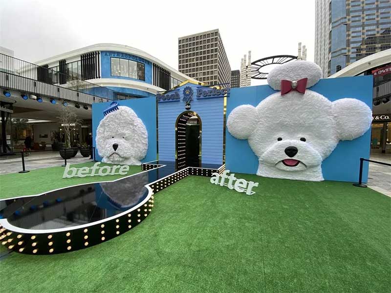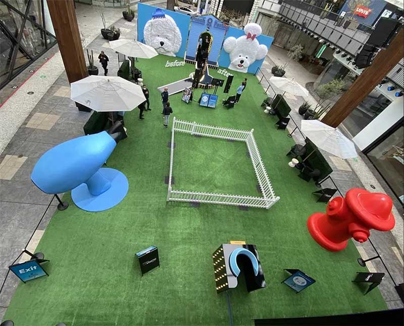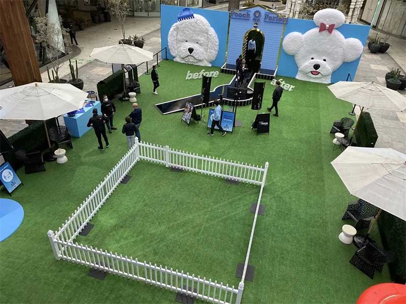 活动现场的互动体验包括一个T台,参加活动的粉丝可以为自己或宠物录制一段T台视频秀,巨大的吹风机和夸张的消防栓是照相背景。现场一个封闭的围栏里,当天晚些时候节目中的狗狗将会亲自出现在那里。现场提供的洗手液保证了活动参加者尽可能安全的参加活动,四周的座位区为人们提供了休息区域。