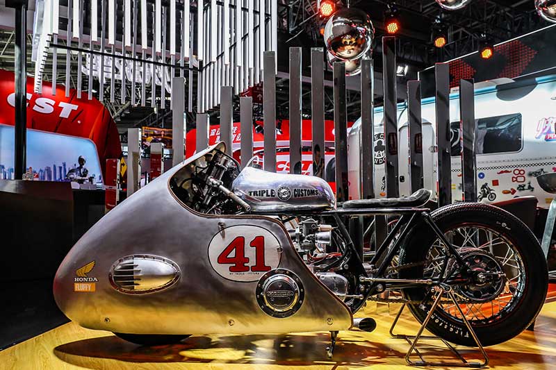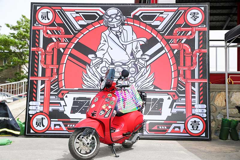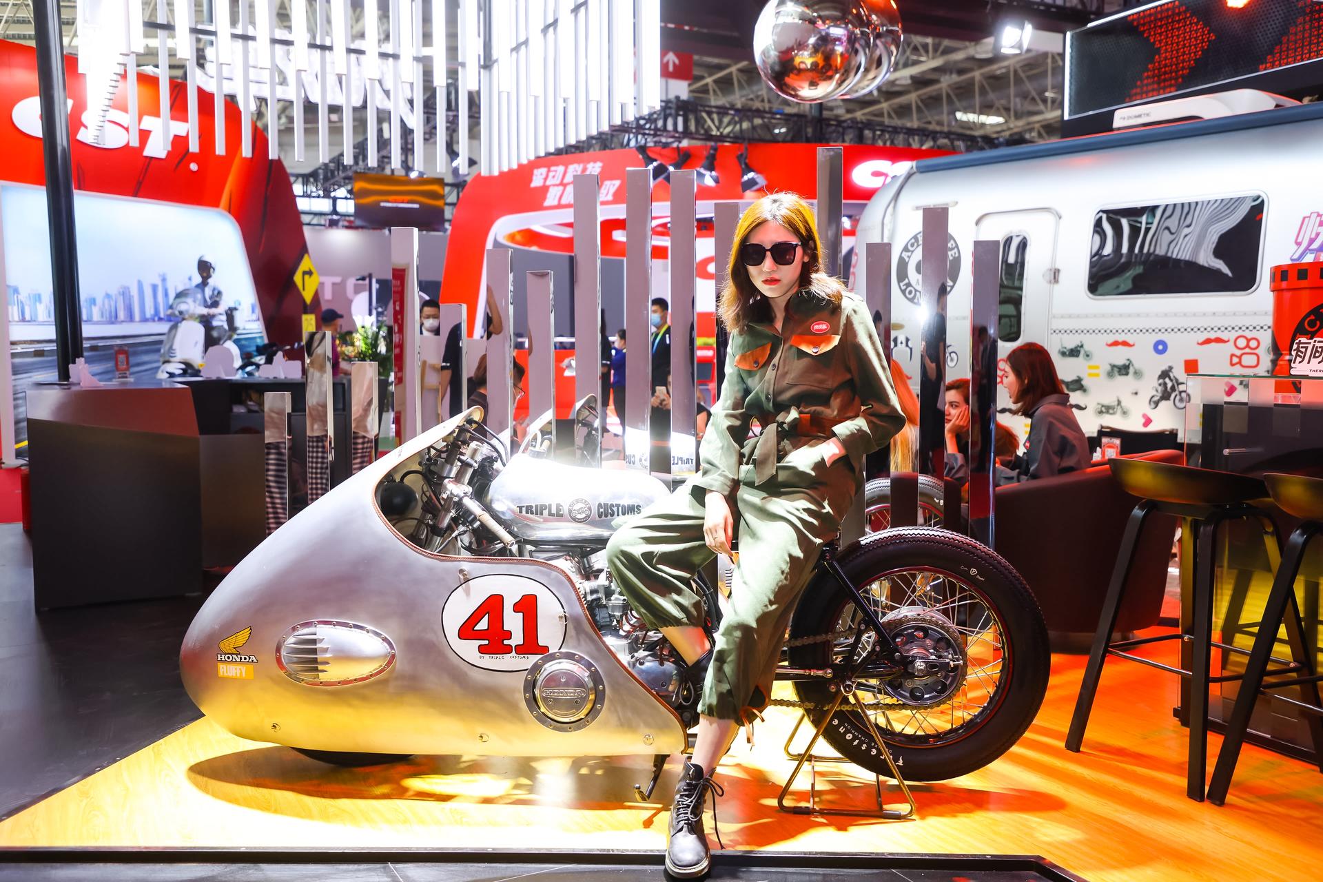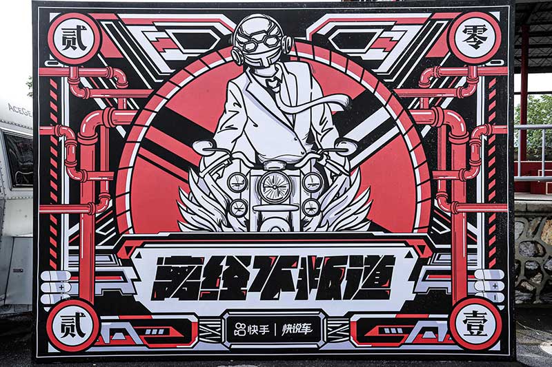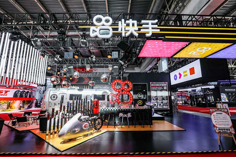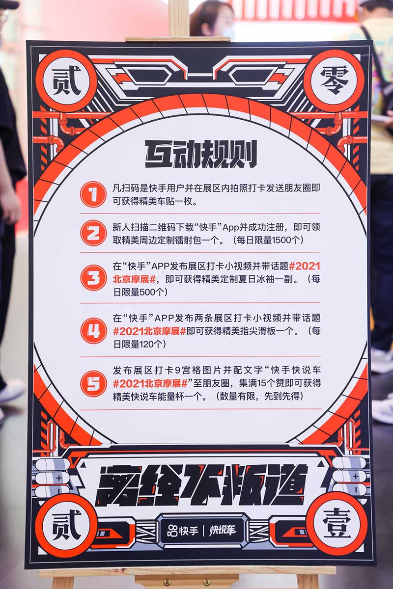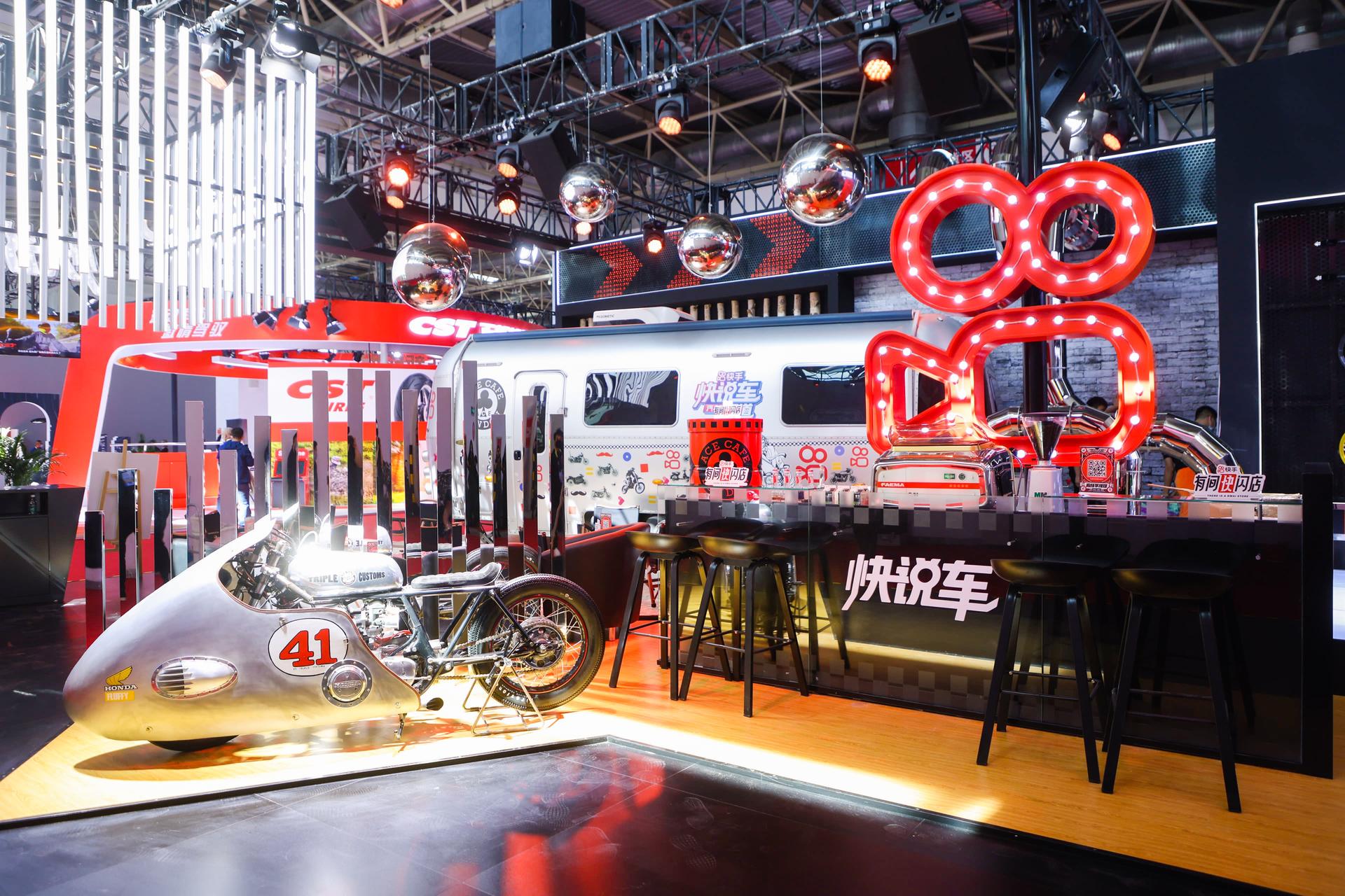 充满蒸汽复古风的快手快说车展台在展厅中独树一格,现场展示的复古机车也吸引了很多摩托车迷驻足欣赏,此次快手的展台设计上给人营造了一种轻松舒适的氛围,通过精心的布置让人感受到骑行生活方式的另一面。除了精美的机车展示,快手快说车现场还给大家带来了丰富吸晴的礼品,包括镭射手提包、水杯、车贴、冰袖,来展台参观的摩托车友可以到两侧的签到台互动。
