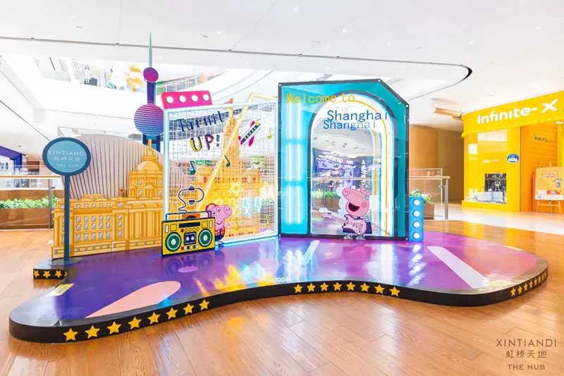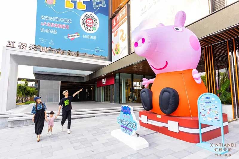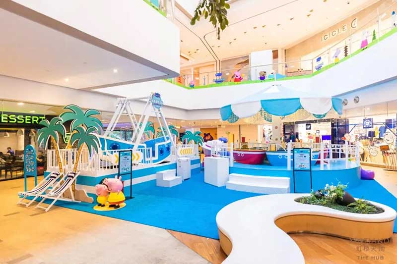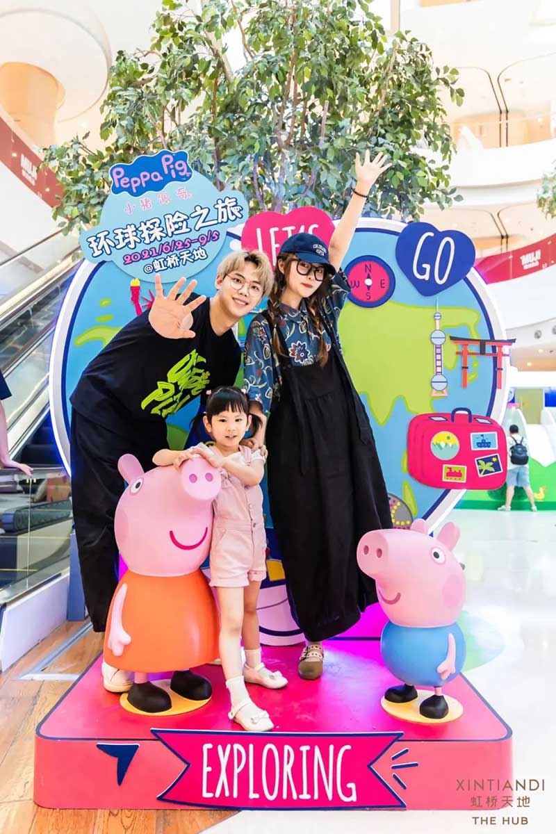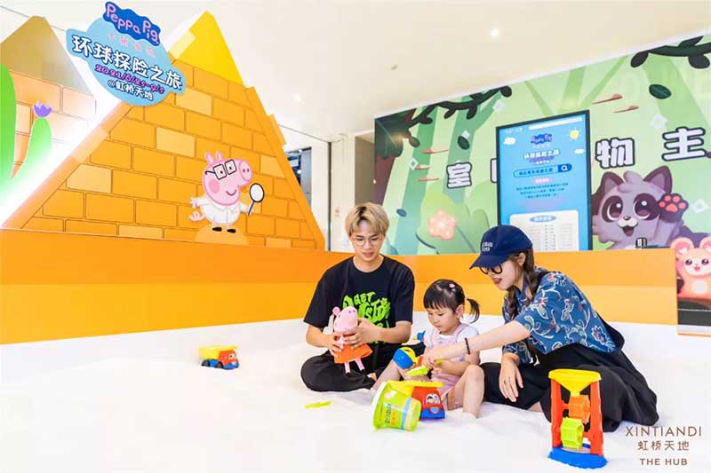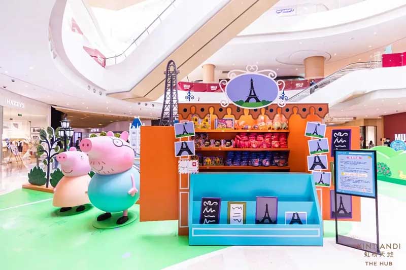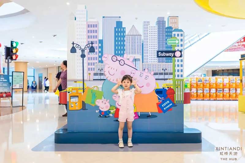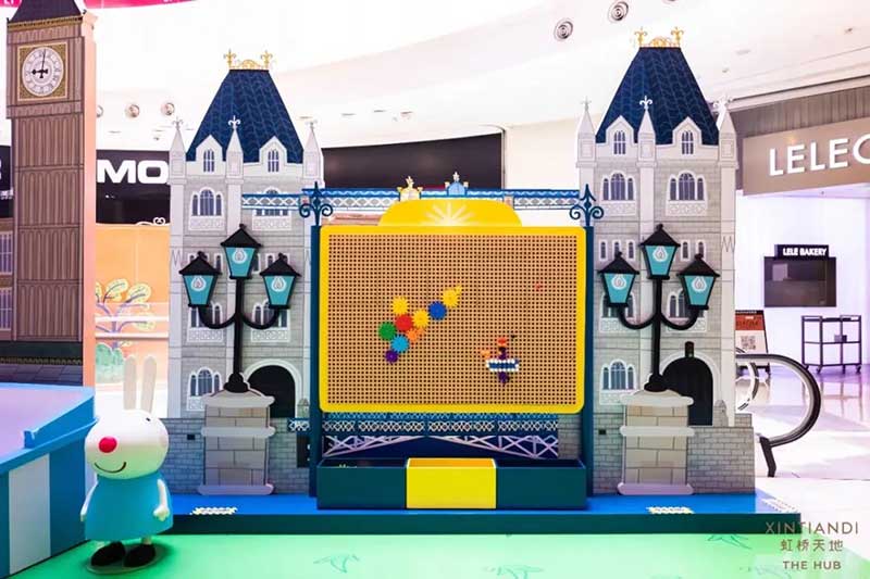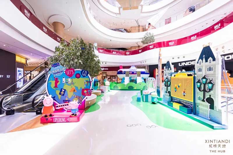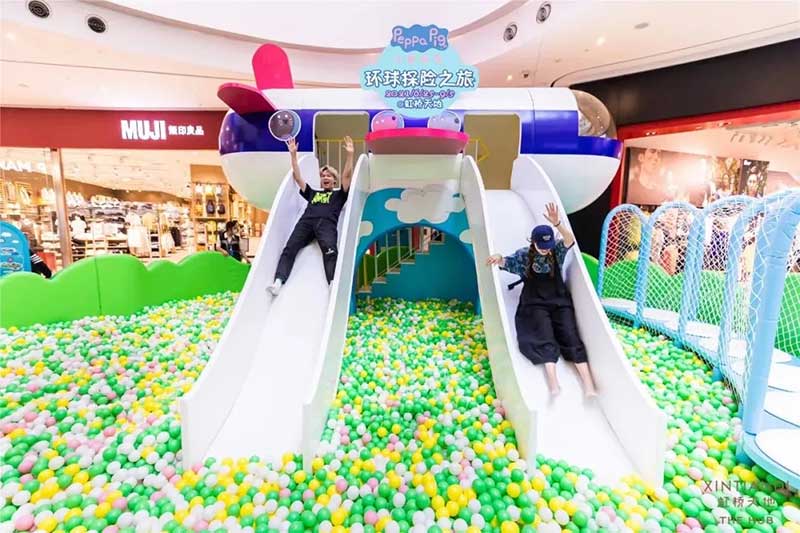 虹桥天地整个西中庭化身小欧洲,可爱的微缩版建筑,配上鲜艳清新的色彩,似乎可以随小猪佩奇一秒穿越到卡通世界!开始探险之前,别忘了看一眼入口的地图,心形世界地图上标记着即将游览的打卡路线,带上行李GO GO GO!小猪佩奇同款小飞机等待多时,踏上这架飞机前,还可以带上心爱的玩具,去找找万能的兔小姐的踪影,今天的她可是值机空乘!下飞机记得坐上滑梯,用勇往直前的姿势,冲入100㎡+的波波池!
