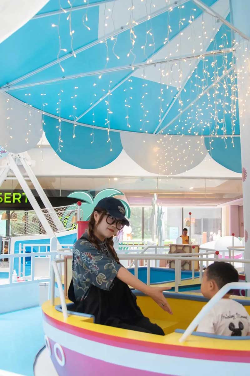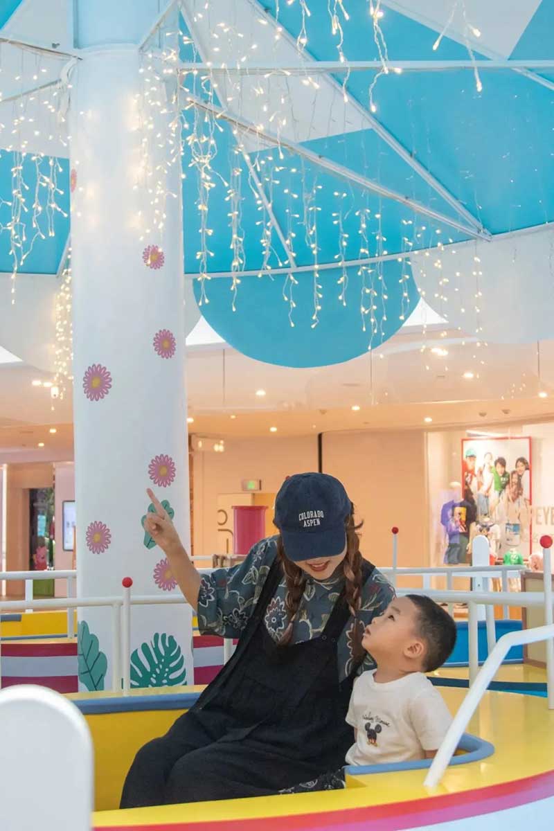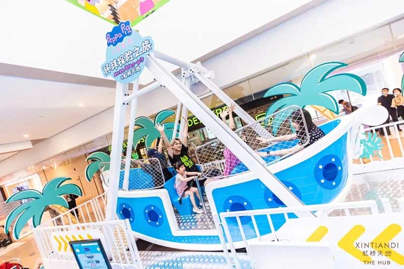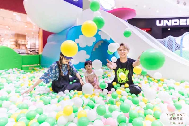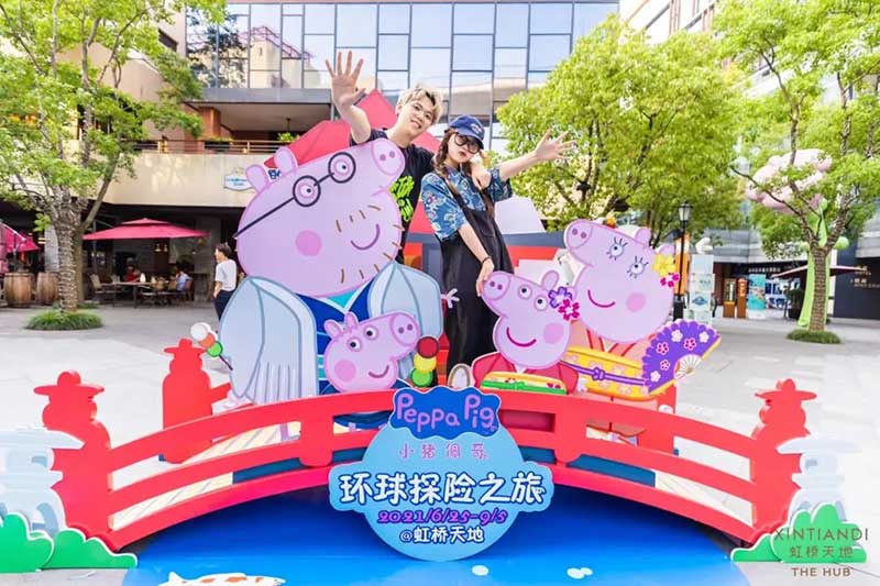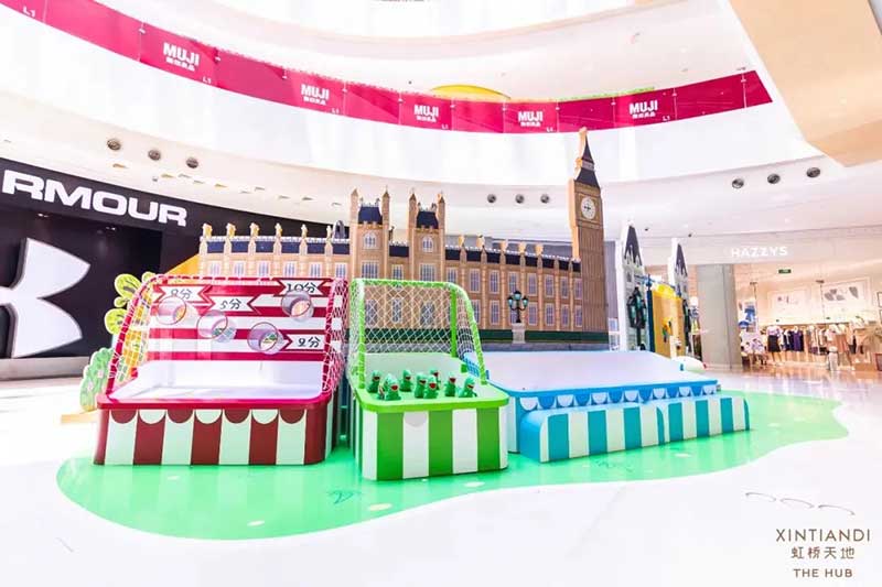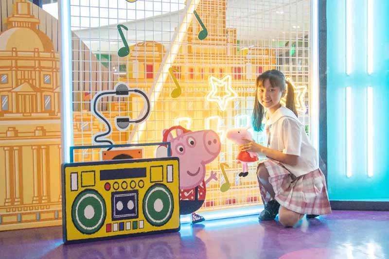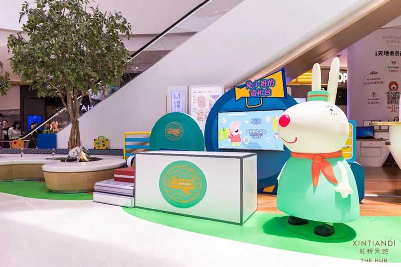 虹桥天地整个西中庭化身小欧洲,可爱的微缩版建筑,配上鲜艳清新的色彩,似乎可以随小猪佩奇一秒穿越到卡通世界!开始探险之前,别忘了看一眼入口的地图,心形世界地图上标记着即将游览的打卡路线,带上行李GO GO GO!小猪佩奇同款小飞机等待多时,踏上这架飞机前,还可以带上心爱的玩具,去找找万能的兔小姐的踪影,今天的她可是值机空乘!下飞机记得坐上滑梯,用勇往直前的姿势,冲入100㎡+的波波池!