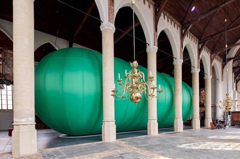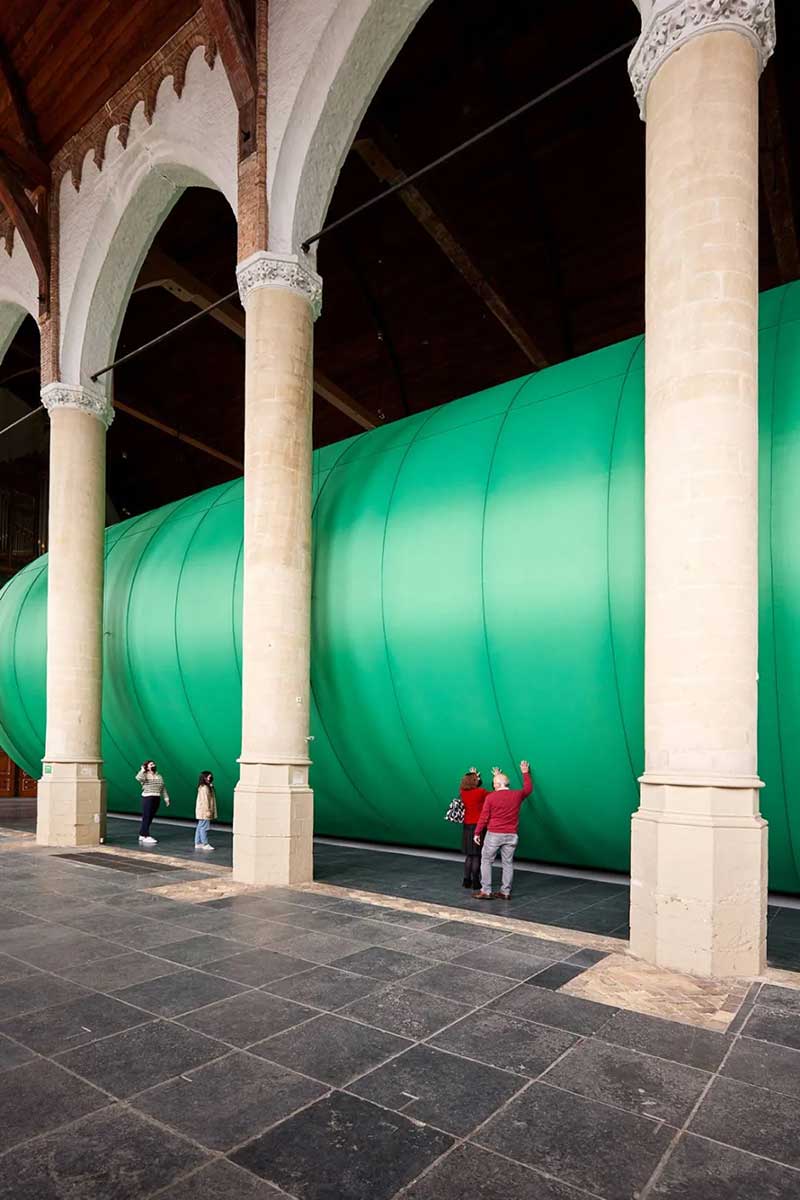 「黄色小鸭」之父弗洛兰泰因霍夫曼(Florentijn Hofman)近日为荷兰斯希丹市立博物馆(Stedelijk Museum Schiedam)完成了一个绿色充气艺术装置,充分展现出Hofman最标志性的比例对比手法,同时也带领观众用新奇、趣味的角度,去重新审视这个原本熟悉的空间。
