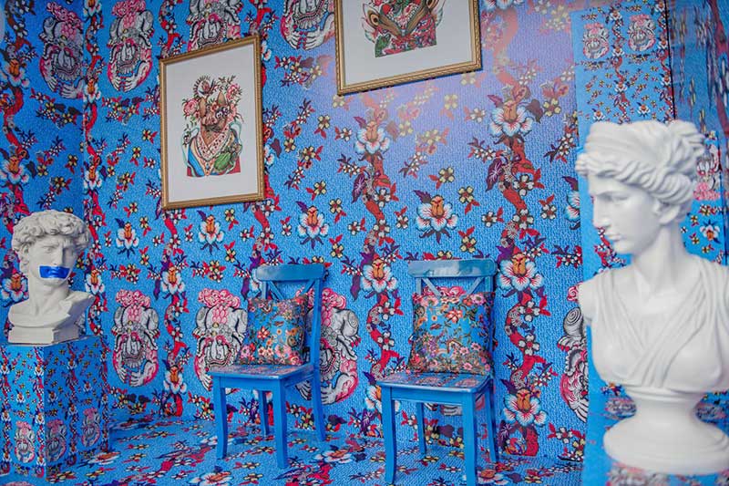 在本次《潘纳普的谧境花园》作品展中,《静待花开》、《绿野仙踪》、《春日幻境》三个展区分别以不同的形式传达给出一种全新的思想表达。且现场以艺术家丰富的平面作品元素为创作基点,并融合天马行空的想象和奇幻色彩,为小镇营造一处充满复古风与奇思妙想的沉浸式艺术美学空间。