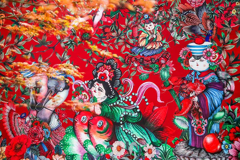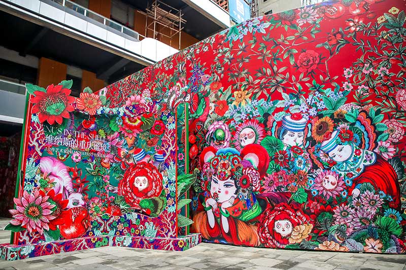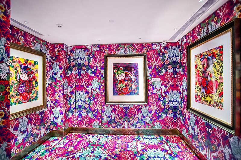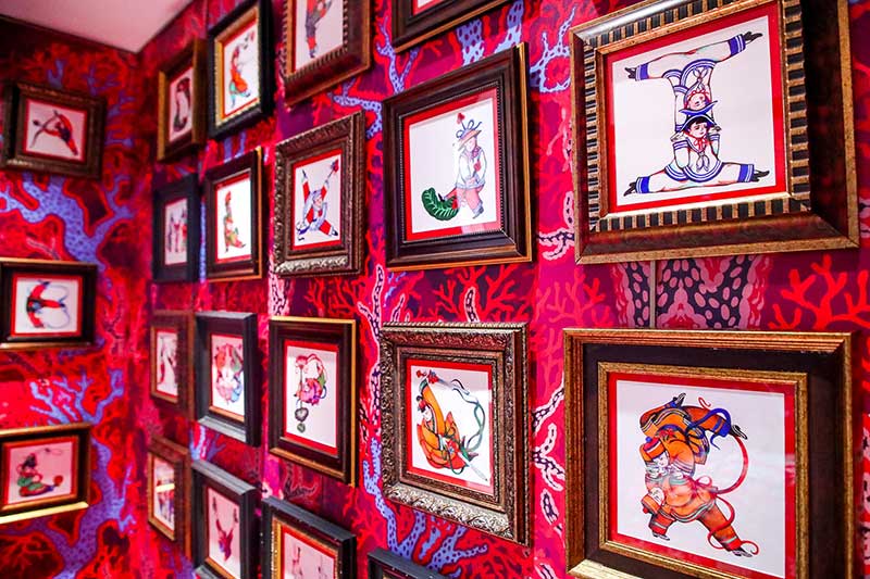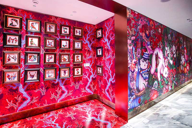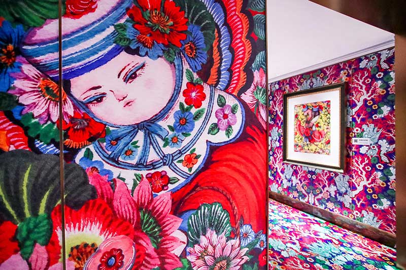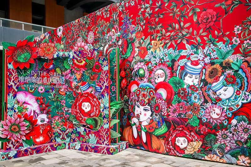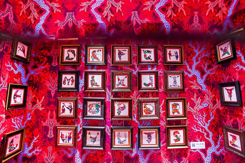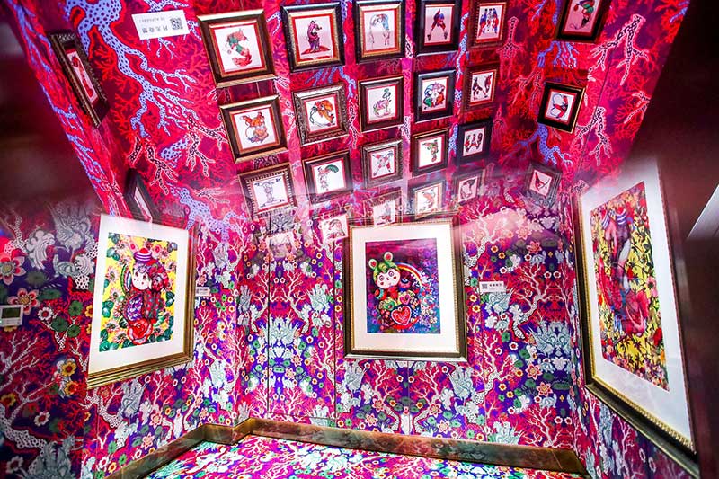 与GUCCI合作艺术家Phannapast来一场沉浸式的灵魂共鸣,用一场展览,对话艺术的精神。处于解放碑城市天际线极致视野的合景泰富·天銮云际美学馆,在GUCCI合作艺术家Phannapast的奇幻画作氛围烘托下,显得格外优雅,让人沉醉。在此次《VENUS IN THE SHELL》展览上,Phannapast的4个系列代表作品:《禁忌之花》、《曼陀罗幻想》、《月光奇想》、《逐梦花园》,以沉浸式的场景氛围,营造出一个充满东方主义色彩的奇幻浪漫世界。浓郁的色彩、奇幻有趣的动物、异域风情的花草图案,配合着优雅的大提琴和雅致的灯光投射,于云端天际之上打造出一个罕见的“异彩空间”。在这个梦幻的沉浸空间,人们通过对光与色彩的捕捉和审视,不断丰富着视觉经验,仿佛走进Phannapast画里的奇幻世界里。