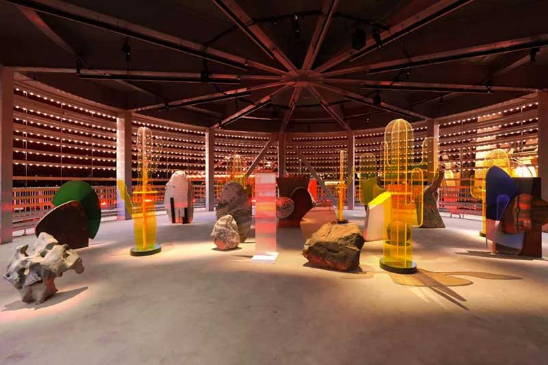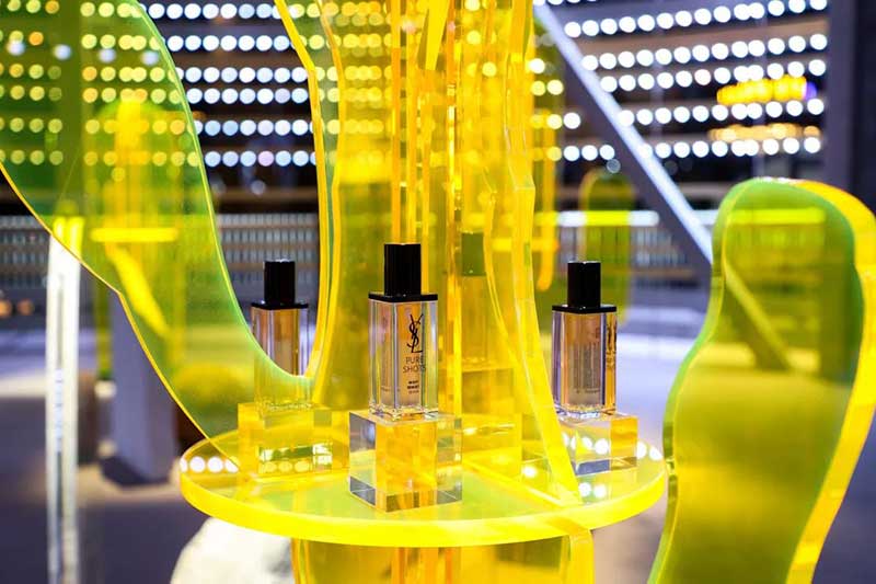 作为面朝黄浦江的灰仓艺术空间,首次与YSL合作变身美妆无界空间举行的美妆展。这里不仅汇集世界各地先锋艺术家们的装置陈列,依次排列着三个「煤仓」的外观本身,更是一件巨型建筑艺术作品,醒目的霓虹灯,配合着罐体的灯光,当代前沿艺术作品大胆兼收并蓄,无缝衔接YSL的先锋美学,用色彩打破束缚,在哑光的未来感中尽情起舞。