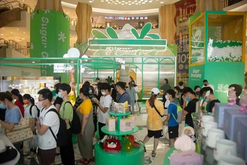 由原创潮流玩具厂牌TakiToys打造的首个大型主题特展“Sugar半糖·夏令时”,在上海静安大悦城正式拉开帷幕。此次特展被命名为“半糖·夏令时”,一方面是以当家人气IP半糖少女Sugar为核心设计元素;与此同时,“半糖”恰到好处地诠释出TakiToys崇尚热爱与毁灭的双生内核,尝试进行传统与现代的艺术碰撞。为了呈现一场先锋理念与正和创意交融的视觉盛宴,TakiToys以牛奶屋顶盒为原型,打造巨型玻璃花房,搬进核心都市商圈,重新定义了商业综合体的美学与感官体验。近400平场地上,被划分为梦幻玻璃屋、灵感贩售区、玩趣狂欢区和半糖品味区等在内的多个体验场景。打破空间的区隔,开启360度流动式看展的全新体验,观众三三两两地穿梭在半糖的奇妙花园,共感一场夏日的流动盛宴。TakiToys将会联合来自不同领域的6大品牌,将“Sugar半糖·夏令时”划分为风物、灵感、未来、心动四大主题单元,用品牌的破圈联动去占领超越速溶娱乐的精神高地。