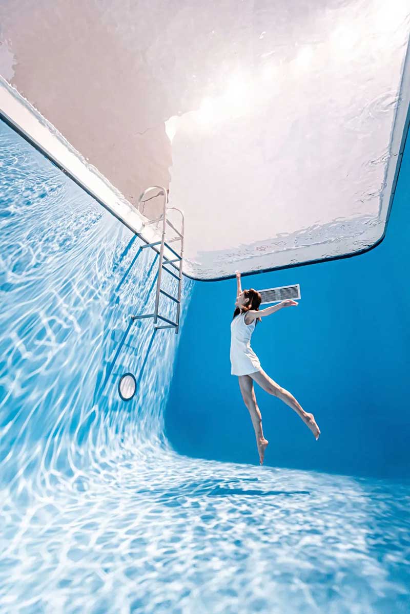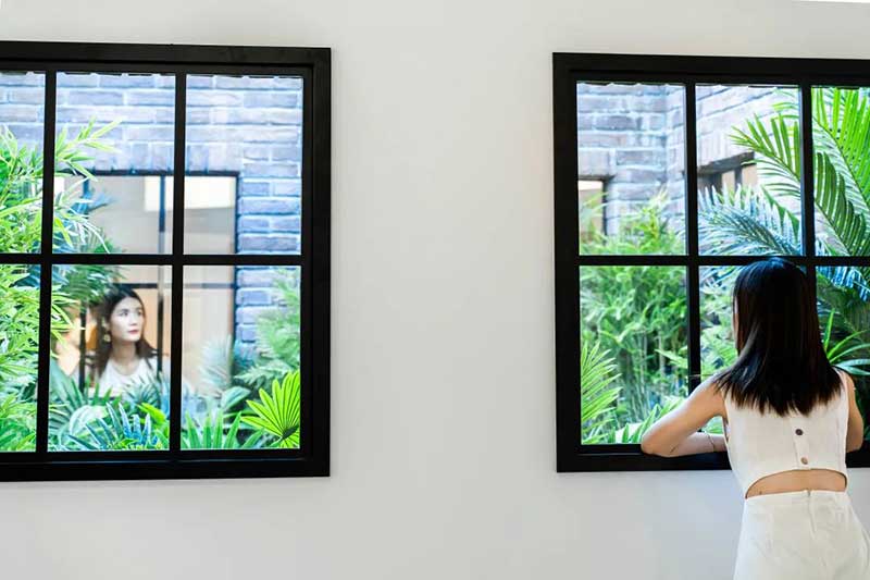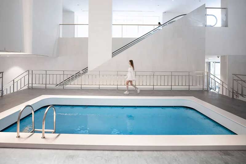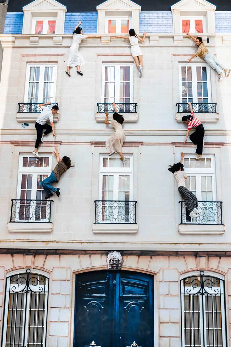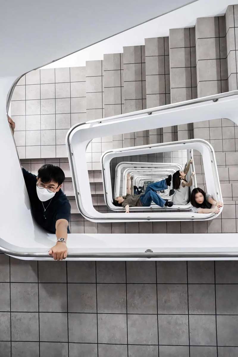 Leandro Erlich,一位阿根廷艺术家,他的作品在世界各地展出,并被各大博物馆和私人收藏家永久收藏。至今,他已举办大大小小23次个展,据不完全统计已吸引全球100多万人次争相观展。看过雷安的作品,你会在迷失、模糊、感知的困惑中反复横跳,12件作品带来盗梦空间般的视觉冲击,当然收获一波好看的照片,同样必不可少。《游泳池》是雷安的标志性作品之一,作为全球流行的网红打卡点,不来一张“泳池照”岂不可惜。可以在水底行走的游泳池,这样魔术般的体验,非常奇妙。站在水面上方向下凝视,会看到一个波光粼粼的蓝色空间;水面下则可以体验光线在自己身上追逐嬉戏,还能两个空间进行互动,感受到“雷安式”幻象的魅力。作品《建筑》是最舒服的打卡点,躺在上面,对着45度倾斜的巨大镜面拍照,你可以挂在阳台的护栏上、坐在墙沿边…各种新奇的姿势,发挥你的想象就好了。《楼梯》是雷安另一件标志性作品,从楼梯上往下看,楼道无限向下延伸的空间感,创造令人遐想的视觉迷宫,让你不禁目眩神迷。扒着楼梯边沿努力不让自己掉下去;或者逆向思维一下,“掉下去”也是不错的选择,既新颖又有趣。《迷失花园》这件作品,雷安把现实生活中不可一见的场景,变成“现实”。一个看似普通的“房子”,当你透过窗户看向对面,发现自己竟然出现在斜对面,仿佛是遇见平行宇宙的另一个自己。其实这是因为位移现象导致的,找好角度能同时拍到两个自己出现在画面里,怪诞又奇妙。