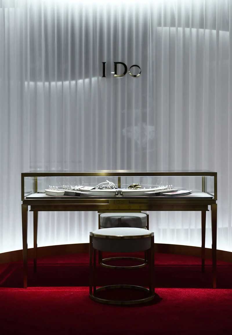 此外,还有整面墙的彩色版画,每一幅画的背后,都有一个灵魂驻足,藏着一份期待。在艺术品的围绕之下 你们可以拍下一组文艺大片,化身为文艺电影里的爱情男女 ,探讨爱与誓言的终极奥义。从今生到永恒,理应有个期限,但真爱是没有期限的,深爱就自然想陪TA走到永远。展区内高饱和配色的艺术作品,通过巧妙的排列,形成一个莫比乌斯环,宛如一道情感长河没有尽头。沿着莫比乌斯环展台,可以来到商品展示空间,这个设计实在很妙,把爱无止境,循环往复的理念,演绎的淋漓尽致。展示墙陈列着珍贵的冠冕和钻戒,象征着爱的永恒和坚贞,让每一颗珠宝都幻化成为爱守护,生生不息的载体。