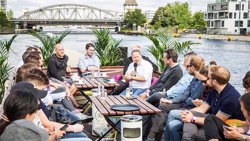 在富有远见的“城市乌尔巴尼亚”的中心,客人们可以体验和使用连通性的力量,参观者的个人创新想法与两家公司的技术能力进行了交流,活动的重点是开放实验室的互动研讨会、展示以及与当前热门话题专家的互动。而今年活动的另一个亮点是位于施普雷河畔的洋红色船,它作为了会议的地点和轻松的聚会场所。