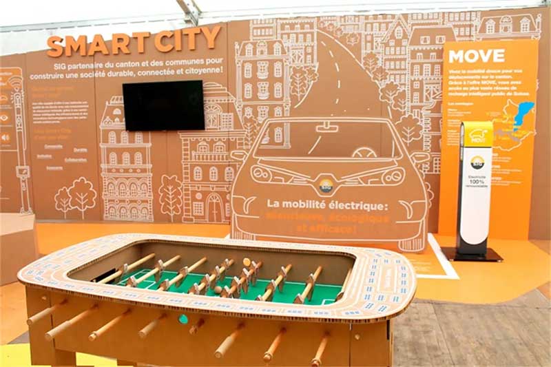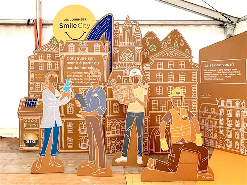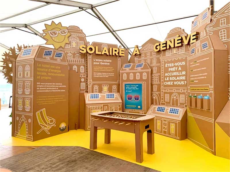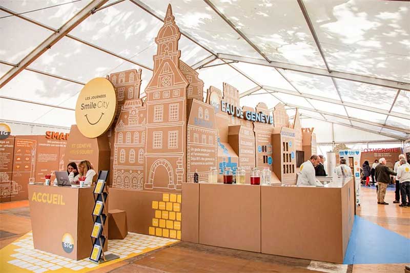 对所谓的发达国家的普通公民来说,负责任的城市能源管理变得越来越重要,而这些国家又是全球资源的最大消费国。日内瓦SIG公司在这个繁荣的瑞士城市管理着各种类型的能源。根据上述概念,此次活动将SIG的服务与微笑的城市概念联系起来,策划了一场户外帐篷内的展示活动,旨在提高民众对环保的意识,同时宣传SIG在其日常的服务中,正努力践行着他们的环保承诺。SIG在日内瓦除了展示水、气、电和热能的供应以外,活动中还展示其通过可持续发展的技术创新,面对未来的智能城市的努力。