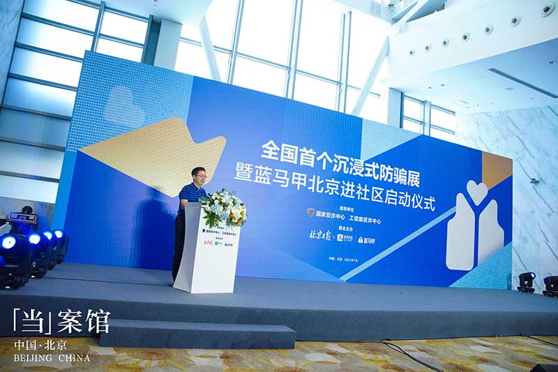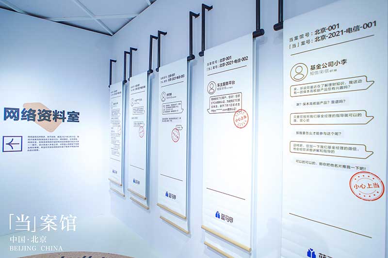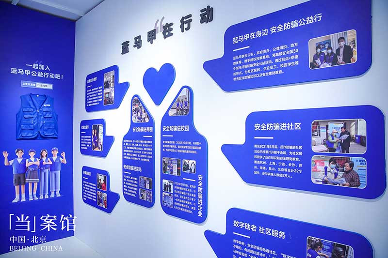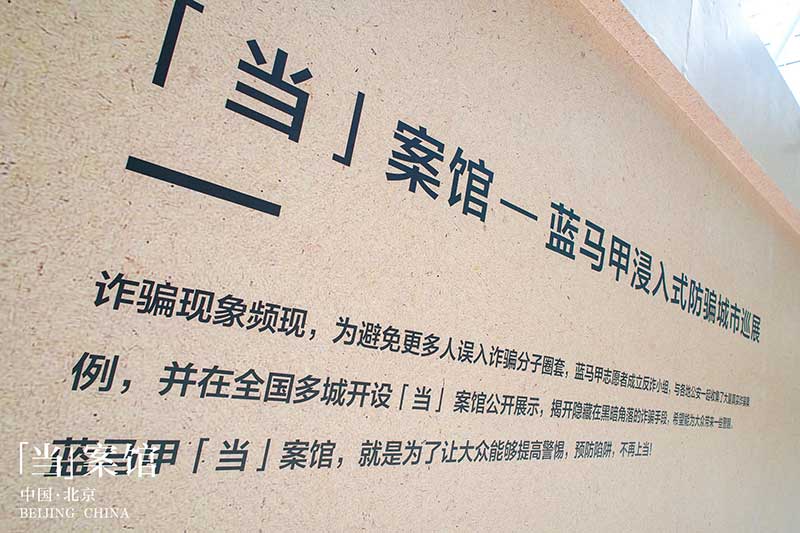 全国首个沉浸式防骗展暨蓝马甲北京进社区启动仪式在北京举行,该防骗展采用“多维度案例+成果展示+交互体验”的方式,通过集合各种骗术的“当案馆”形式,花样展示诈骗案例,并通过互动的形式,还原诈骗的真实场景,趣味性与科普性并存。