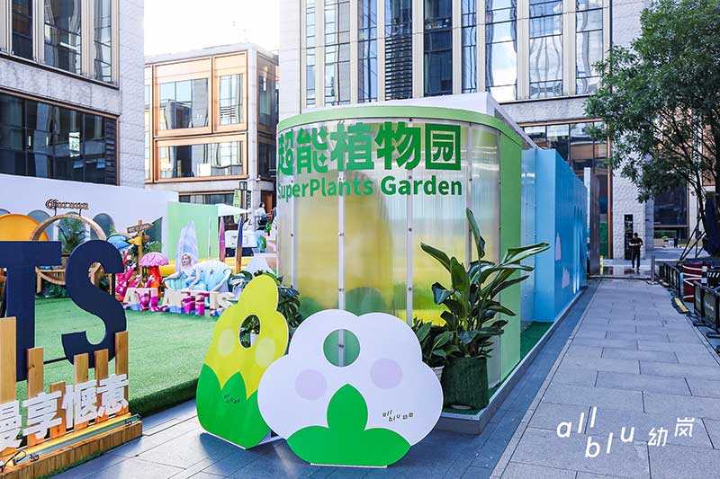 为了吸引更多消费者参与,「超能植物园」整体外观以积木元素为主,搭建出儿童喜爱的绘本风格空间,透过童趣的色彩使人感受到建筑物的儿童特质,从视觉上展现幼岚品牌理念和产品特质。