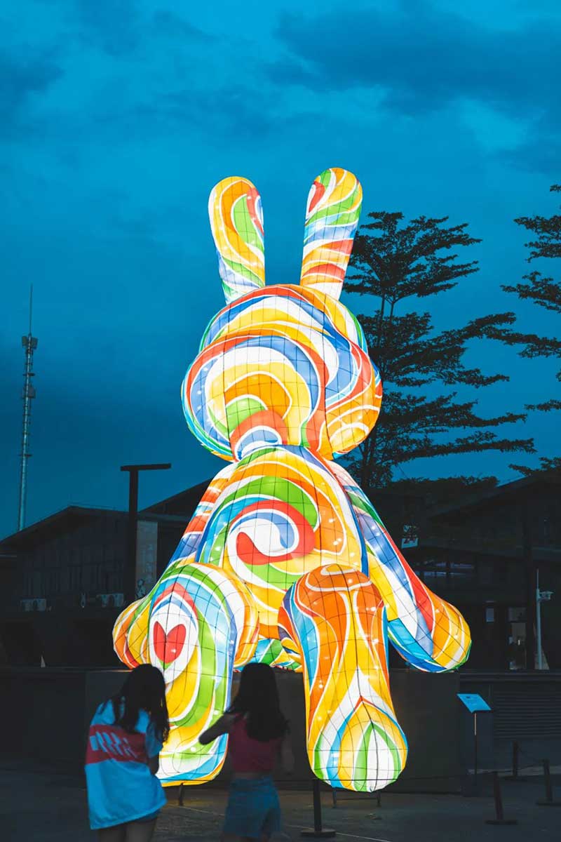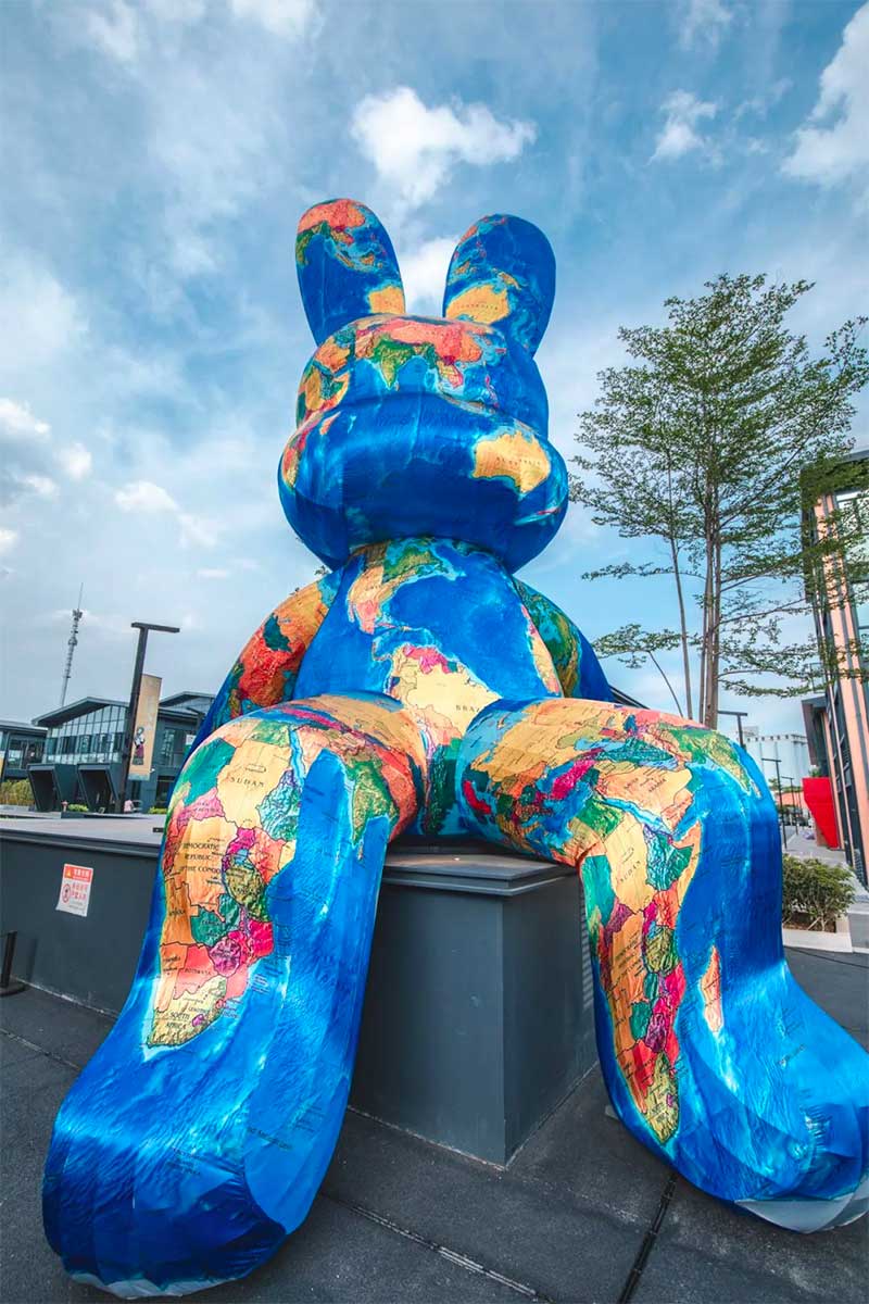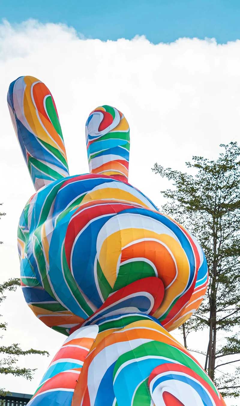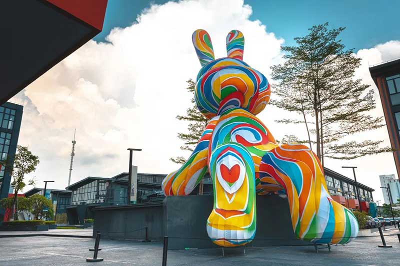 工美港九米高的兔爷展览活动策划装置换新皮肤了,浪漫彩虹色又甜又嗲