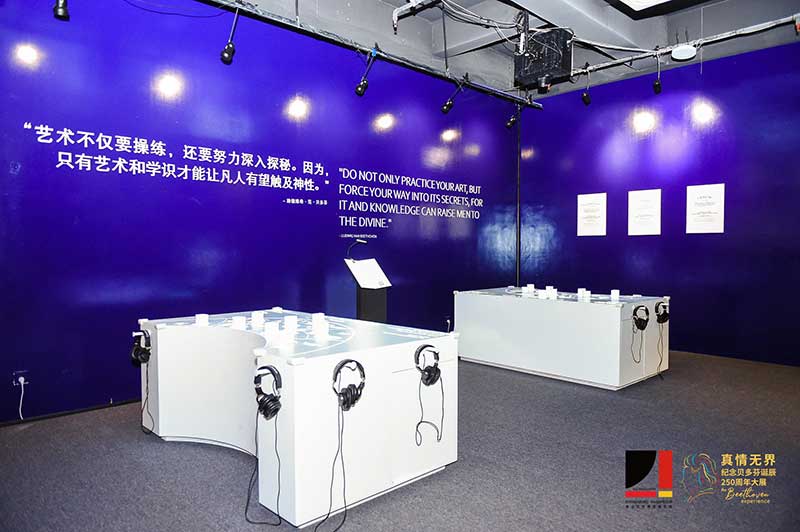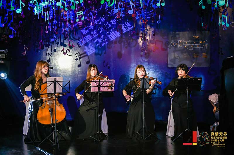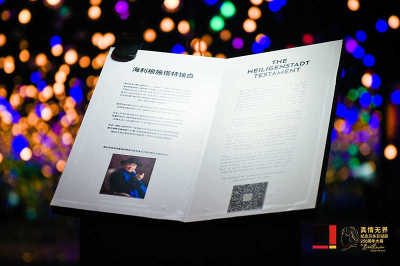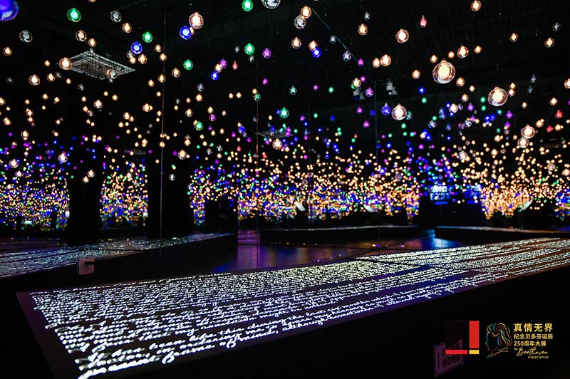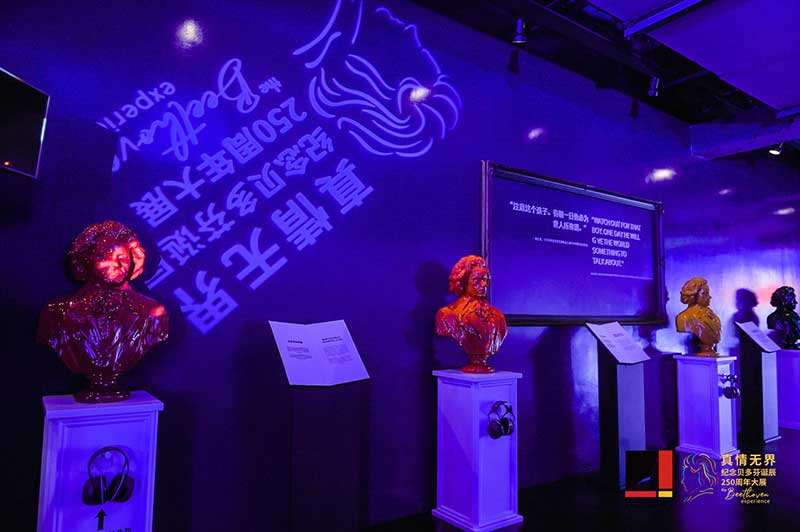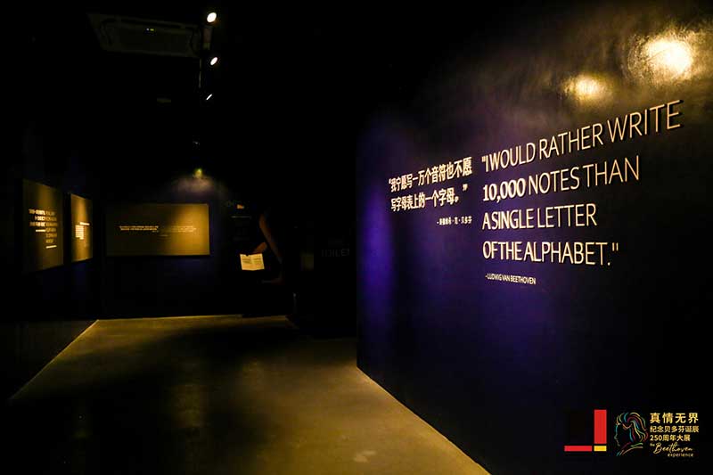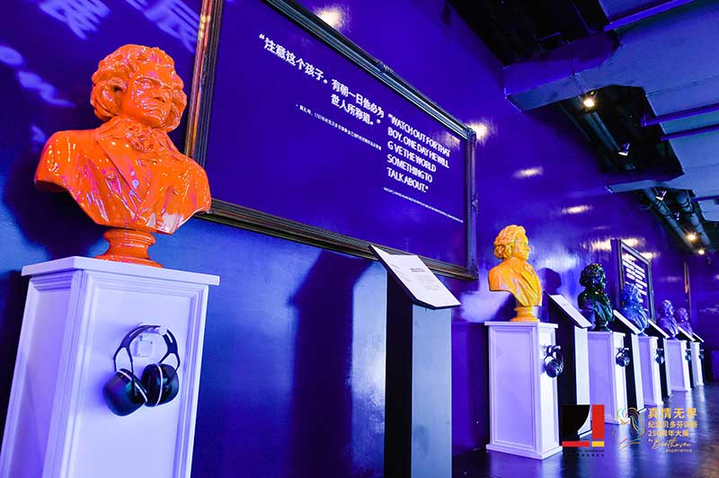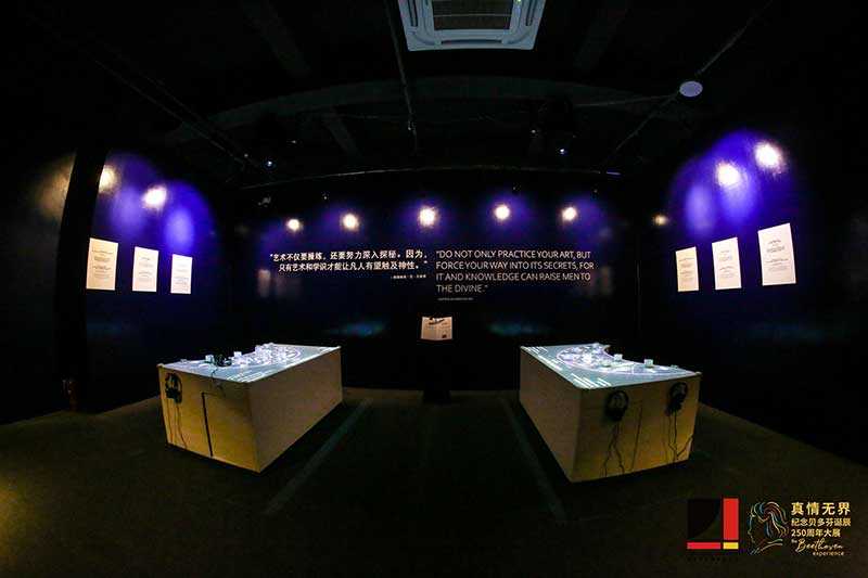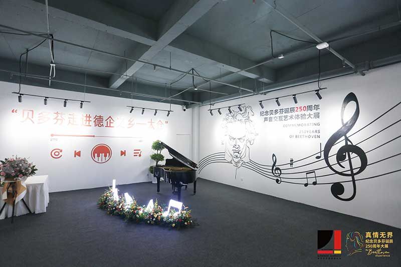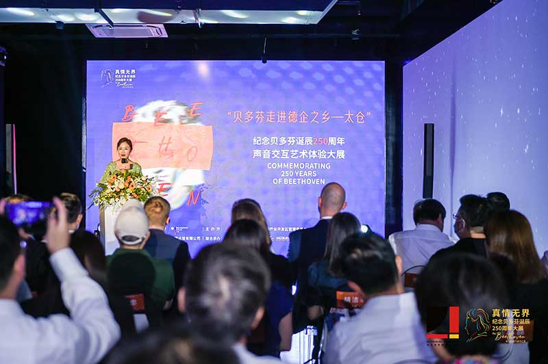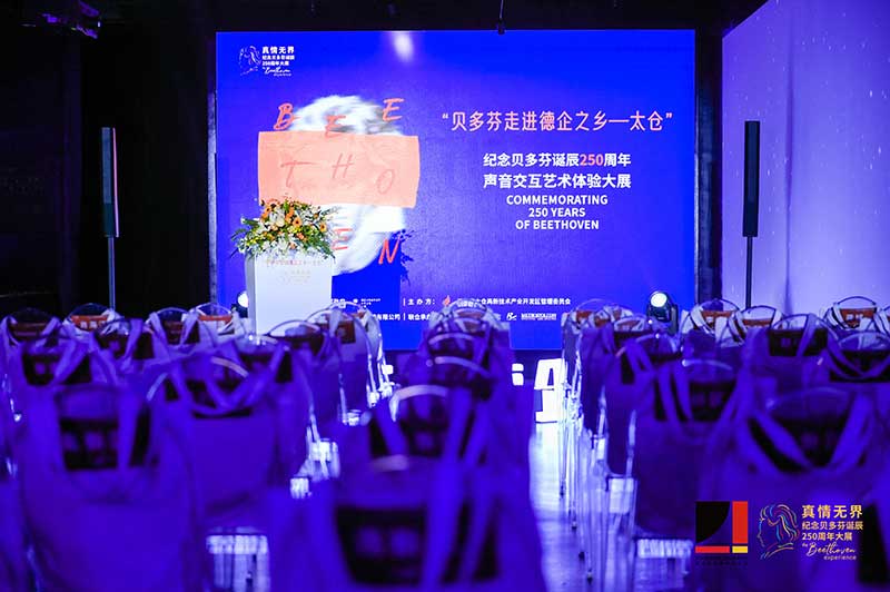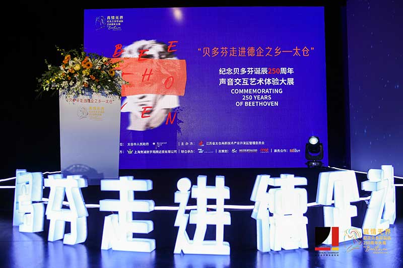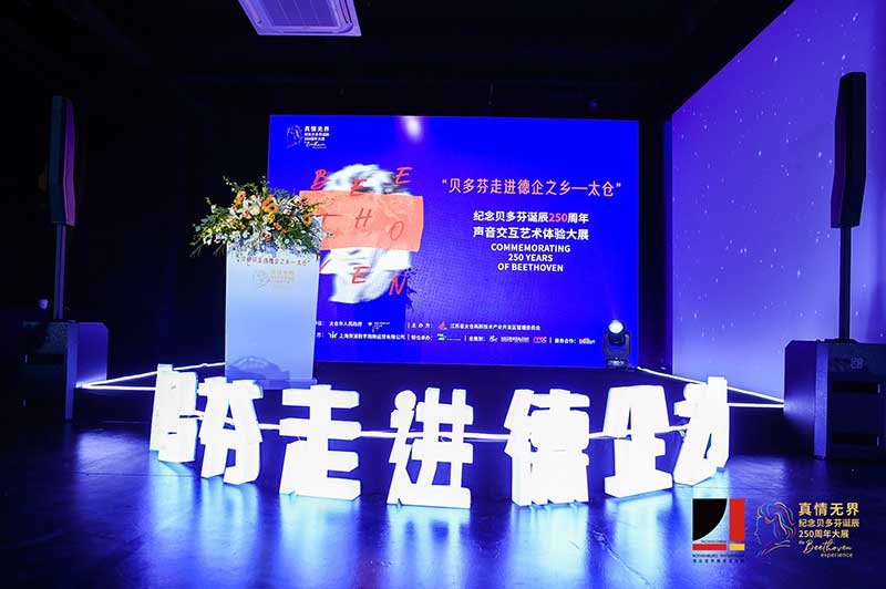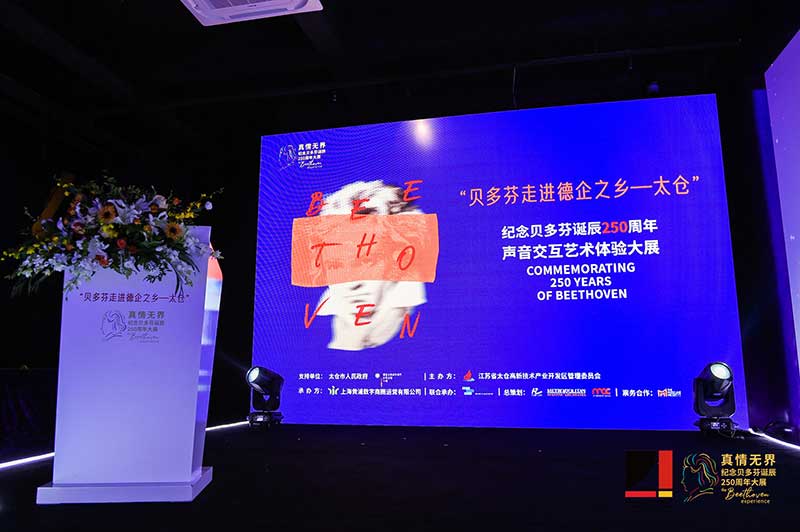 伴随着贝多芬弦乐四重奏,“真情无界——纪念贝多芬诞辰250周年声音交互艺术体验大展”全球第二站来到德企之乡——太仓,也是全国县级市的第一站。本次大展共分“通向第九交响曲之路”、“贝多芬音乐探微”、“贝多芬的创作环境”、“海利根施塔特独白”等10个展区,贯穿贝多芬生平、音乐作品和人生故事。其间穿插融合沉浸式科技互动、交互式视觉投影,配合交响乐团专门为展览录制的贝多芬交响乐作品,给观众呈现一场多维度的声音交互艺术感官之旅。