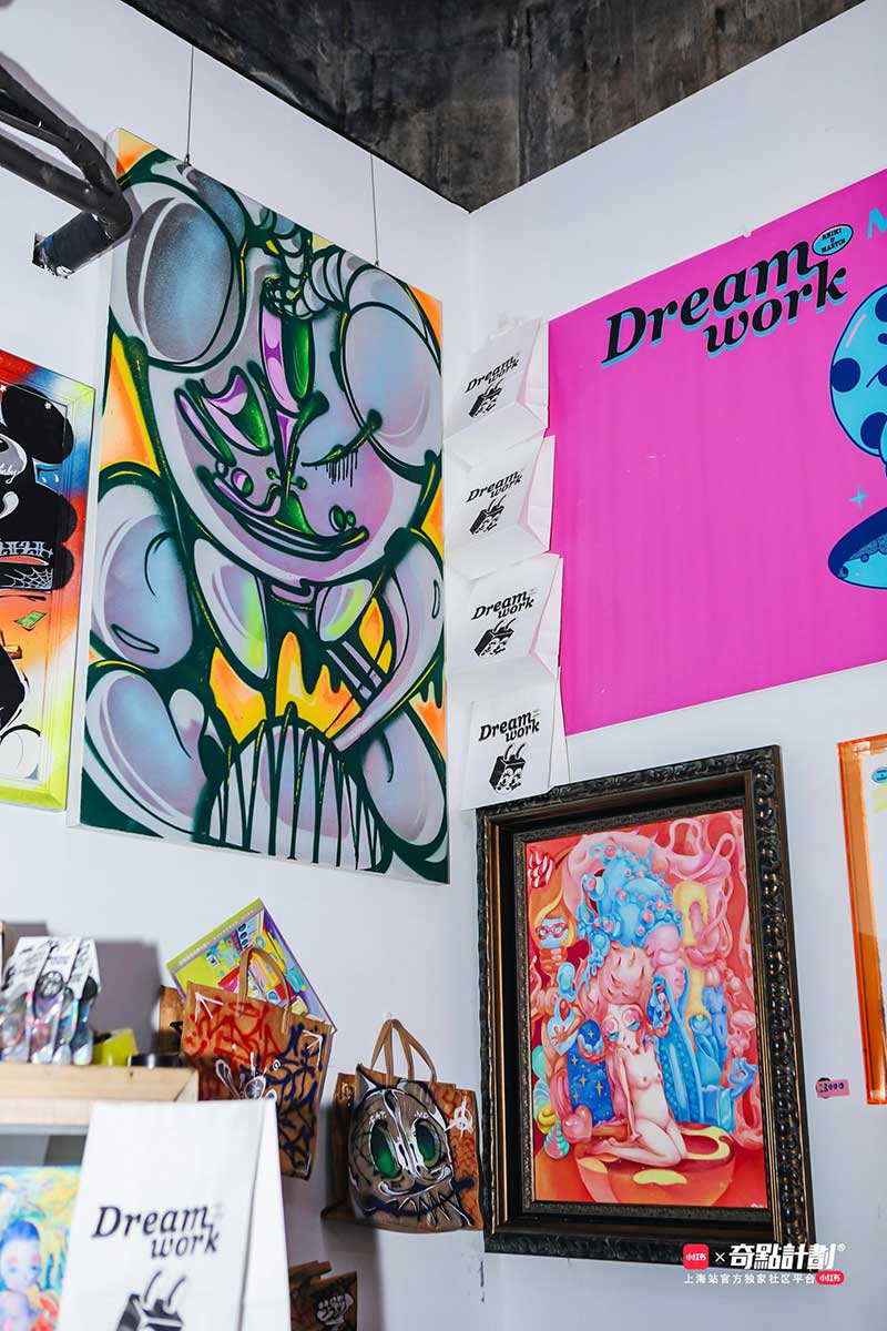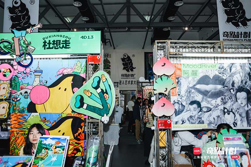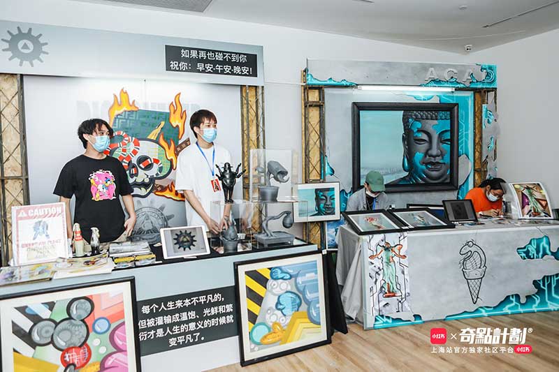 奇点艺术节2021·上海站汇聚了独眼矮子LINWENXIN、Nini Sum(爱豆笔此IdleBeats)、小龙花、InkeeWang、接臧、李楚杨、SARS108、BOGY Studio、谢凸、MTS Crew、Plastic Tree、Vikki Zhang、识郎制作等157组优秀的小红书站内青年艺术家作品,力求为这座城市缔造一个属于潮流艺术的节日。每一块小区域都非常的独特,各个插画大佬各显神通,展示了他们眼中的世界,印刷品也是琳琅满目,riso,艺术微喷再加上完美的画作,质感特别好!题材多种多样,脑洞很大,可见生活真的处处是灵感啊!