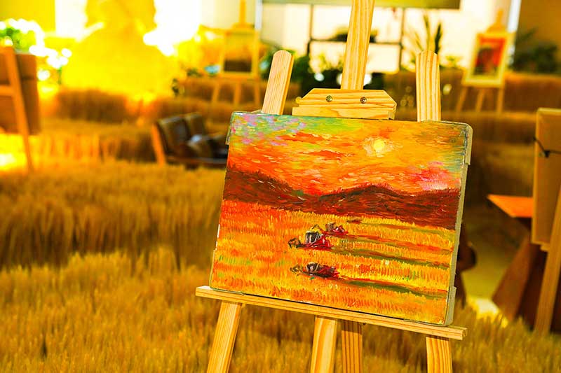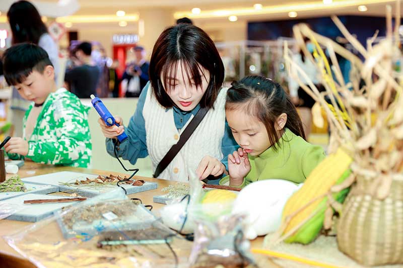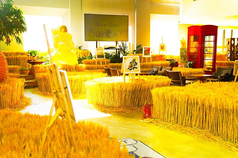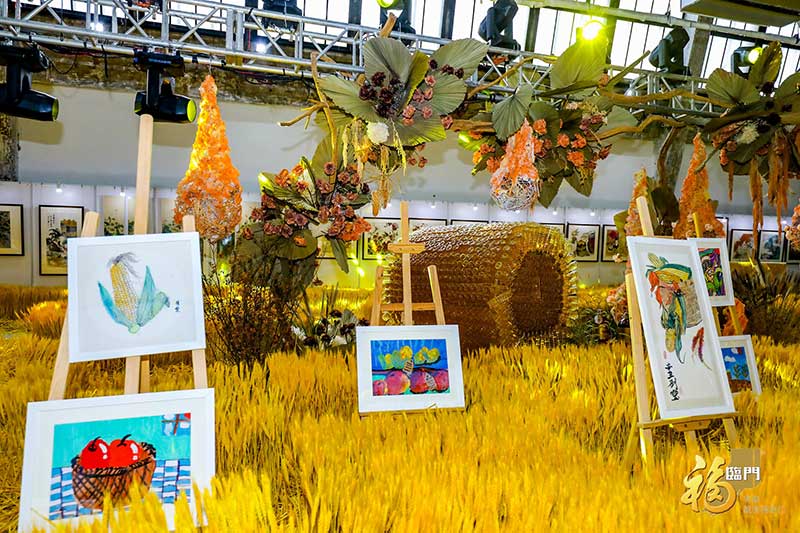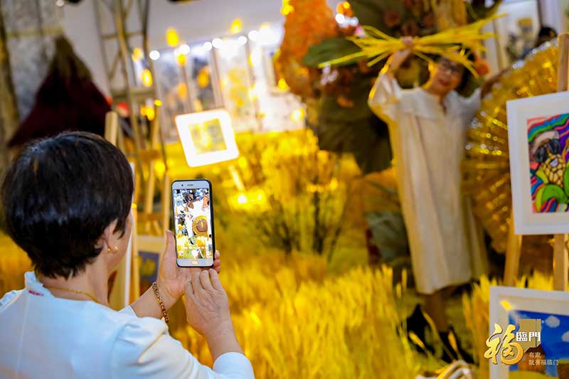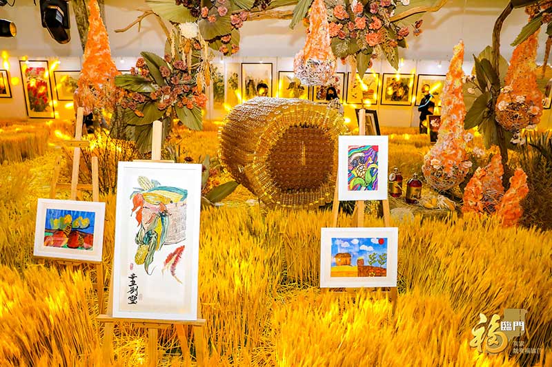 除众多珍藏级美术作品外,用农作物编织出的极具现代艺术气息的美陈装置也为本次艺术展营造出绝美的环境氛围,慕名前来打卡的消费者络绎不绝,开展以来,接待观展消费者累计超过三万人。