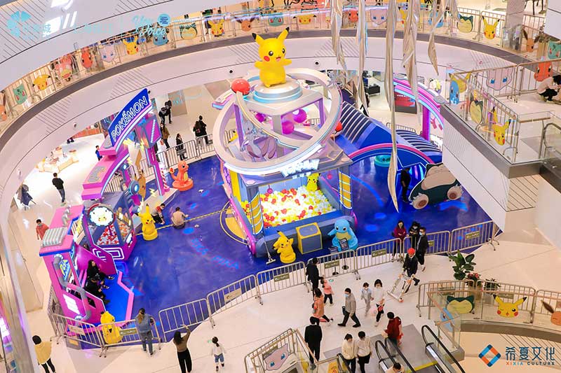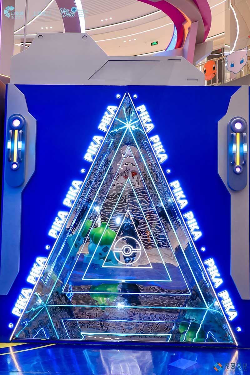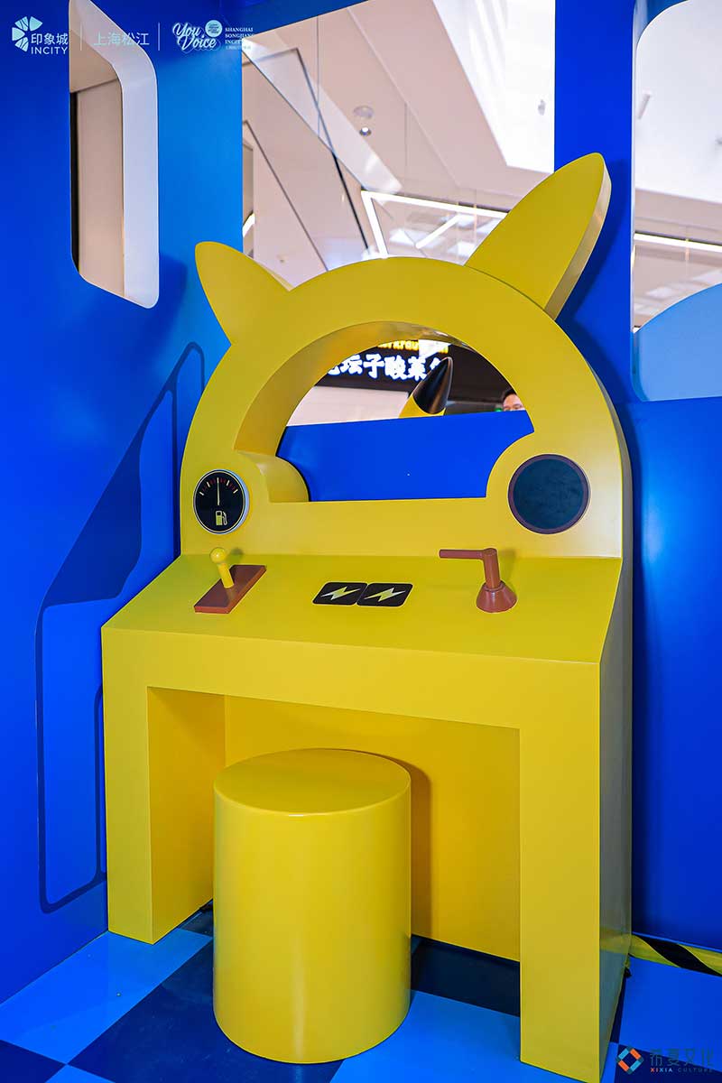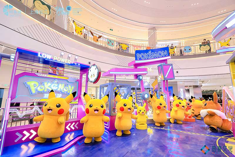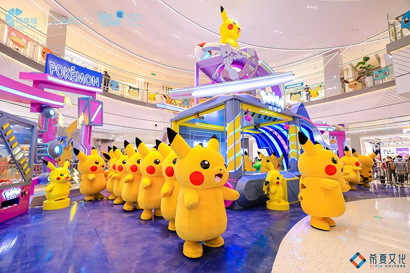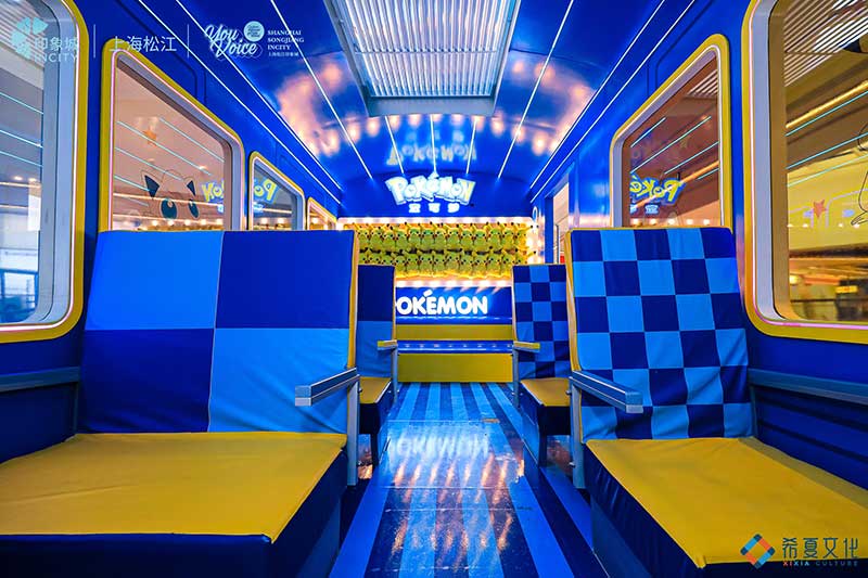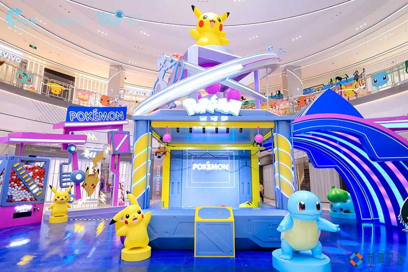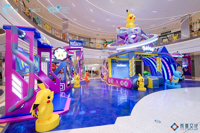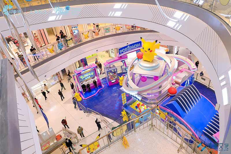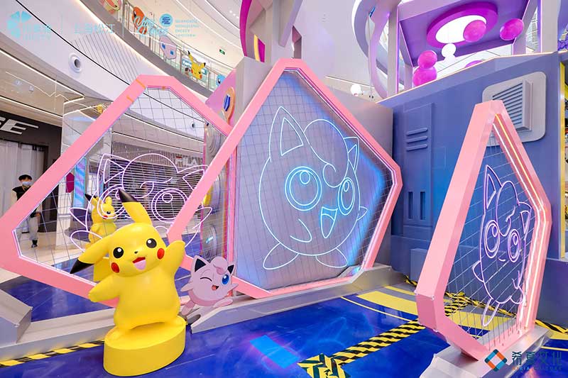 宝可梦形象全新主题活动首展“宝可梦跨次元之旅”,运用蓝紫色调的主打色,在L1设置宝可梦车站、宝可梦训练营等场景,还有扭蛋机、大型娃娃机等互动装置,创造出跨次元的趣味体验。