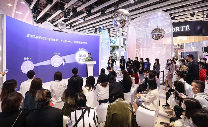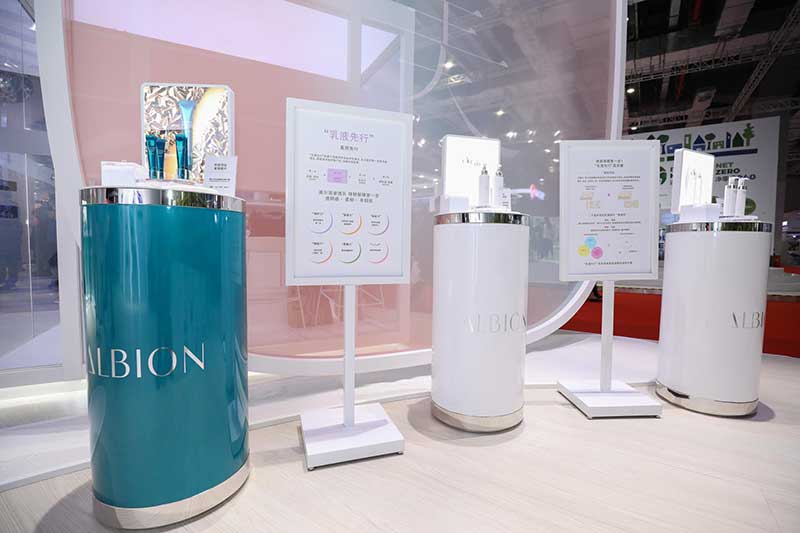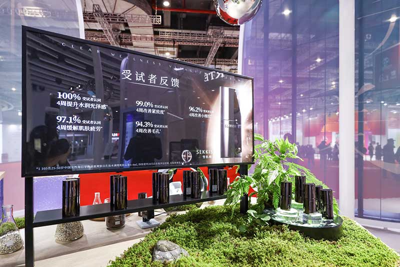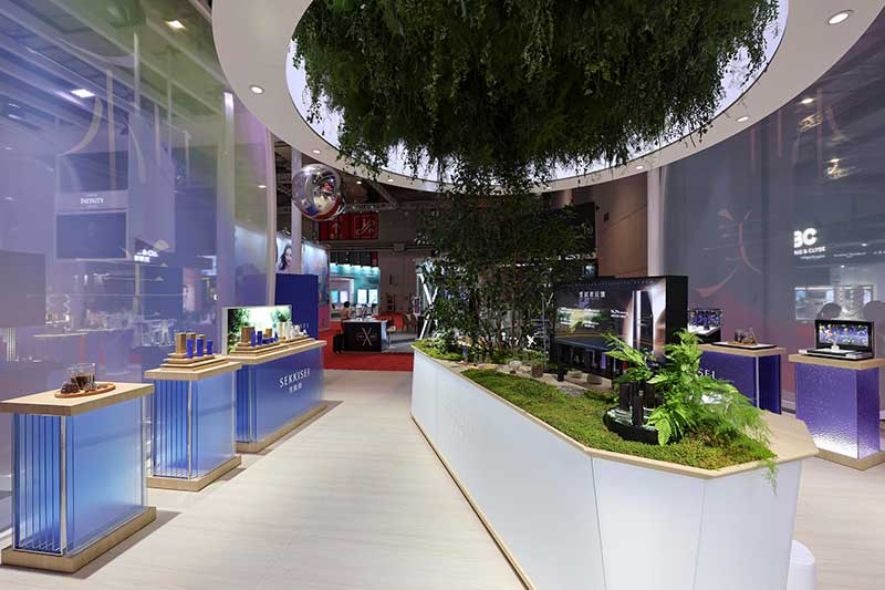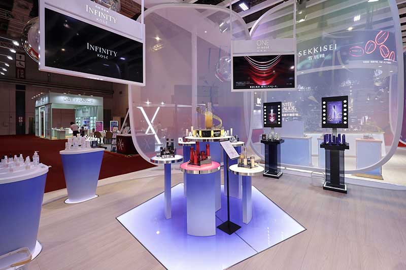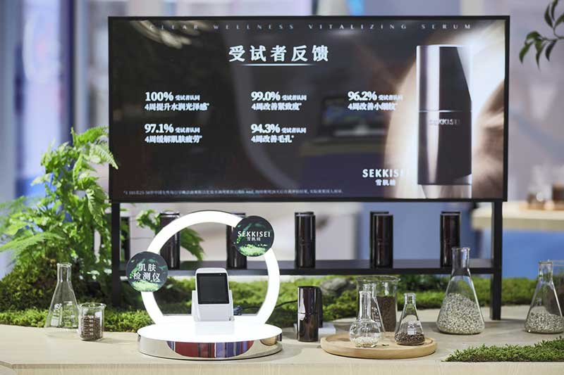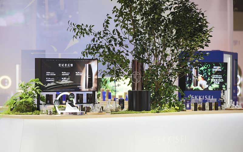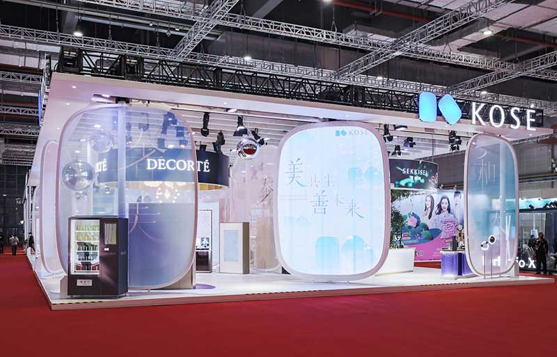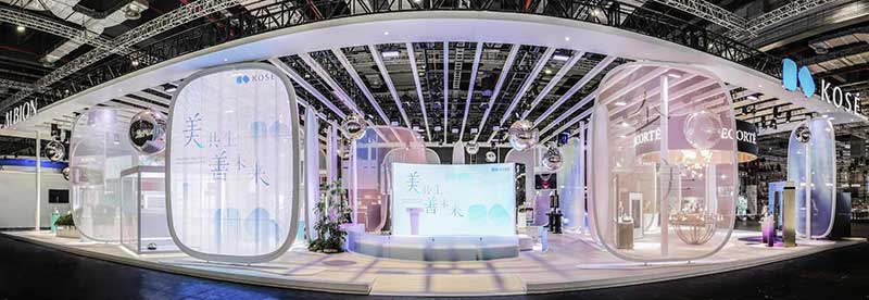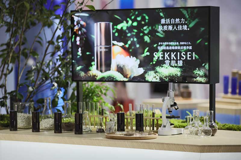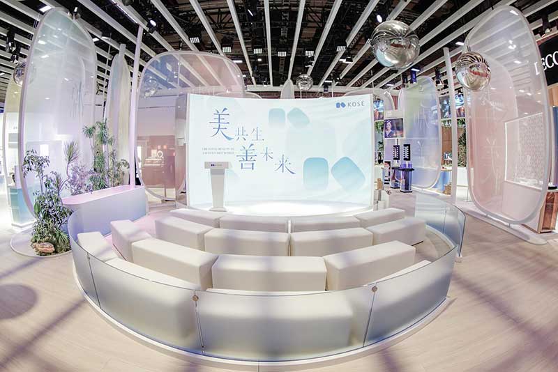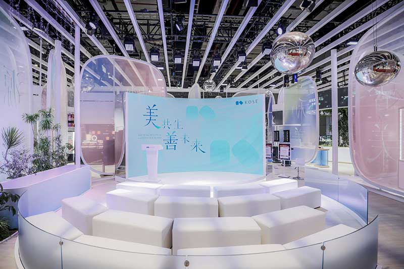 展位总面积达500平方米,利用柔美的纱幕打造立体空间,体现高丝集团善美的核心精神,传递各品牌美的不同可能。现场还陈列了融合科技与趣味的互动装置、个性定制机器,并举行了20多场主题各异的品牌活动。现场体验和线上联动结合,将明星展品及精彩活动一网打尽。