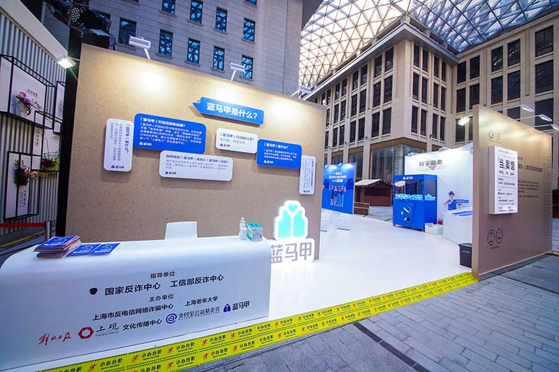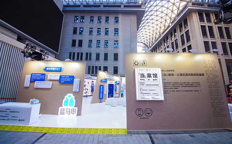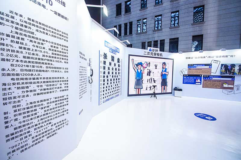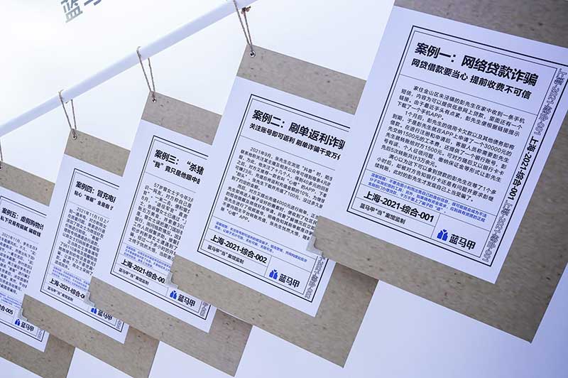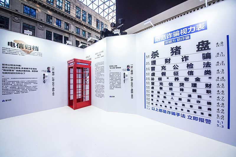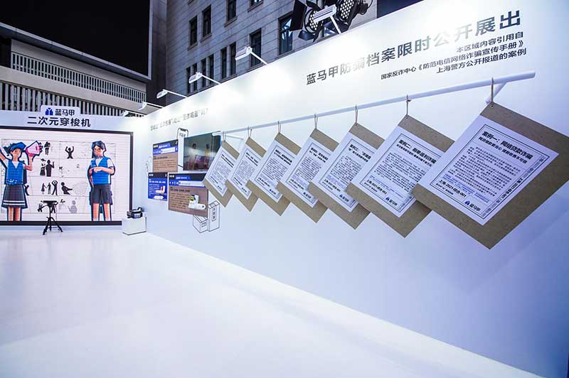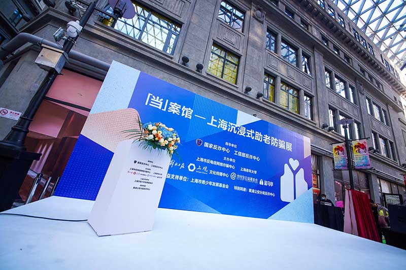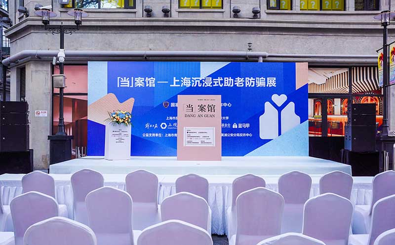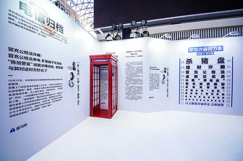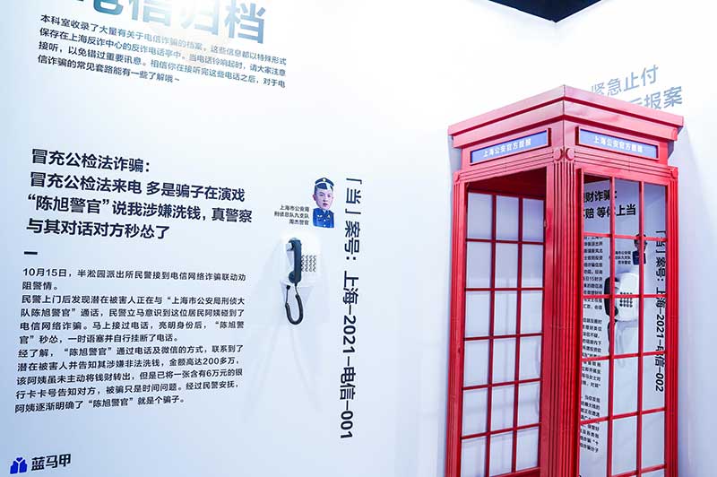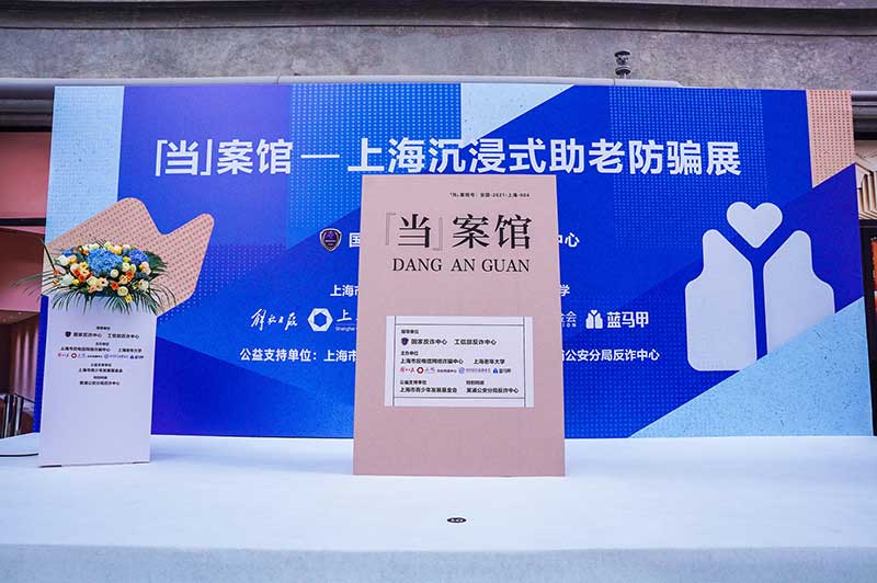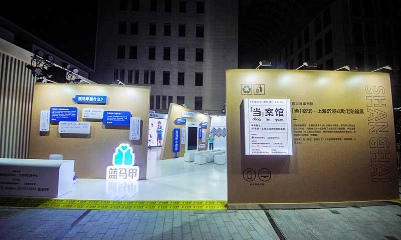 “当”案馆——上海沉浸式助老防骗展在上海外滩中央广场举办。“当”案馆的“当”实为上当的“当”,展览汇集了让人容易上当的诈骗案例,为观众一一揭开骗局的真实面目。牛皮纸般的外墙围起展厅,让这场展览宛如一个大型的“档案盒”,同时也呼应了展览的名称。进入“当”案馆后,展厅划分为“反诈宣传区”和“数字助老体验区”两大板块。互动性和真实感是“反诈宣传区”的两大重要特征。有别于传统的科普讲座,此次沉浸式助老反诈防骗展是通过情景模拟常见的诈骗案例,让观众在颇有代入感的体验中认识骗局、看穿骗局,从而提高防范意识与反诈能力。