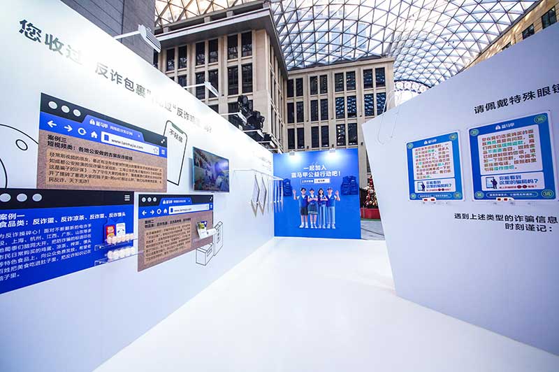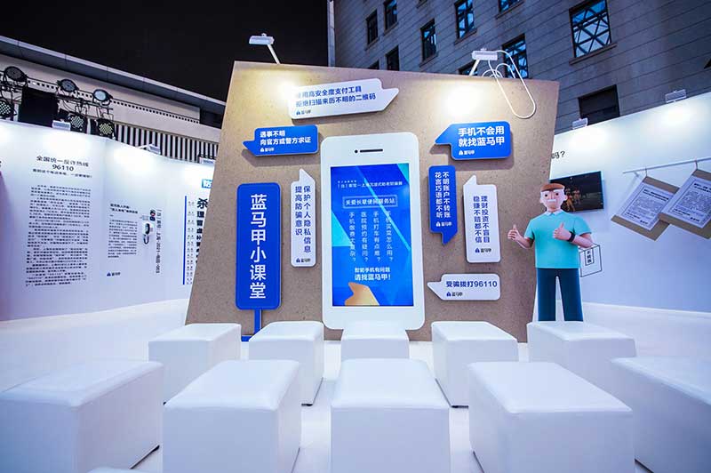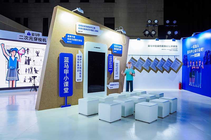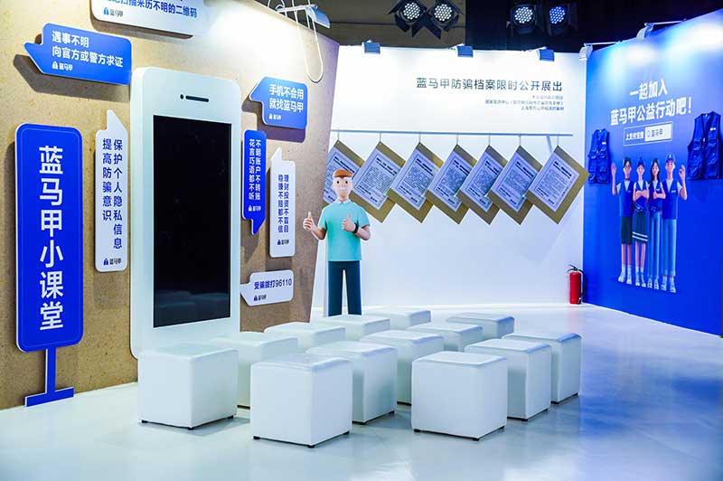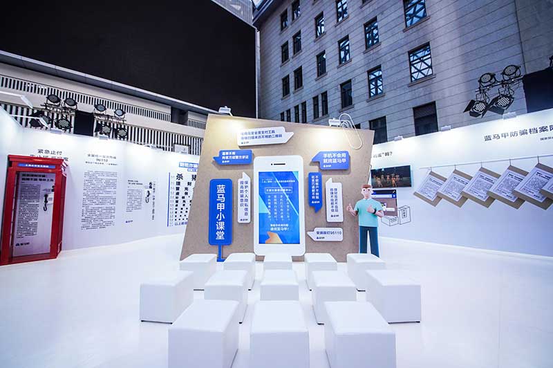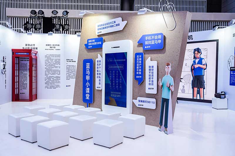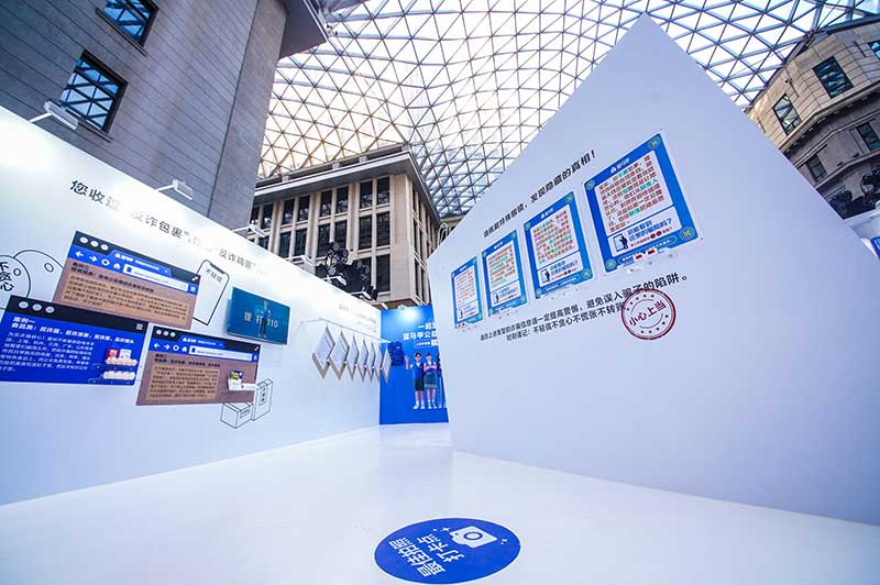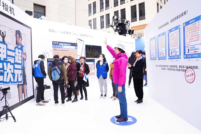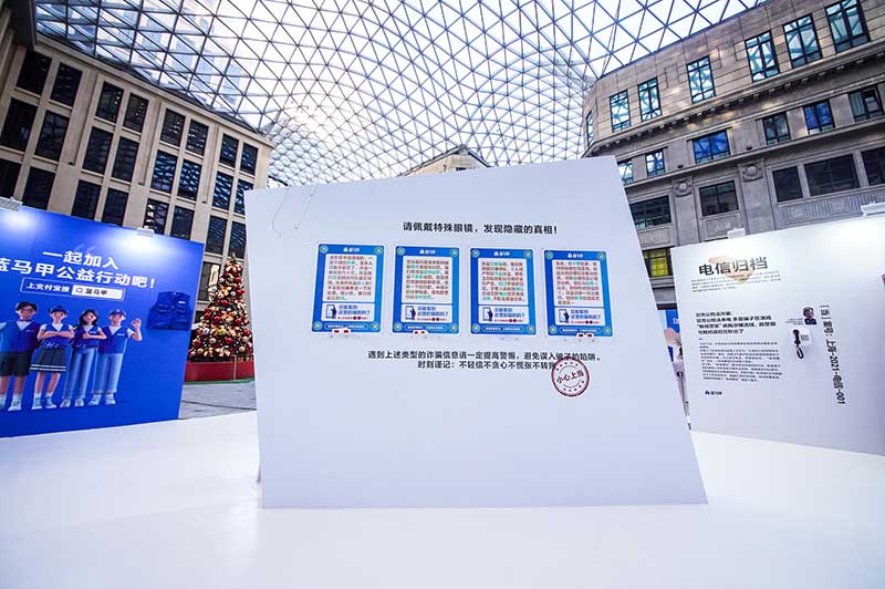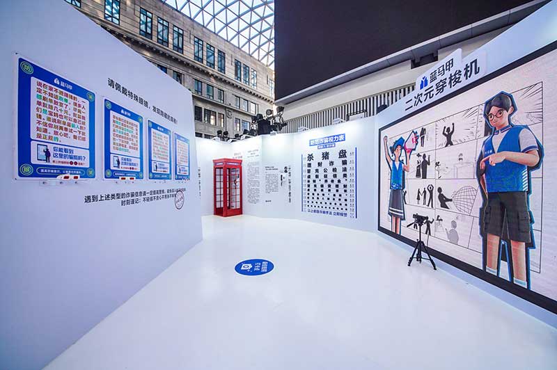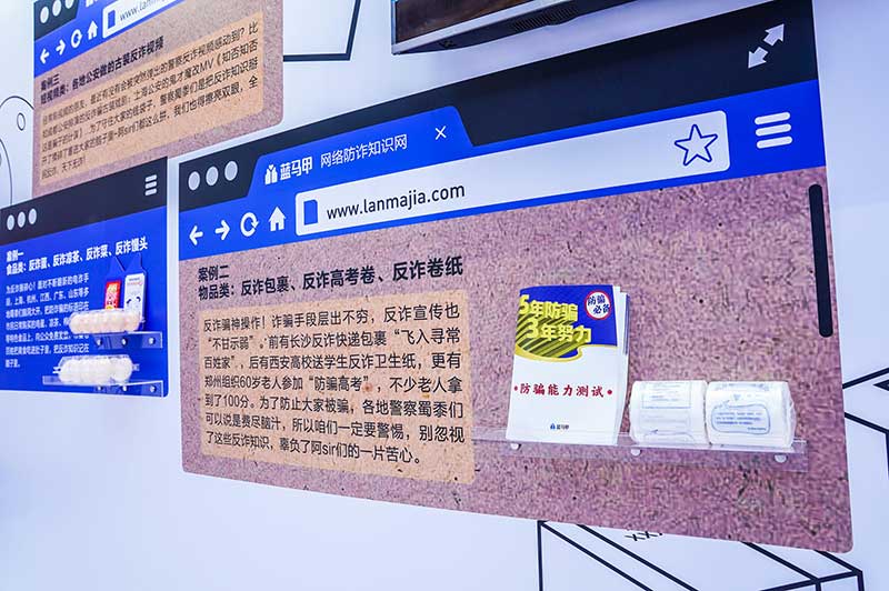 “当”案馆——上海沉浸式助老防骗展在上海外滩中央广场举办。“当”案馆的“当”实为上当的“当”,展览汇集了让人容易上当的诈骗案例,为观众一一揭开骗局的真实面目。牛皮纸般的外墙围起展厅,让这场展览宛如一个大型的“档案盒”,同时也呼应了展览的名称。进入“当”案馆后,展厅划分为“反诈宣传区”和“数字助老体验区”两大板块。互动性和真实感是“反诈宣传区”的两大重要特征。有别于传统的科普讲座,此次沉浸式助老反诈防骗展是通过情景模拟常见的诈骗案例,让观众在颇有代入感的体验中认识骗局、看穿骗局,从而提高防范意识与反诈能力。