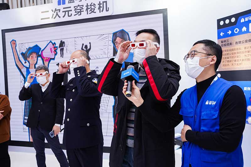 在反诈案例集锦区,结合常见电信网络诈骗和上海警方打击的典型案例,警醒民众牢牢绷紧防骗反诈这根弦。观众还能戴上特殊眼镜,看穿话术外衣下的骗局意图,提高防骗意识,让骗局无所遁形。