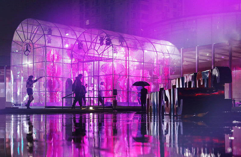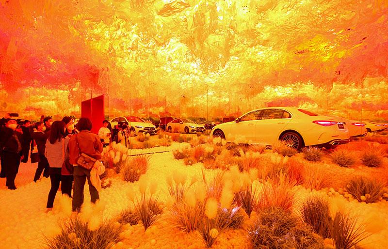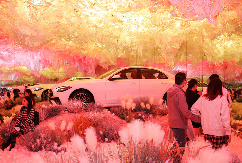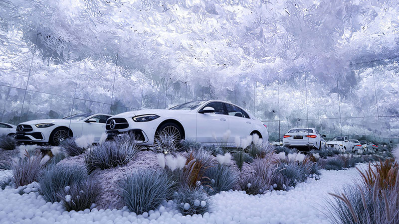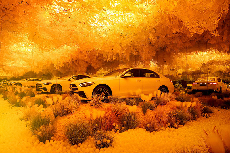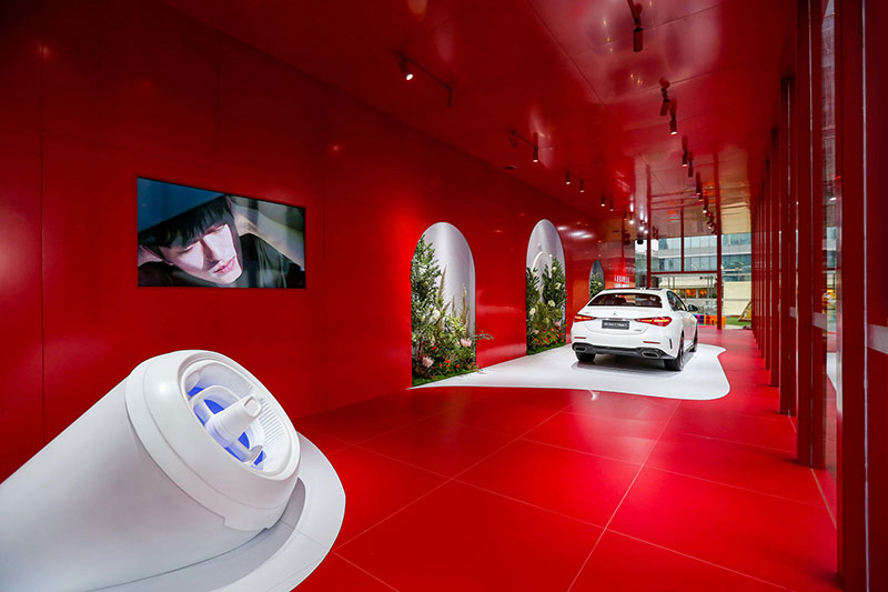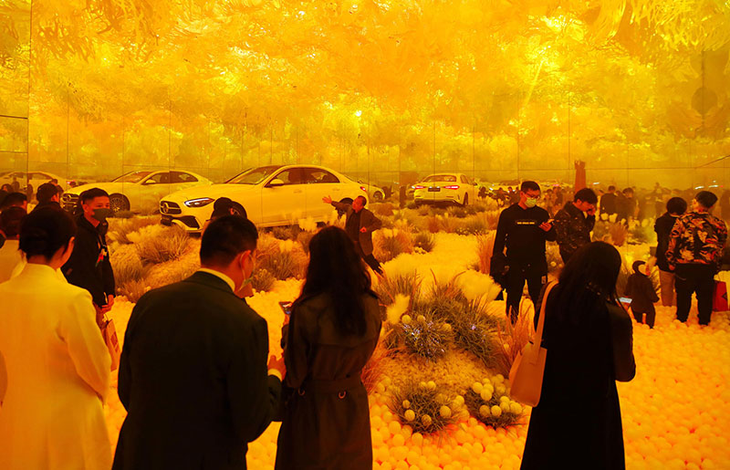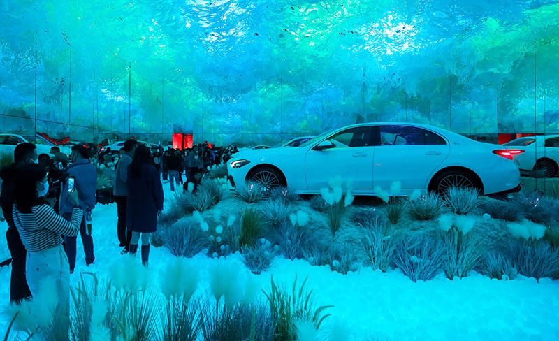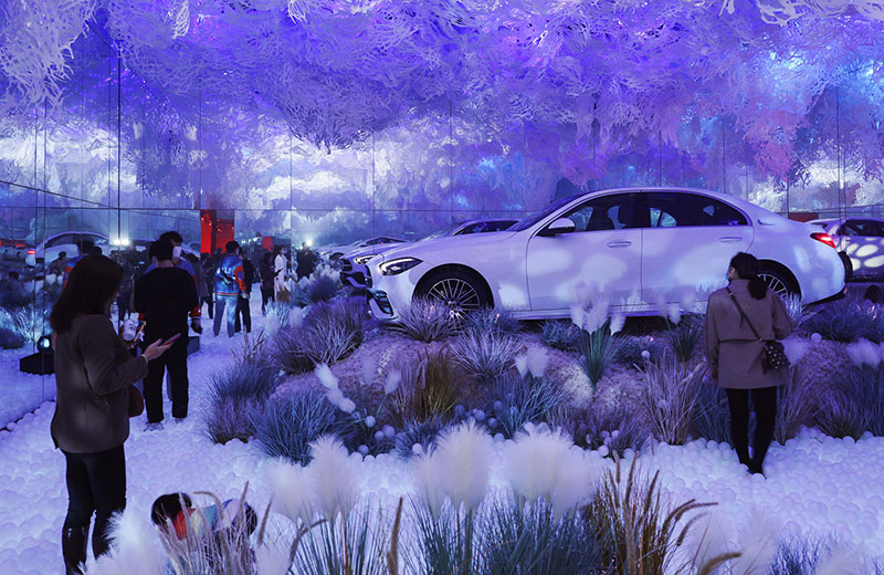其中的「舒适·造境」艺术装置,仿佛置身于梦幻般的童话世界。晦明变换的灯光、轩敞别致的布局,与融入景中的奔驰新C级,相得映彰。无论看展抑或看车,身处其中,你总能找到舒展身心的一隅。