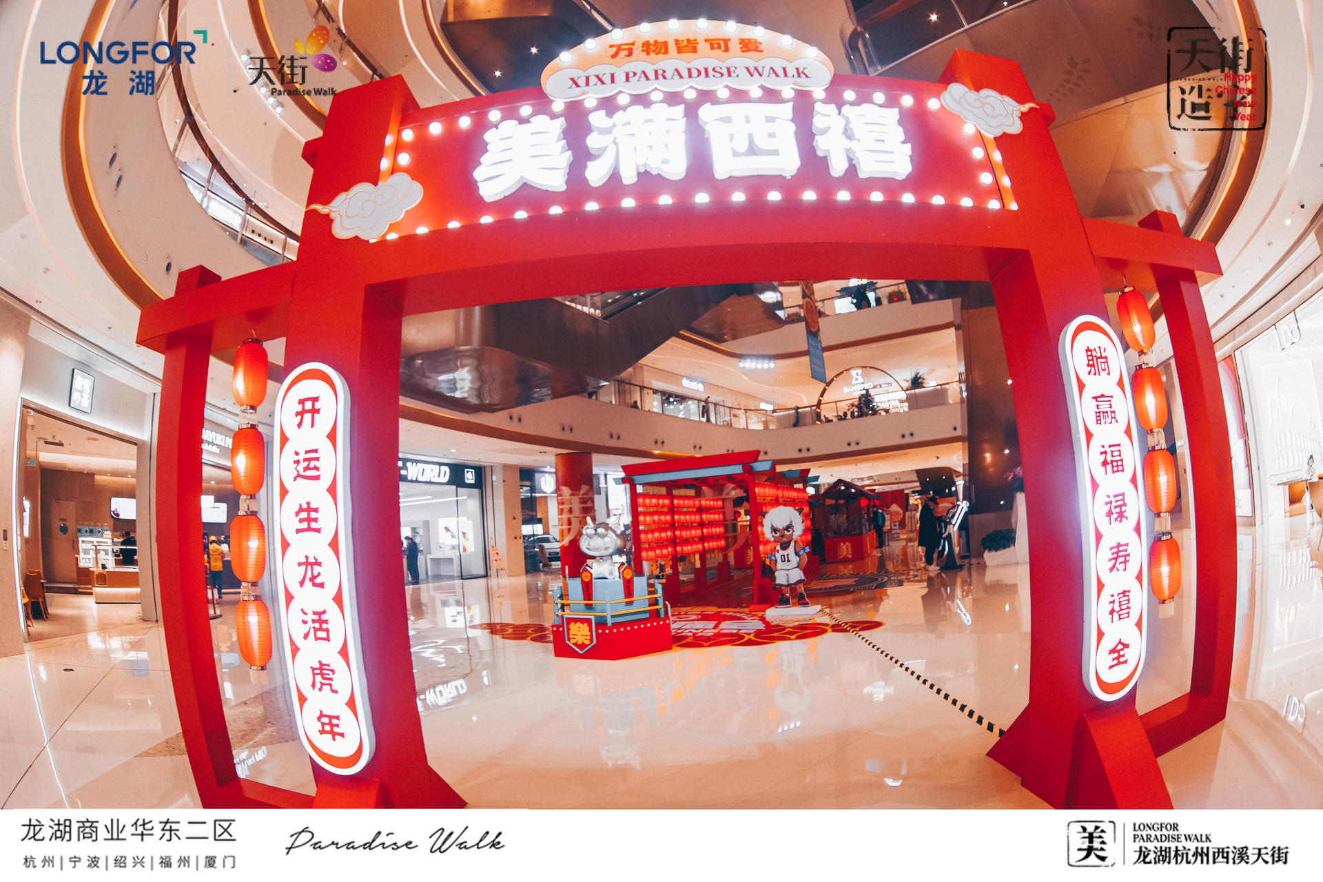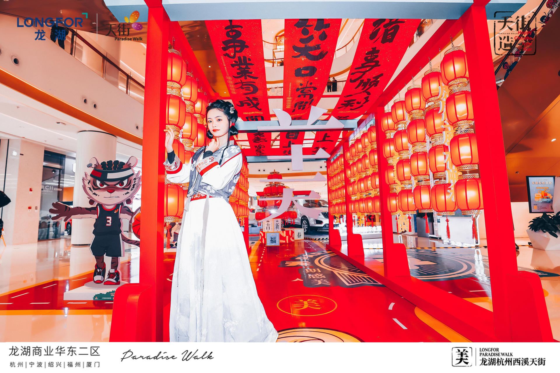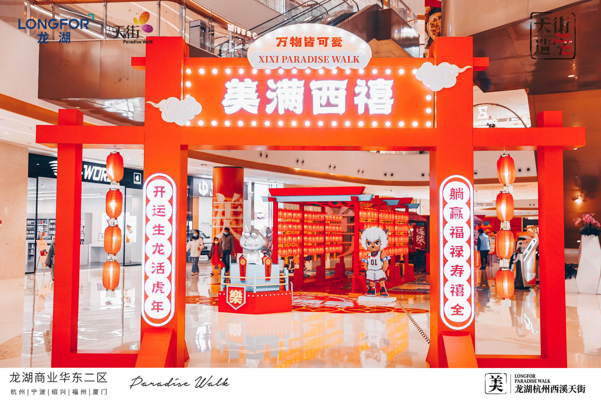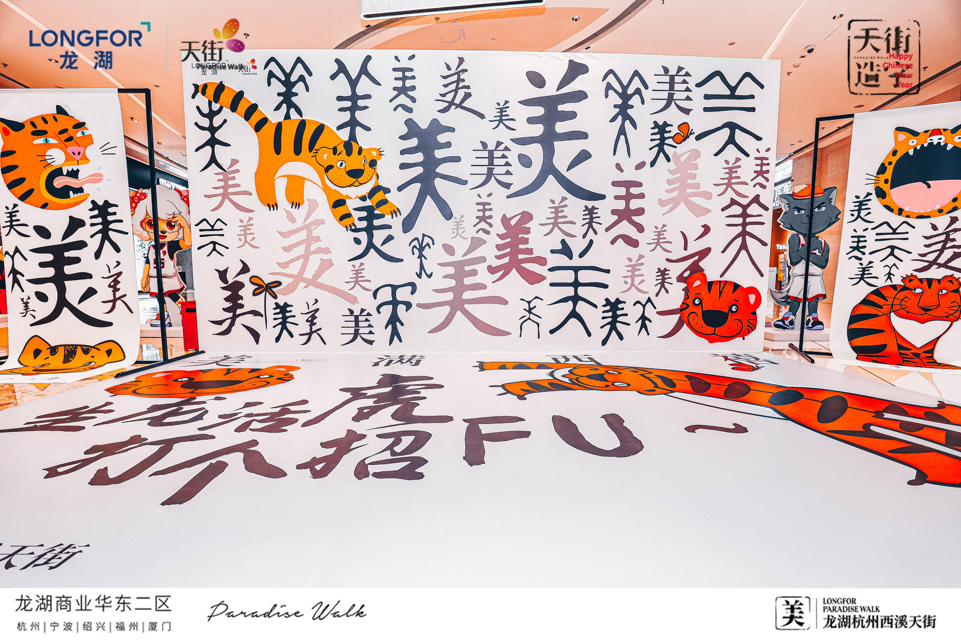 西溪天街天街造字,美满西禧主题展,一场迎新纳福的庙会,将承载了中华文化的中国汉字与传统年俗庙会相结合,过zui地道、zui潮流的中国年!新年必备的灯笼、老虎、中华汉字等元素,以红黄为主色系,渲染出热闹的气氛,大大的“美”字点题西溪年度主题字,新年的氛围感整起来。