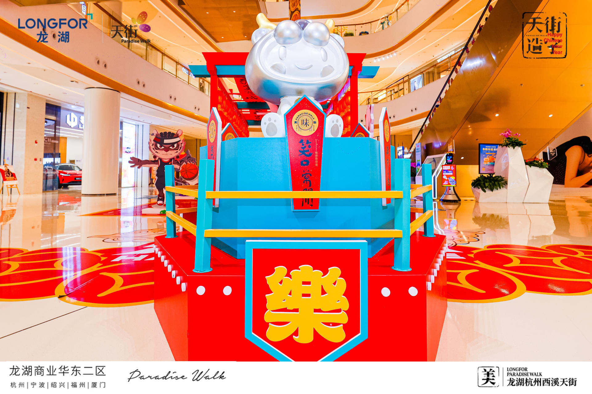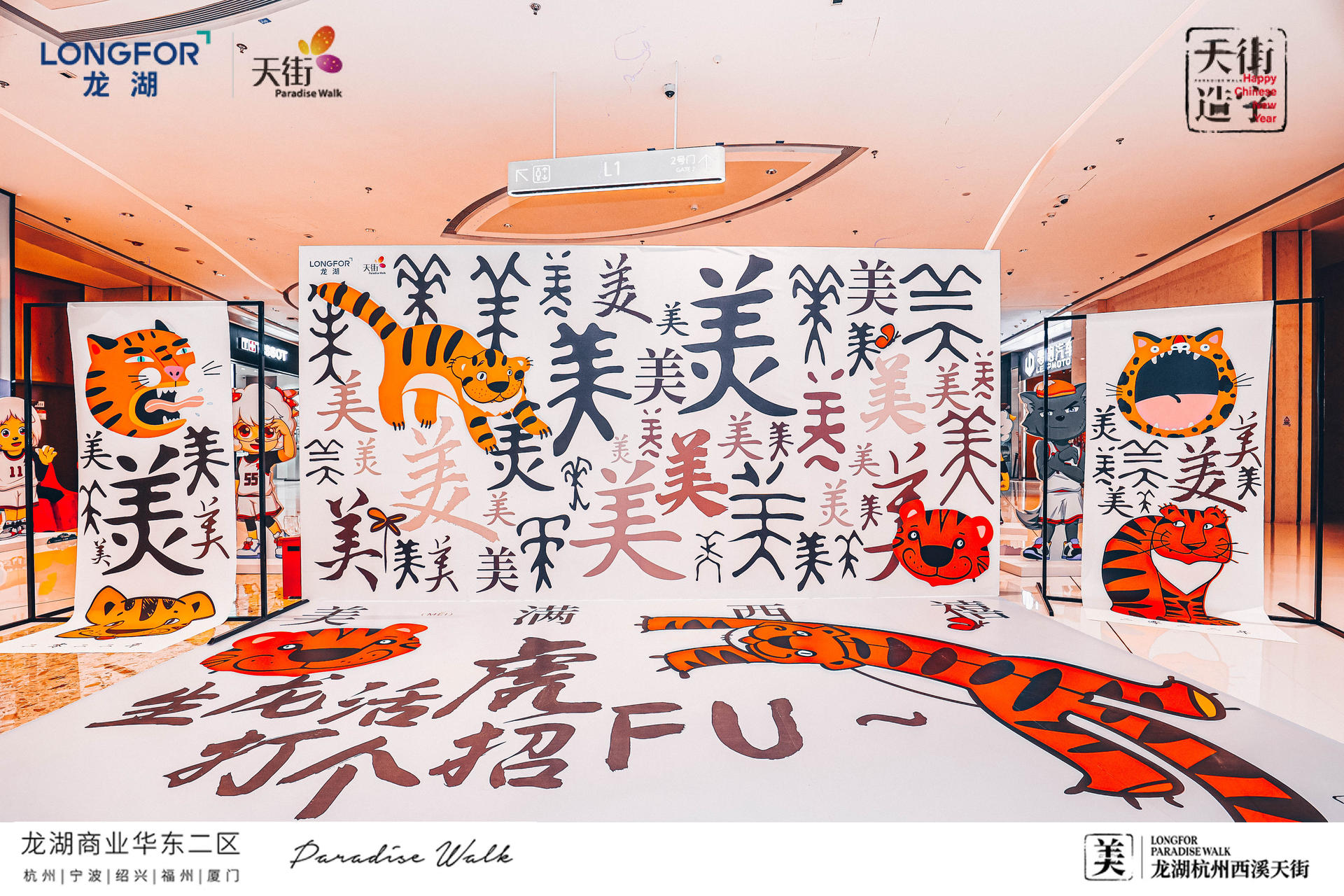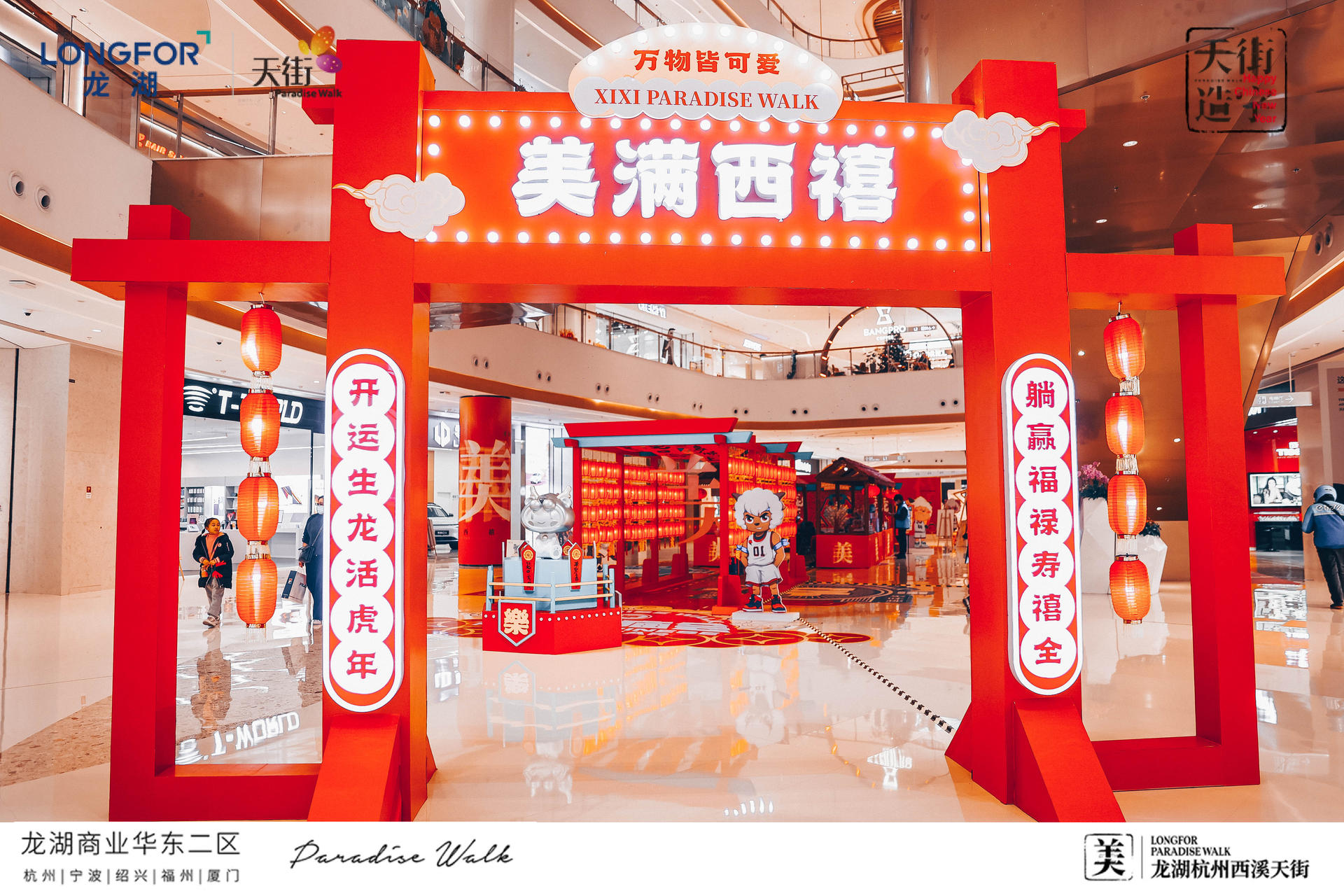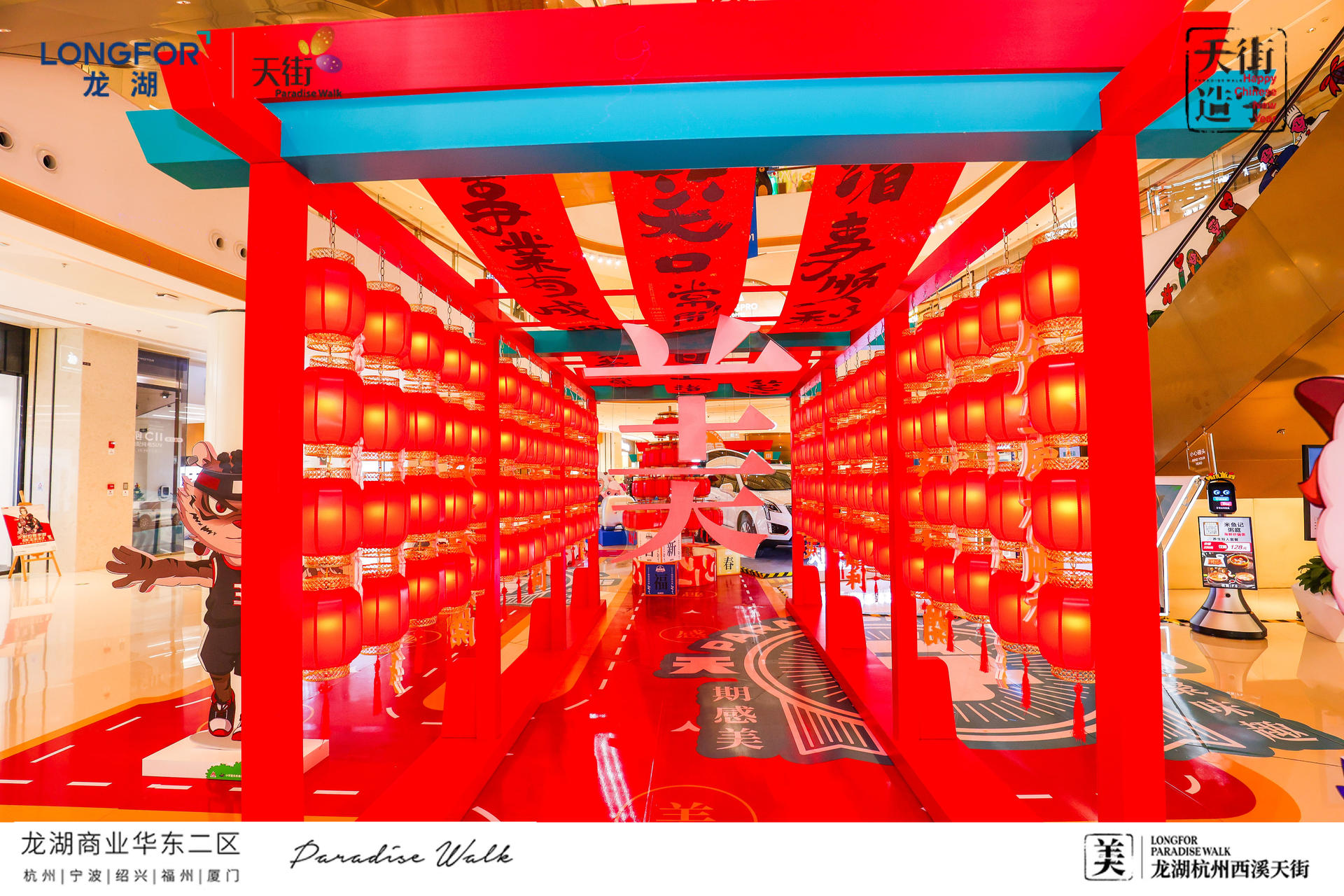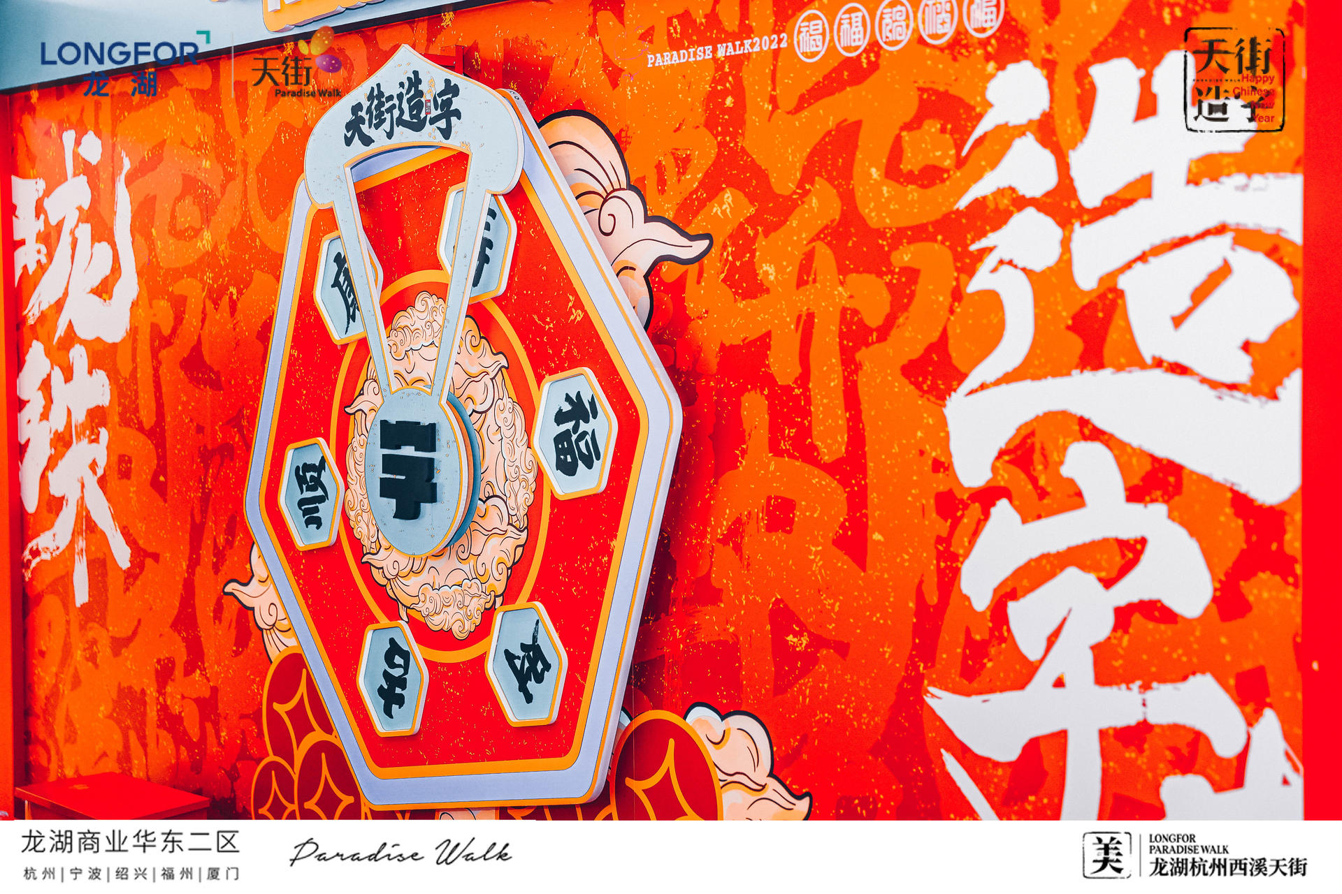 西溪天街天街造字,美满西禧主题展,一场迎新纳福的庙会,将承载了中华文化的中国汉字与传统年俗庙会相结合,过zui地道、zui潮流的中国年!新年必备的灯笼、老虎、中华汉字等元素,以红黄为主色系,渲染出热闹的气氛,大大的“美”字点题西溪年度主题字,新年的氛围感整起来。