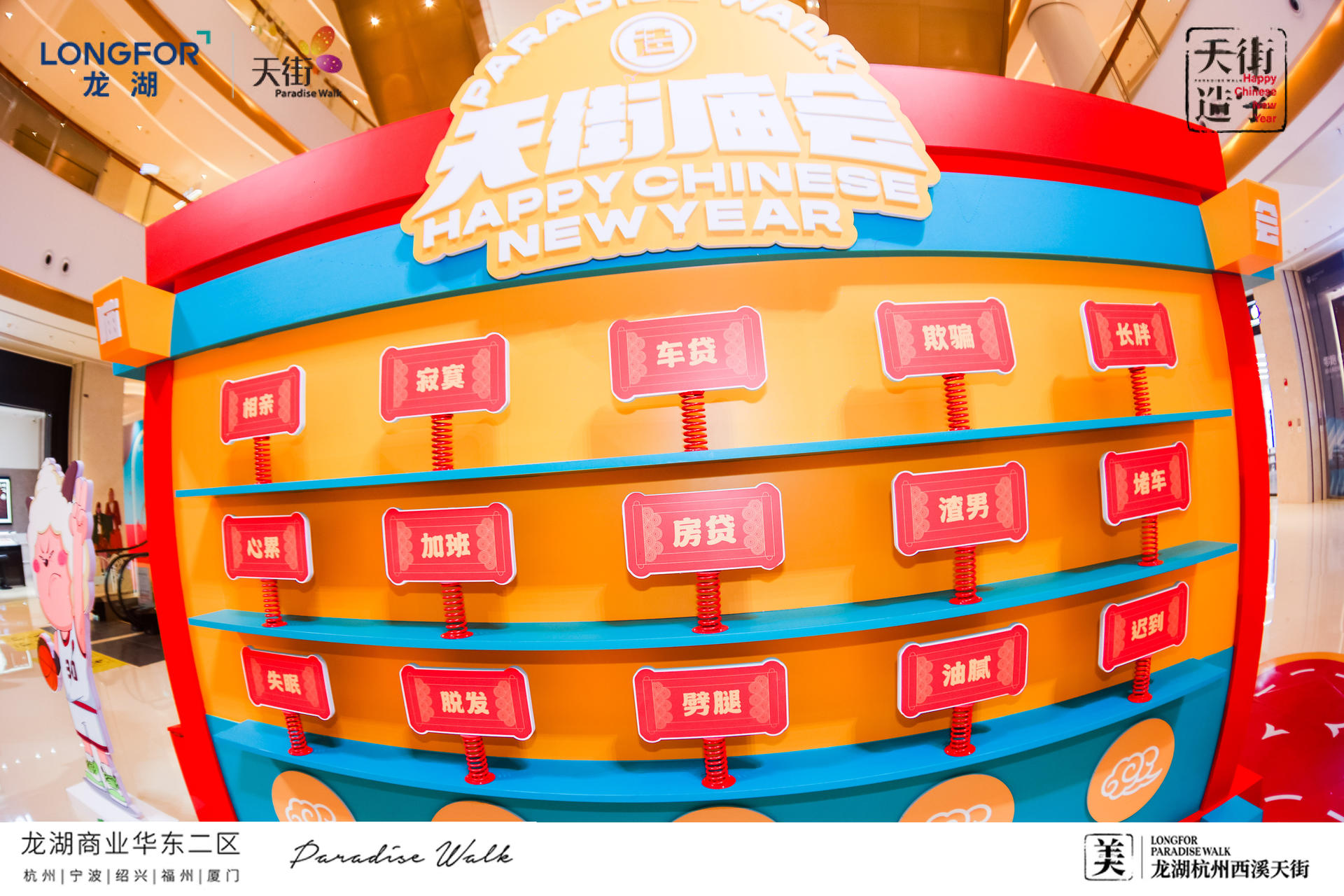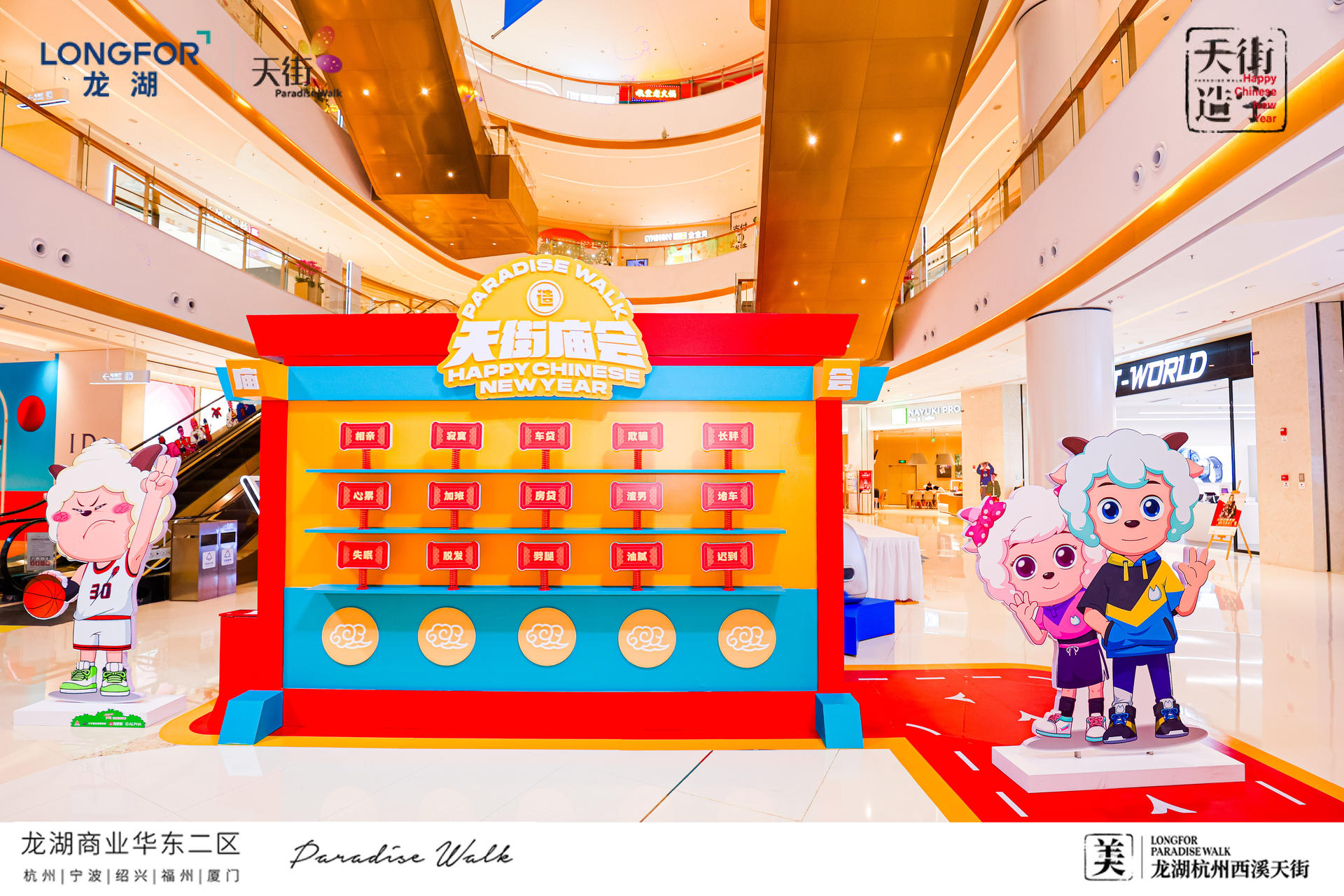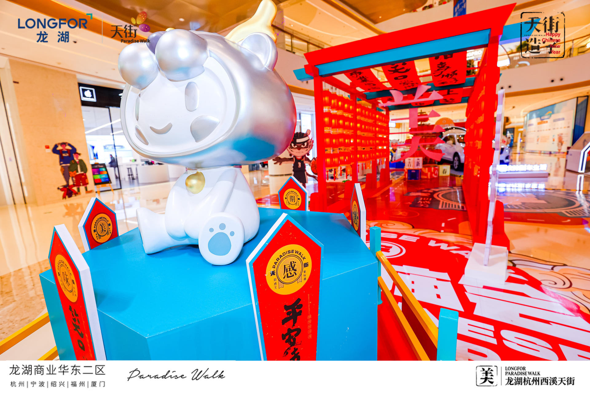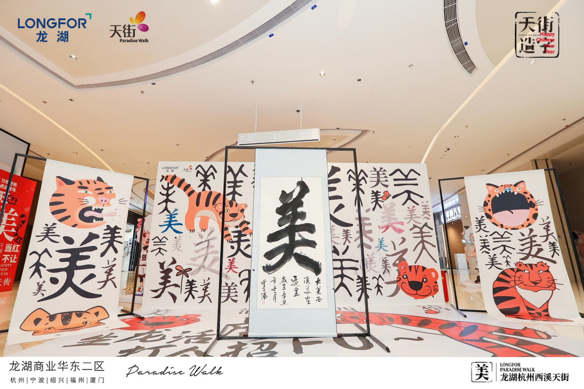 西溪天街天街造字,美满西禧主题展,一场迎新纳福的庙会,将承载了中华文化的中国汉字与传统年俗庙会相结合,过zui地道、zui潮流的中国年!新年必备的灯笼、老虎、中华汉字等元素,以红黄为主色系,渲染出热闹的气氛,大大的“美”字点题西溪年度主题字,新年的氛围感整起来。