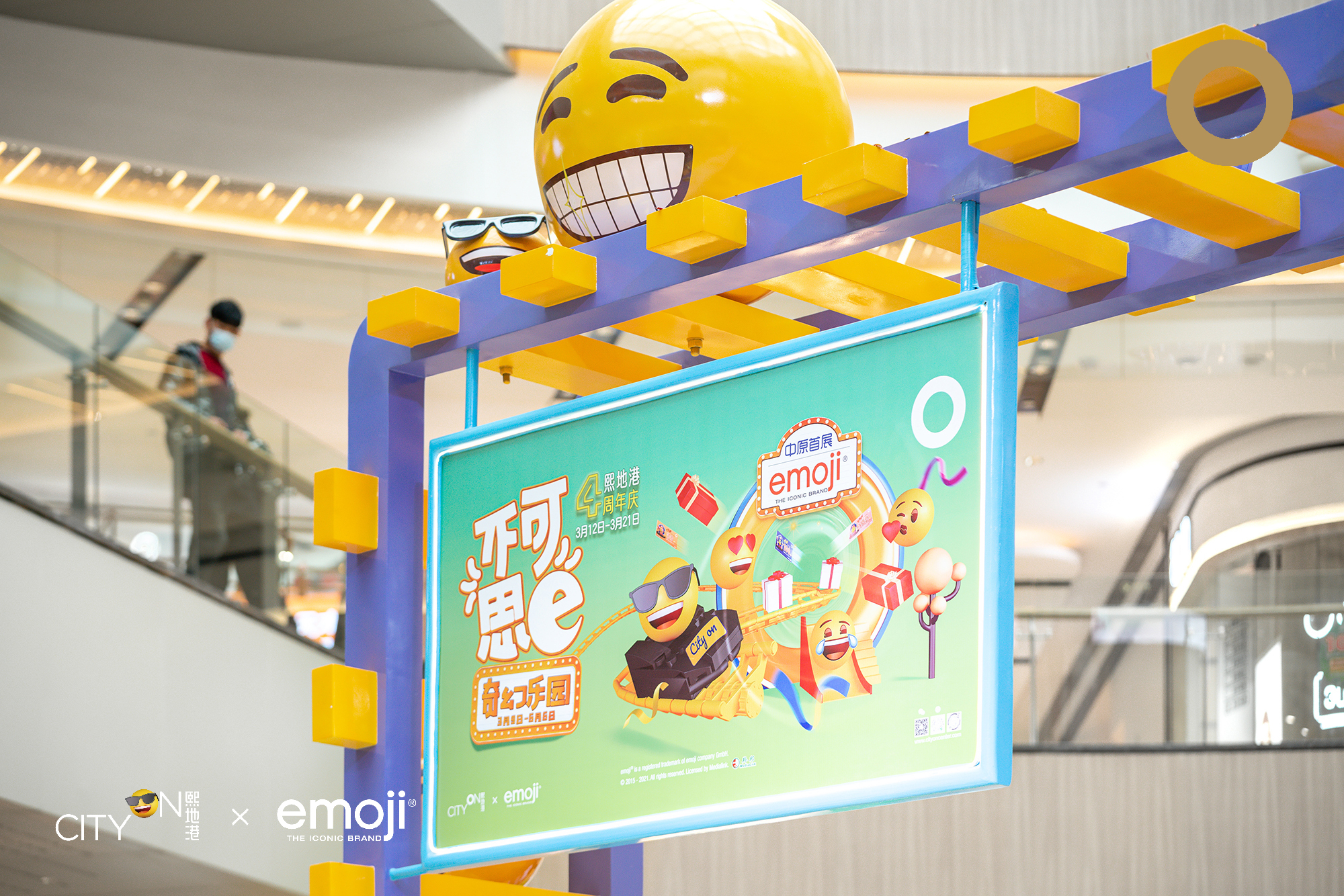 熙地港以emoji®表情包为元素,将购物中心打造成多维度“情绪空间”。场外各大门入口处、场内各休息区及走廊,均能看到emoji®搞怪雀跃的身影。本次emoji®主题特展更是暗藏5大趣味互动体验区。