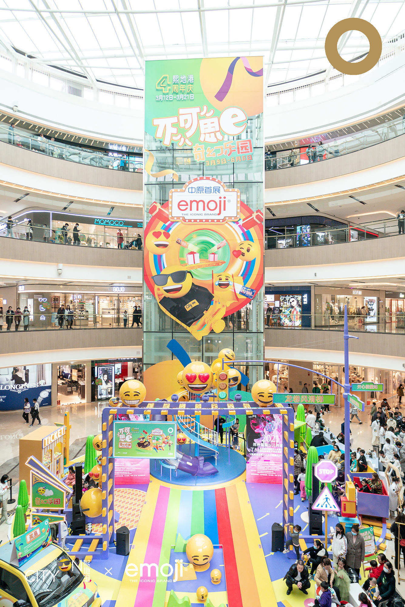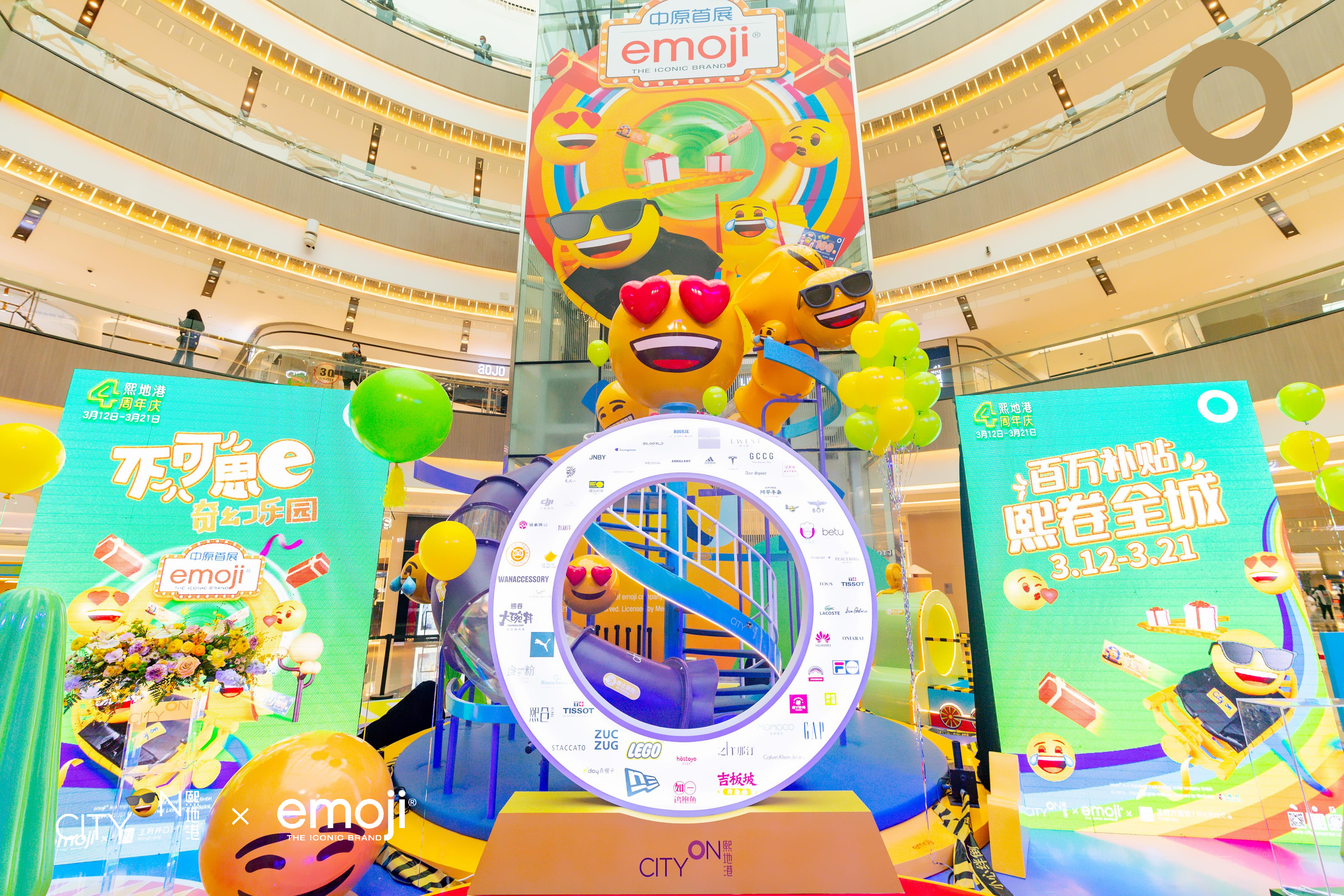 以【不可思e】为主题的CityOn熙地港(郑州)购物中心4周年狂欢庆典正式拉开帷幕。作为表情界的“当家花旦”谁能抵抗emoji®的魔性魅力呢!随处可见超可爱的emoji®元素,孩子看见后就径直走向“游乐场”,人气很高,孩子特别喜欢玩,这里不仅吸引了很多小宝宝在这里玩耍,还有很多“大龄青年”也前来打卡。