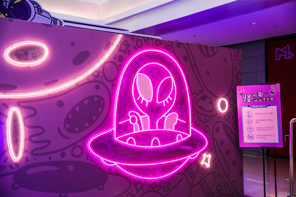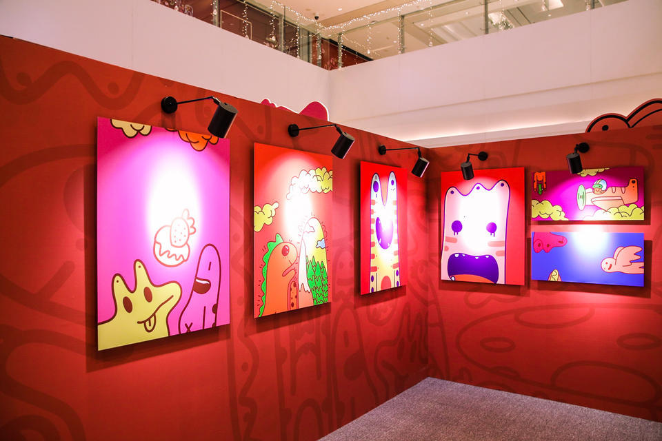 新锐艺术家插画艺术家王海森打造的「怪可爱插画艺术展」带着“奇怪的朋友们”首次登陆M+,通过插画、涂鸦、灯光等装置,打造了沉浸式梦幻空间。