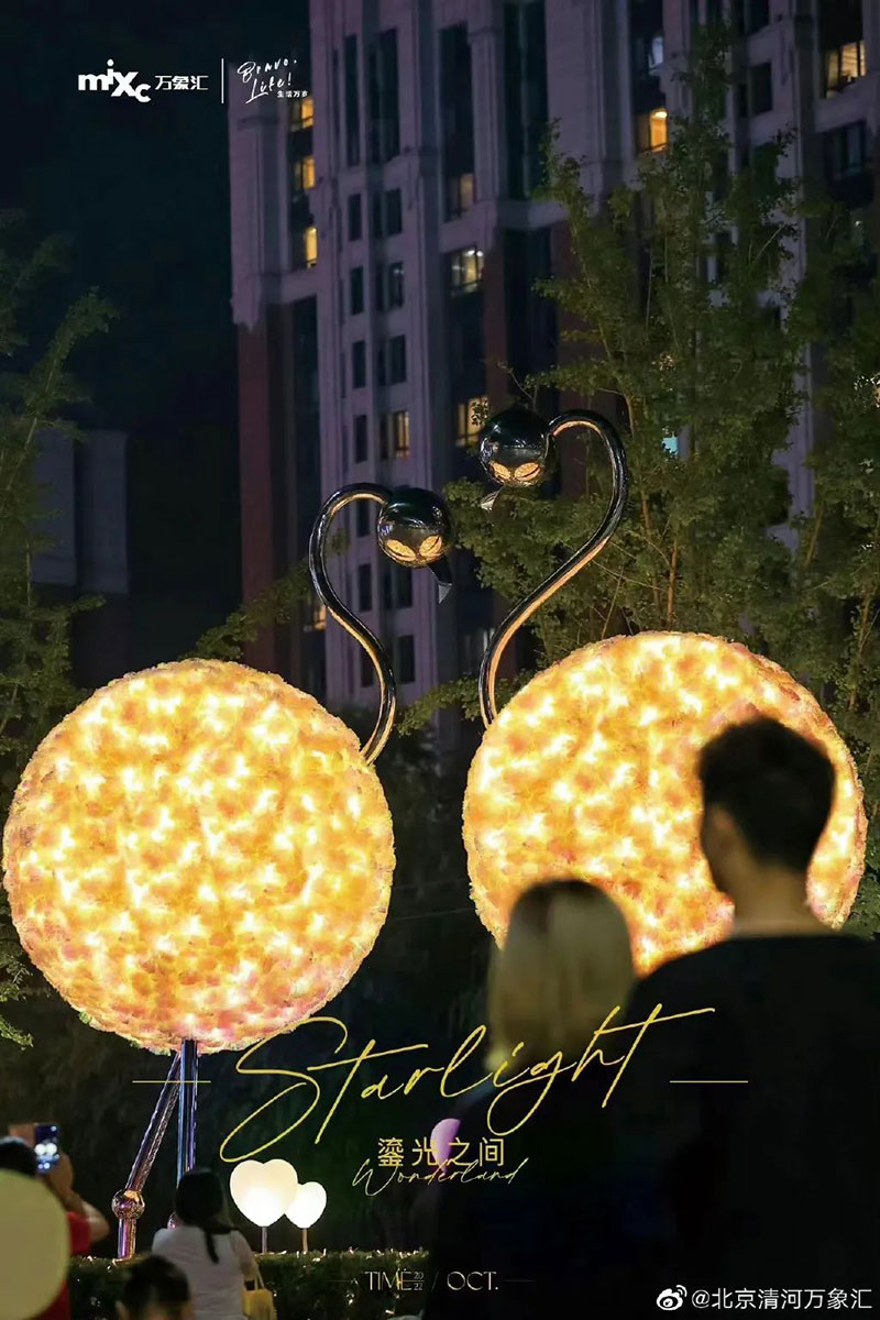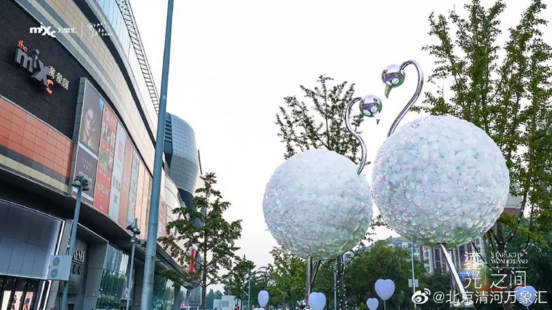 北京清河万象汇东区&西区户外灯光亮化艺术装置亮相,超2000平米极致浪漫灯光氛围,6处互动式光影装置呈现。点点星光伴随秋日微风,市民可携家人共同捕捉夜晚的精彩瞬间。
