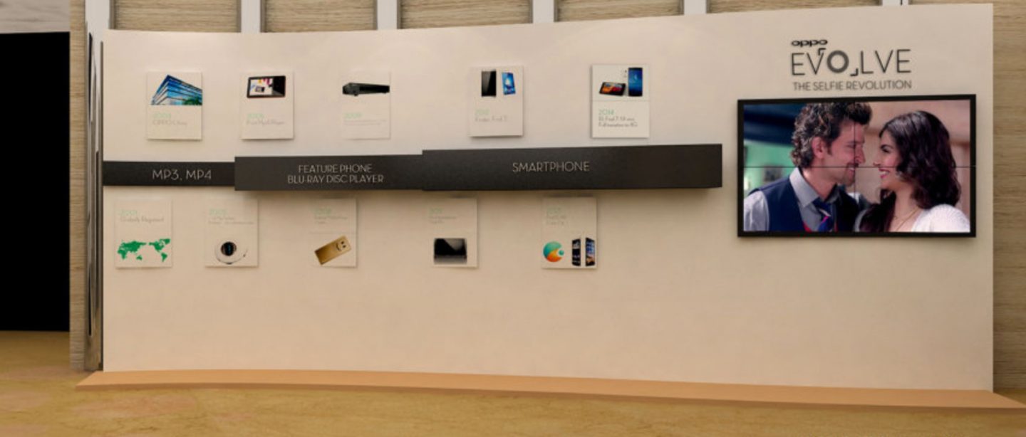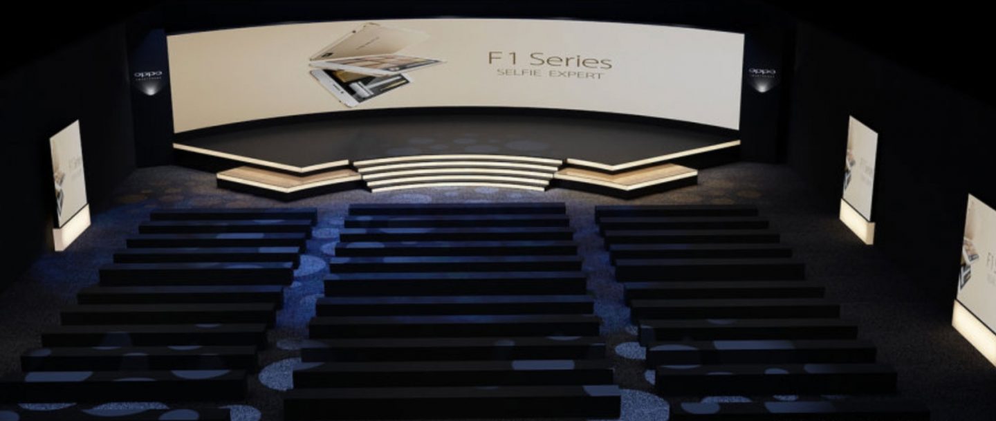 OPPO在海外开辟了新的产品线F系列,并在海外推出了首款机型OPPO F1,主打自拍,号称“自拍专家”,其一体式金属机身让OPPO手机更有质感。如同OPPO手机的金属机身一样,此次发布会的舞台也显得干净利落有层次感,金属灯光配色也呼应了手机金属机身属性,产品展示区位置也是使用金属色系搭配,边角的处理也显得锋利睿智,无不体现金属属性。