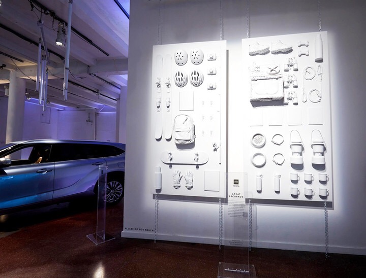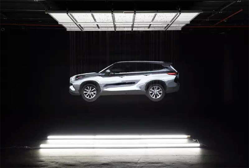 丰田与雕塑家迈克尔.墨菲合作,为其2020年款汉兰达车型的首次亮相开了个玩笑。墨菲设计了一个新车型的的3D错觉悬挂装置艺术作品。墨菲在他位于布鲁克林的工作室里用了两个多月的时间,手工绘制了200张分解图纸,然后巧妙地将这些纸拼装起来,让它们看起来像是漂浮在空中。该装置在贾维茨中心附近展示,其图像还被投影到纽约的建筑物和广告牌上。