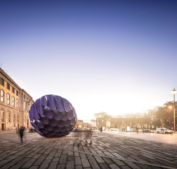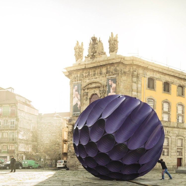 Eclipse 装置是波尔图历史中心被列为联合国教科文组织世界遗产的20周年庆活动中的一个重要标志物。作为一个临时装置,Eclipse是由FAHR 021.3 建筑工作室设计的一个项目,这个球形物体将城市广场的中心暂时的转到它身上。来自FAHR 021.3 建筑工作室的Filipa Frois Almeida和Hugo Reis介绍说:“自从该装置被放置到这个公共场所以来,很好的促进了与人们之间的互动。Eclipse 被放置在一个偏离中心的位置,这样会让路人从不同的角度重新审视Amor de Perdição广场。它打破了这里原有的安静环境,采用了一个大胆的手法和色彩。 这种设计方式让该装置和其周围环境之间建立了一种大胆的关系,形成了一个出人意料的对比模式,同时让行人停下脚步从另一个角度来欣赏。