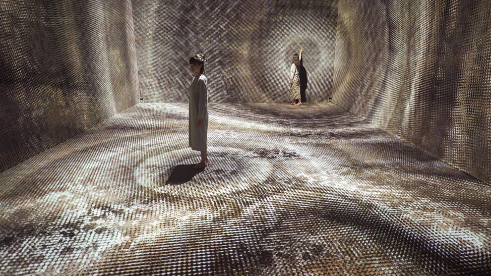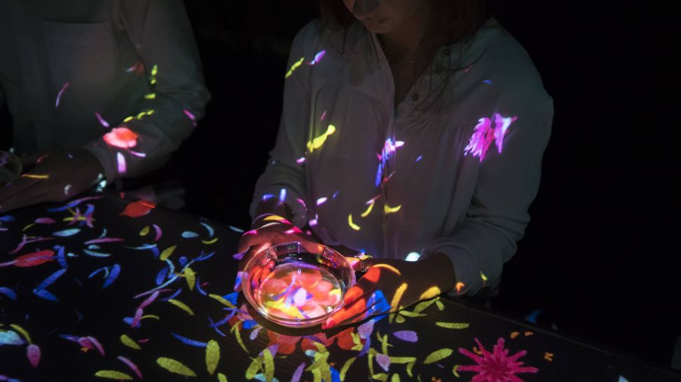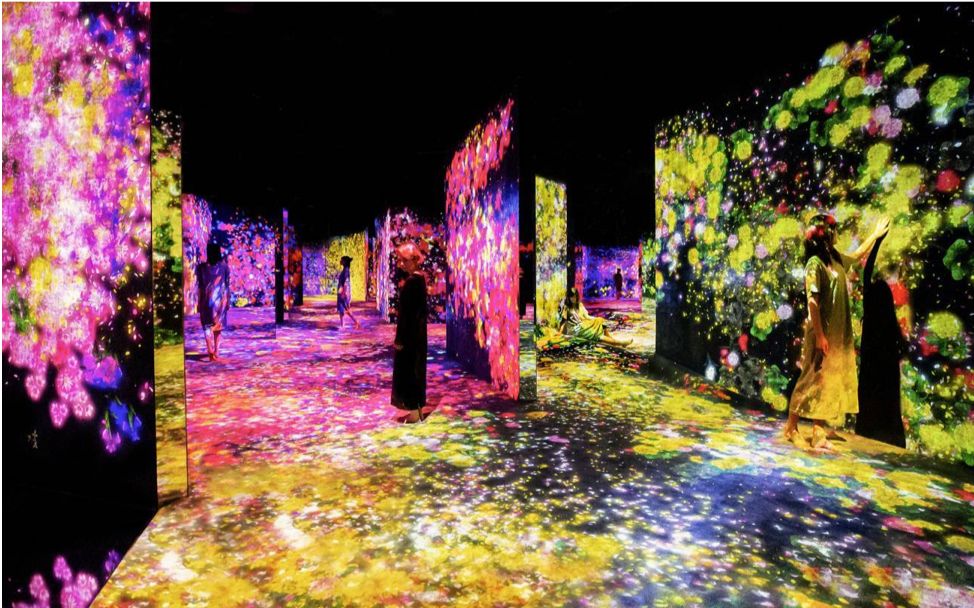 “teamLab Borderless”是根据teamLab艺术团队的无边界艺术作品群所打造的没有地图的美术馆。所谓“没有边界的艺术”,即艺术作品不受展厅空间的限制,与其他作品交流、相互影响,打破作品与作品之间的边界并相互融合。这些艺术作品群相互交织、叠加所产生的无边界的连续世界,便是“teamLab Borderless”。