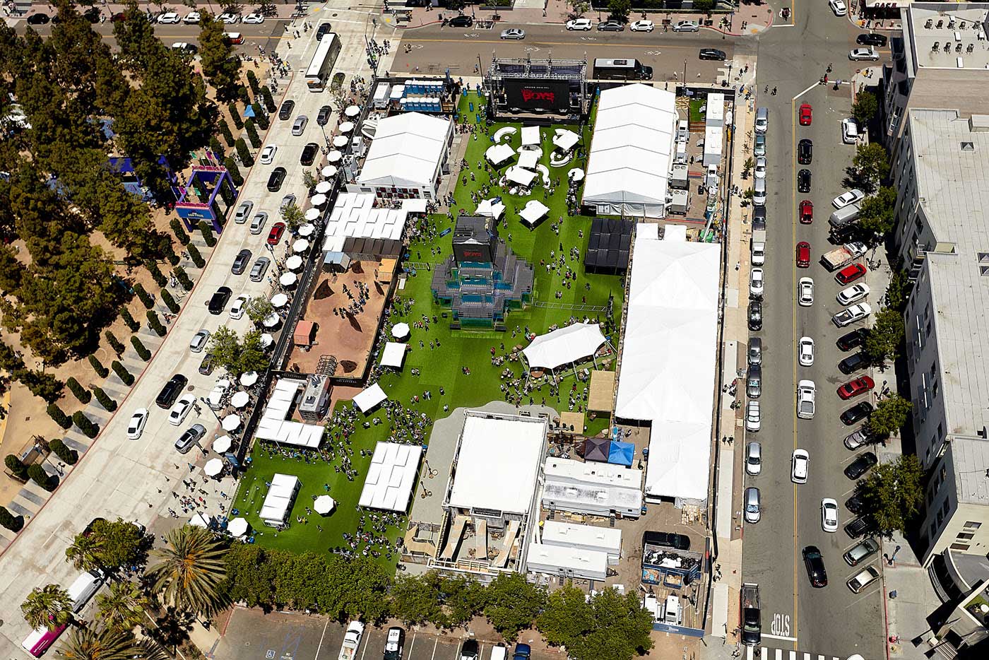 我们的塔高40英尺,是圣地亚哥市中心周围的地标性建筑,吸引了我们的注意力。 该塔白天进行特技表演,晚上进行DJ表演,其上部LED显示屏的各个侧面都装有电视。 我们使用Mod Truss构建框架,并在所有侧面应用二向色丙烯酸板。 内部结构衬有DMX控制的LED灯条,周围的扬声器在整个过程中发送音频。