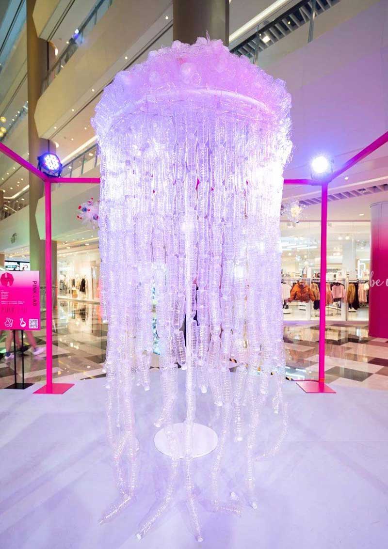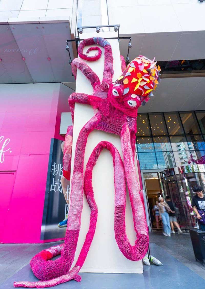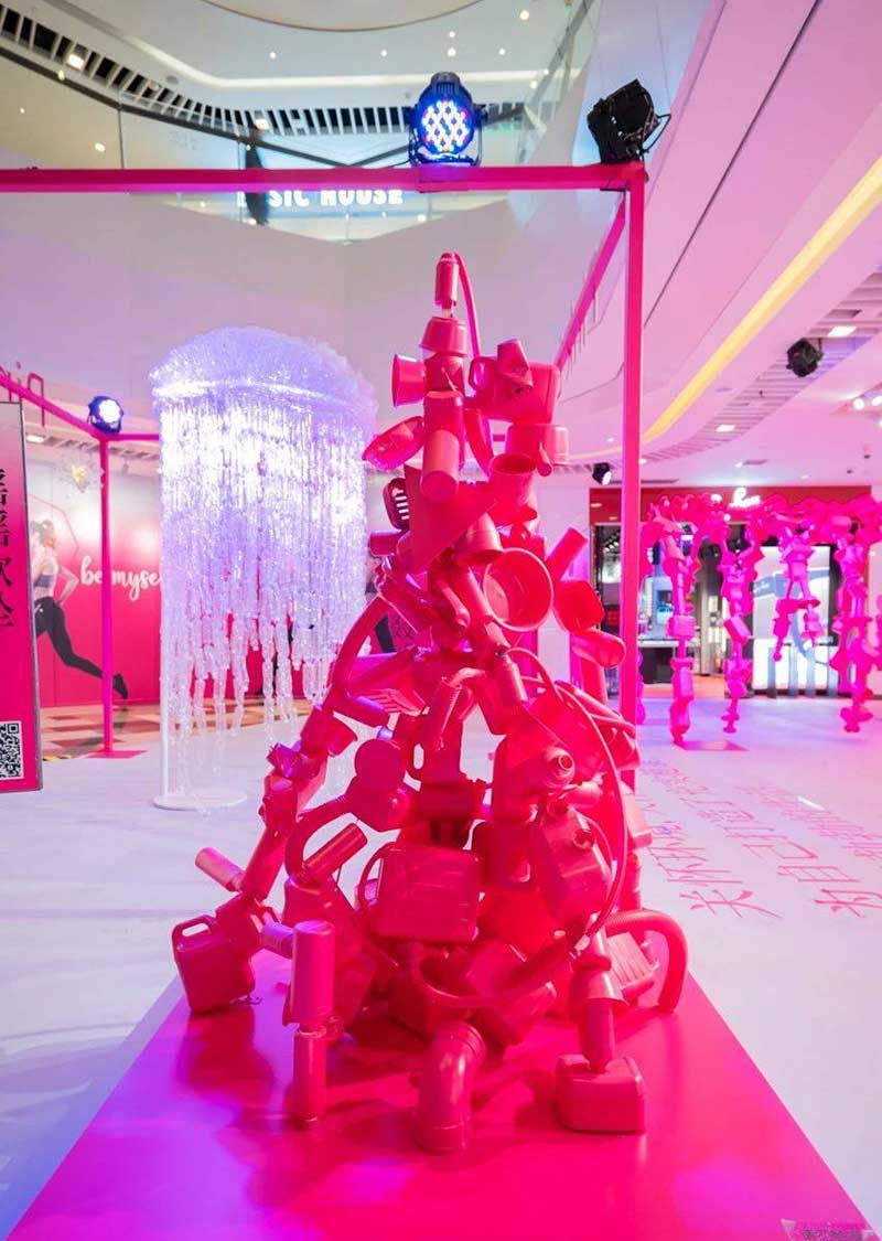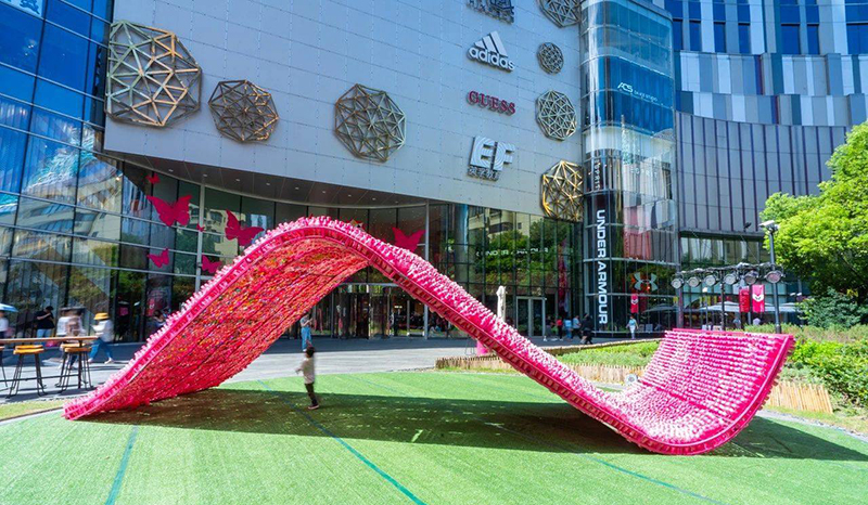 晶品购物中心迎来了TA成立四周年,并开设了一个名为“不让地球流浪”的艺术展览。这场以“可持续发展成为我”为主题的艺术展览,从魔都的时尚灵感中汲取灵感,并以日常生活中的各种废物为原材料,构造出独特而新颖的艺术品!一旦您进入此晶品艺术展的现场,就会看到一个巨大的“ S”型玫红色装置,并立即锁定您的眼睛!排列在外面草坪上的美丽蝴蝶和水晶的外观将整个环境装饰成一个梦幻的童话仙境!