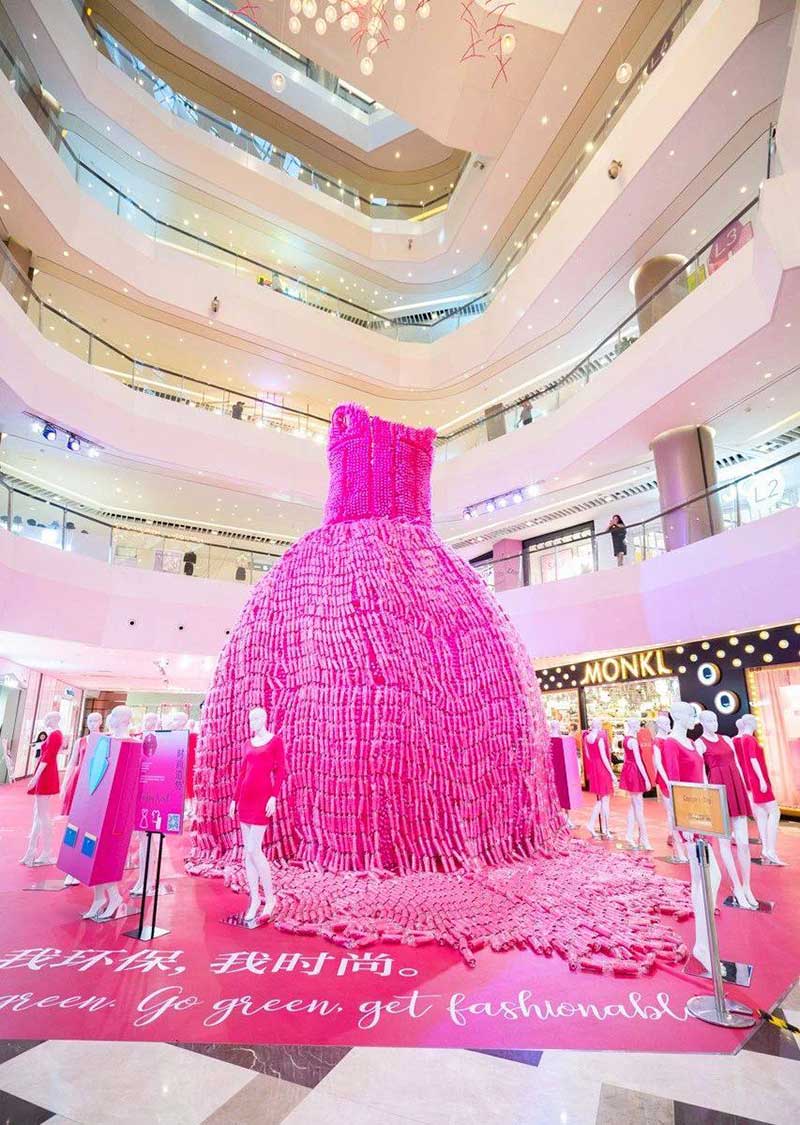 如果您说这两个设备在该领域只是在提高环保意识,那么当您正式进入晶品,超过30,000个塑料瓶红色连衣裙时,您会发现原始的环保是如此艺术!占据整个位置C的玫红色连衣裙几乎吸引了每一个进入晶品,明亮的色彩并紧紧抓住每个人的眼睛的访客,似乎在提醒人们,一旦只专注于日常,这件衣服很体面,现在我们应该付出更多注意这个体面的故事背后。如果您有兴趣,还可以进入礼服的内部,并使用沉浸式体验更深地感受到艺术品的震撼!为了彰显这种环保理念,晶品使用商场活动留下的模型,穿上可回收的废纸板箱来制作利乐包装,并穿上可回收的旧衣服,散布在大衣服上,就像精灵以独特的方式,为了可持续发展。