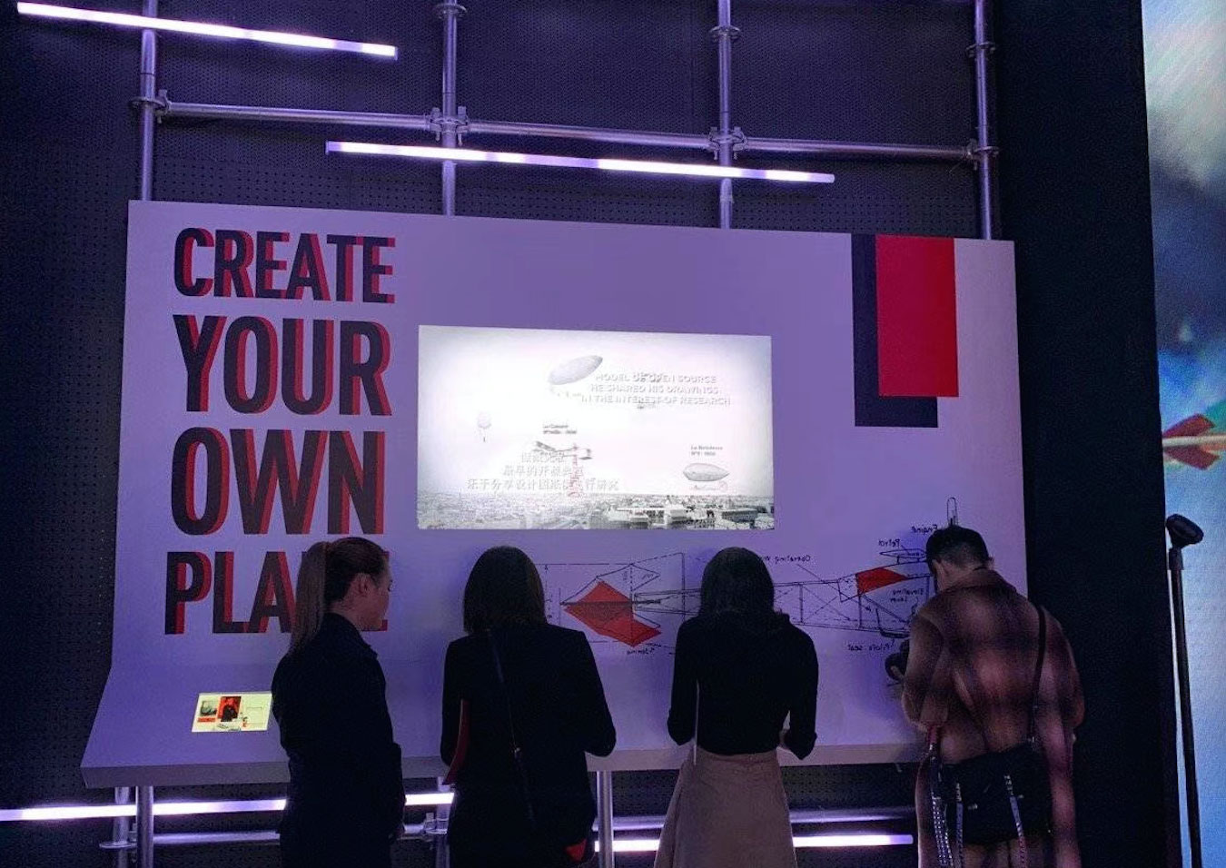 Cartier卡地亚山度士腕表体验展,以前沿的数字化科技打造震撼的 “时空隧道”,还原20世纪巴黎及21世纪上海场景,礼赞以先锋冒险家阿尔伯特·山度士·杜蒙先生为代表的名士们锲而不舍、永不止步并忠于内心梦想的精神。此次展览策划设计了一个高约12米的埃菲尔铁塔,通过AR的视角,飞机将围绕着铁塔环绕飞翔,伴随虚拟成像的巴黎全景,生动再现山度士·杜蒙先生探索未知的不羁旅程和凌云壮志。