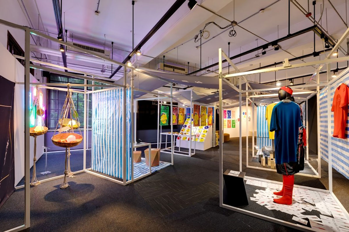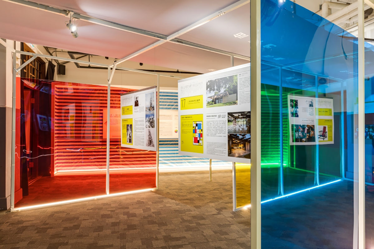 展览分为“基础设计课_看见包浩斯的初心”、“包浩斯x 设计师_ 从当代设计破解关键DNA”、“包浩斯在亚洲”、“包浩斯夜市_原来包浩斯可以这么台!”4大展区,从深入的理论介绍,到古今界对话的设计师结合当代案例,精心呈现各种方面,让人们逐渐了解百年历史的包浩斯。蓝白条纹展览中随处可见的帆布和塑料板是普通展览的视觉元素和包浩斯语言的转变。