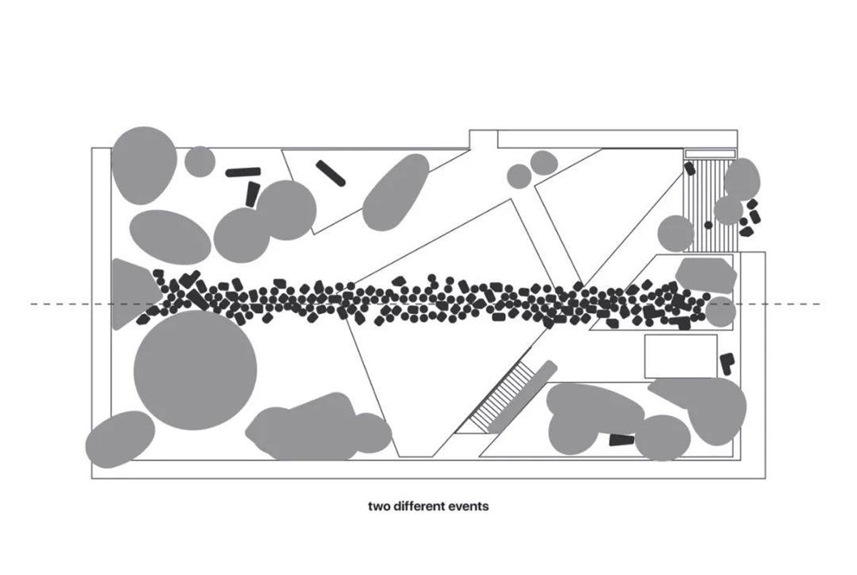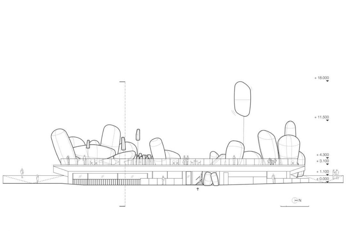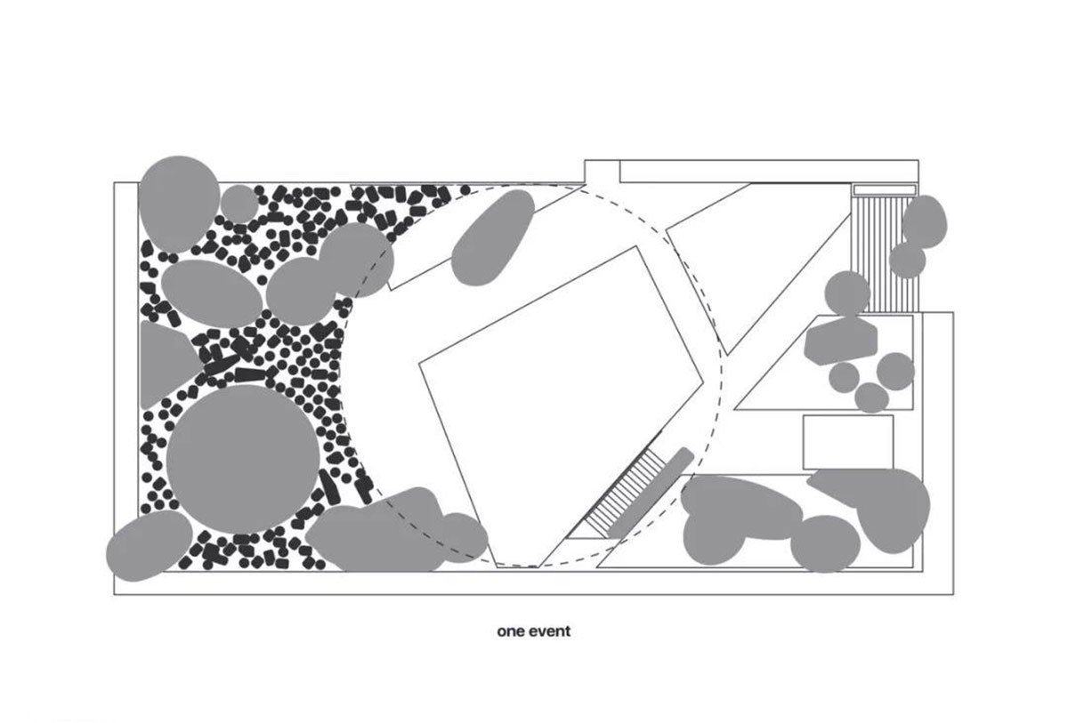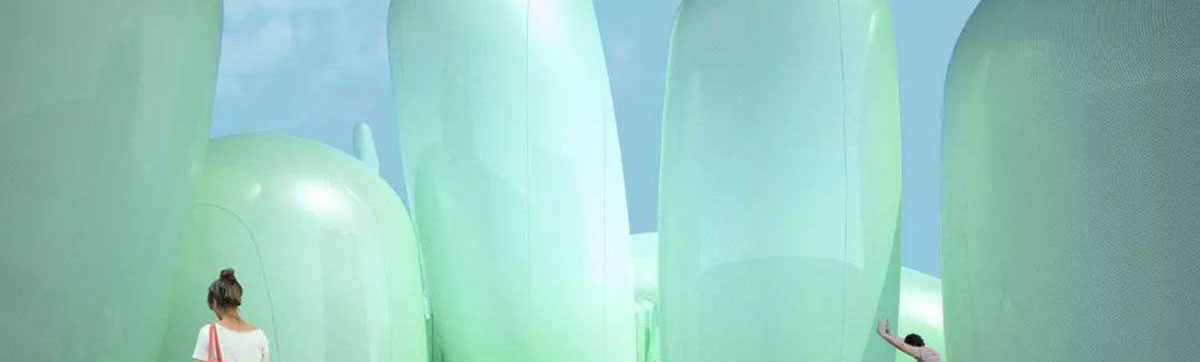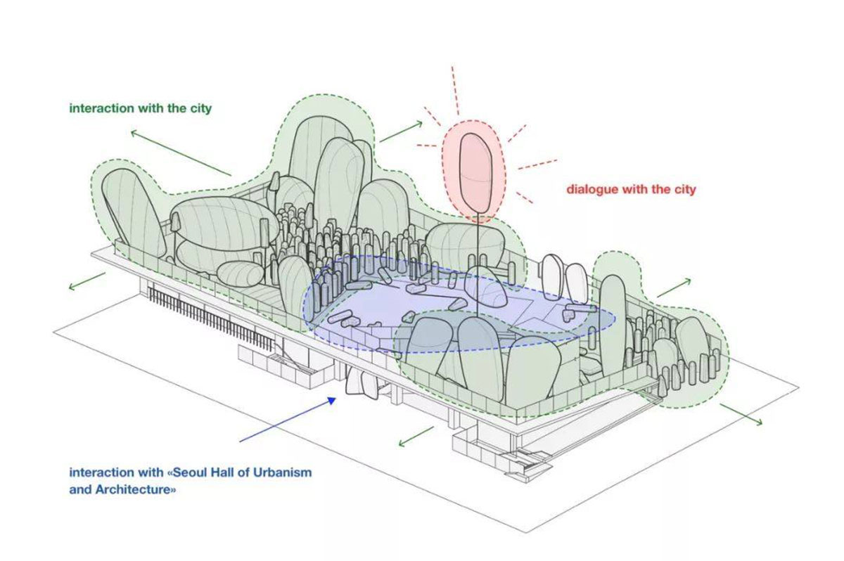 整个装置使用ETFE材料,充气,轻便可移动,并被设想为传统韩国花园的现代诠释。其赋予韩国花园独特的个性,探索并重新定义它,颜色和形状也让人想起植物,石头和山丘,构成了韩国园林和谐理论的基础。