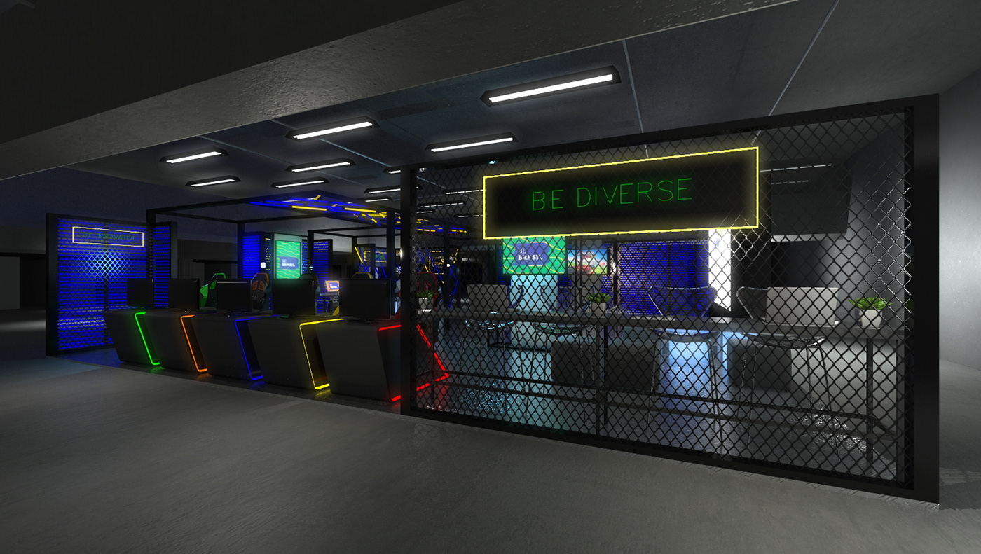 ApexBrasil此次的展位设计采用开放式的、工业风的风格设计,整个展位设计空间感更足,视野也更空旷,配上多彩的霓虹灯,工业风中又显得更酷炫和动感。