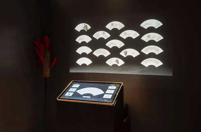 画扇面:通过交互装置自由组合画面和落款,拖选并手动收缩画面元素,创作独属于自己的扇面。扇面素材均来源于故宫博物院院藏,为唐寅、陈继儒、金农等人所作。他们因种种原因并未走上仕途,但凭借才能走出属于自己的人生之路,成为一代艺术大家。观者根据引导在创作扇面的同时,可以了解到他们的生平和曾经的科考经历。