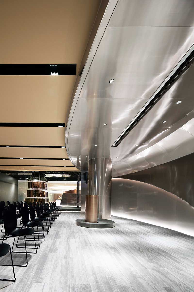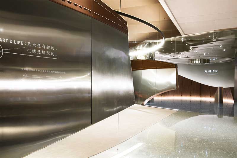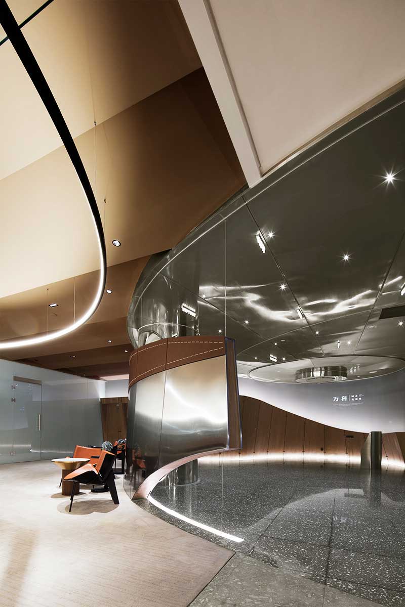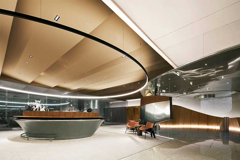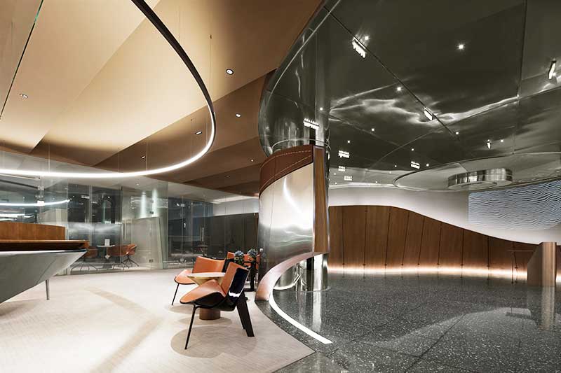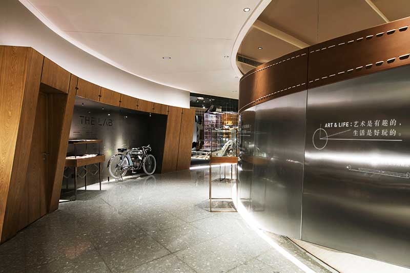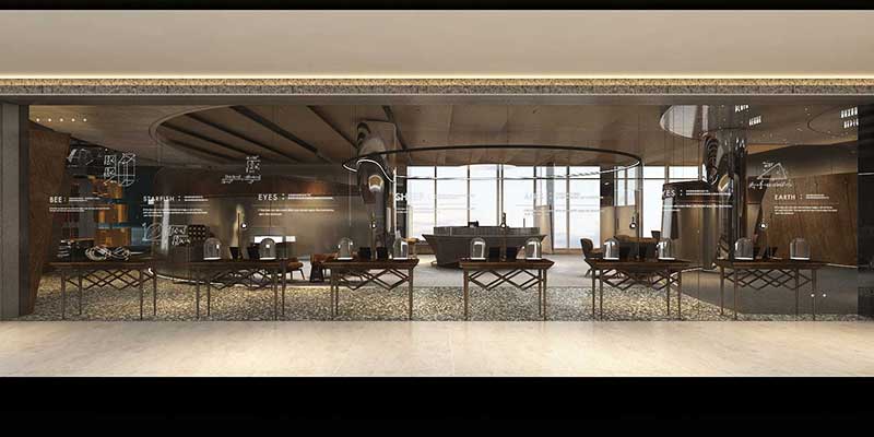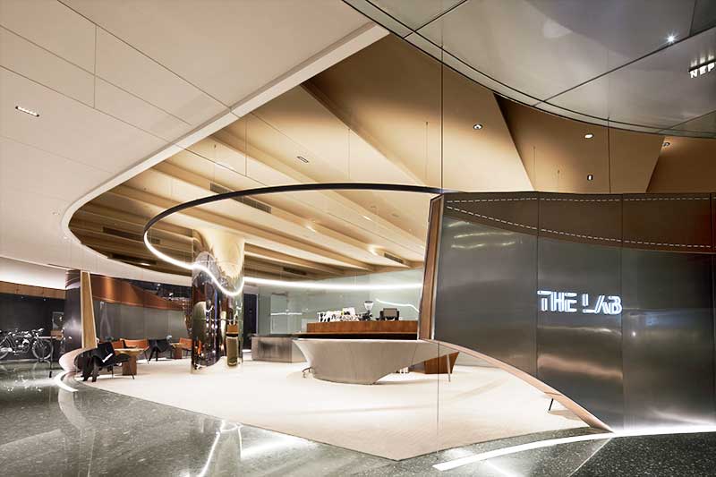 以“知识实验室”为主题概念进行设计,象征着The Lab是一个可以交流思想和探索未来无限可能的空间,打造了能同时满足品牌“知识城市”创新体验示范、客户签约、咖啡、会议与沙龙、游逛及商圈日常体验打卡等多重功能诉求的综合创新型展厅,一方面能够围绕项目前瞻性的开发理念和年轻化的商业消费群体定位,与整个项目及周边创意型店铺形成气质氛围的统一,一方面应项目商业签约及课堂讲座活动的空间需求,要兼顾时尚和雅致的室内氛围。